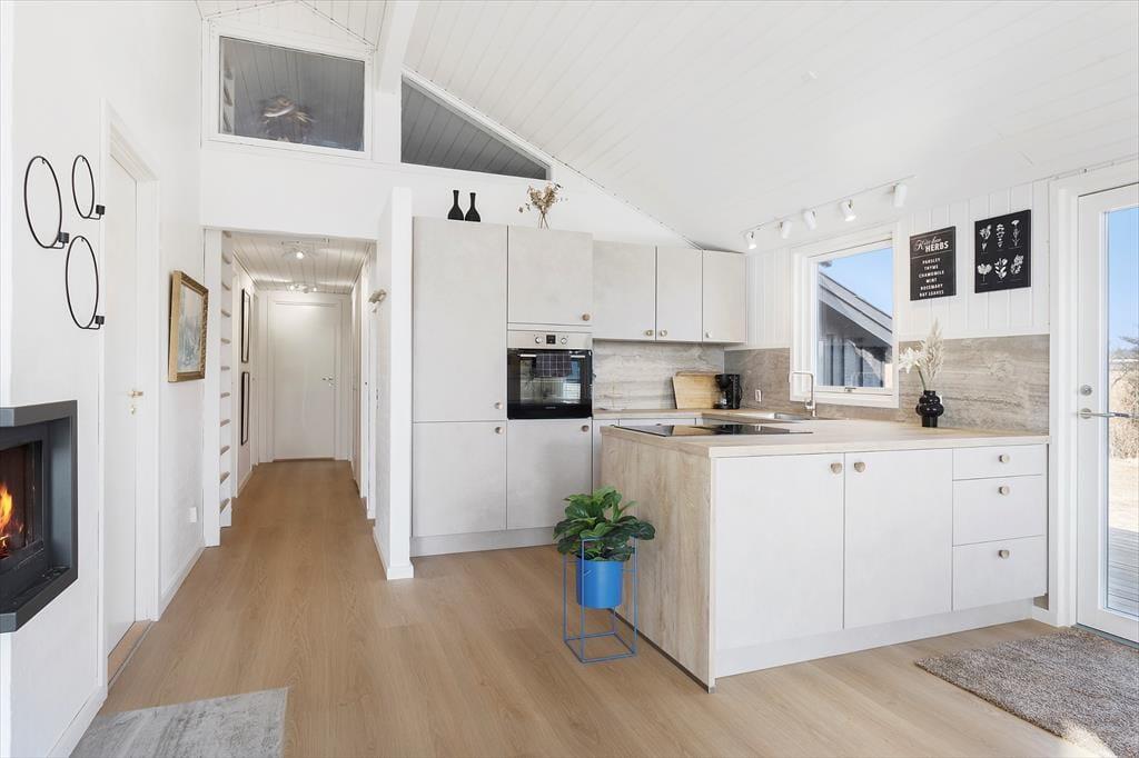 Sommerhus i Nr. Lyngby, Nordjylland, med plads til 8 voksne og 2 husdyr. Der er en hyggelig indretning med bl.a. brændeovn, og du finder desuden vaskemaskine, opvaskemaskine og tørretumbler i boligen.