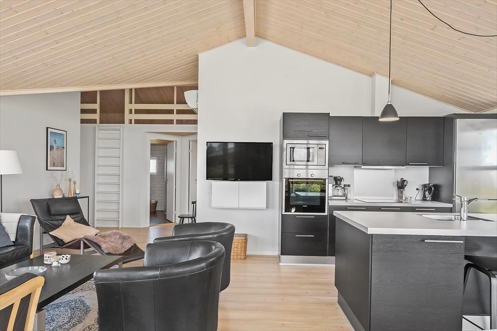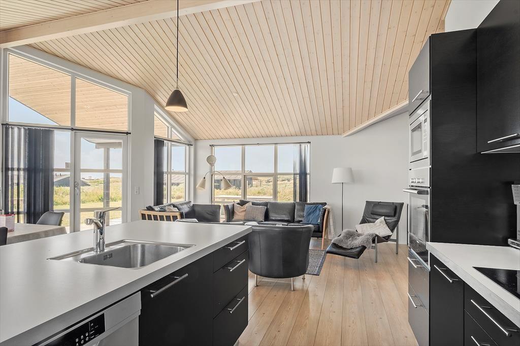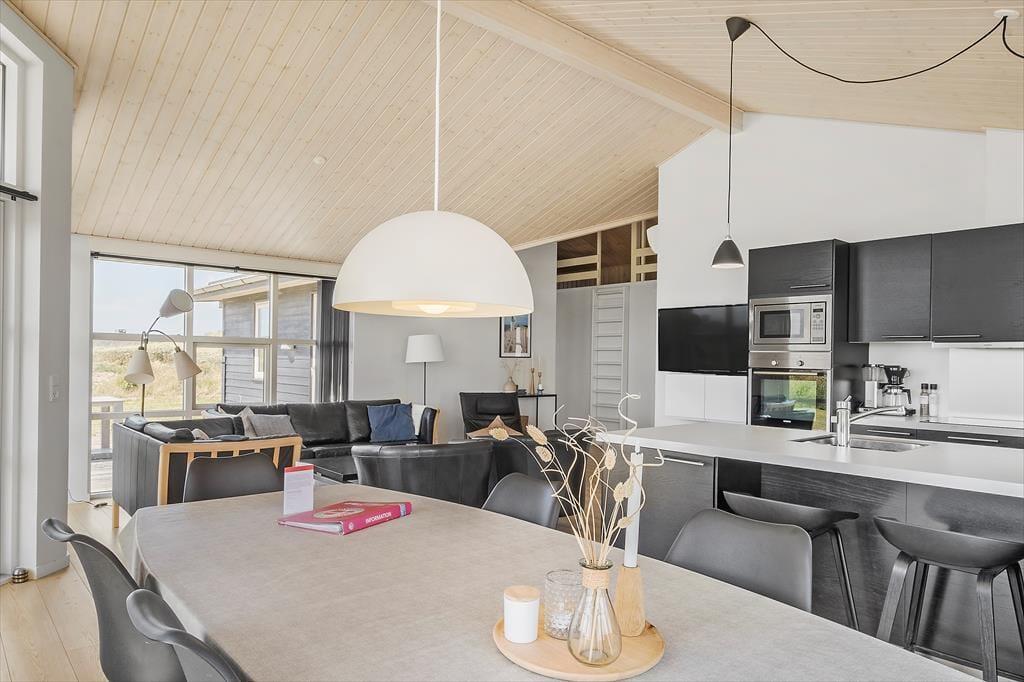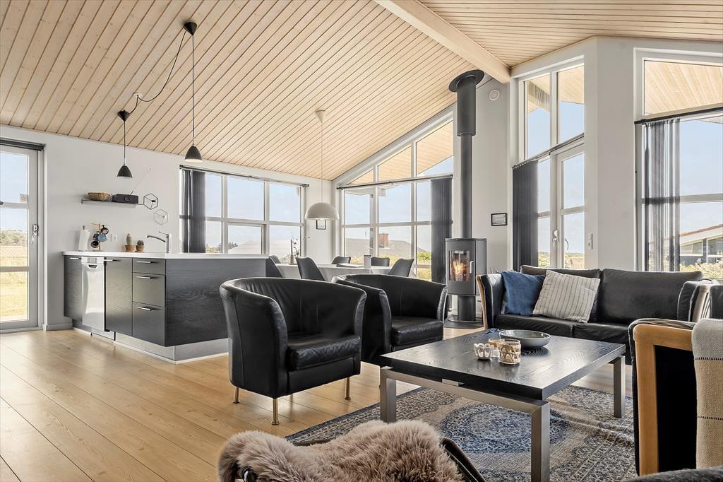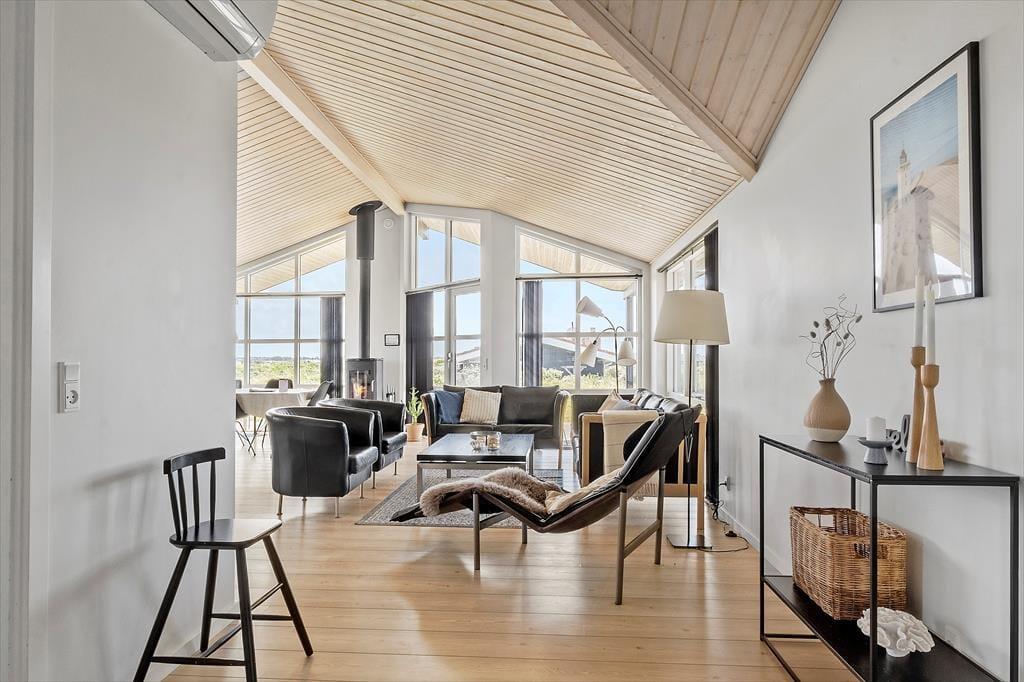 Sommerhus i Nr. Lyngby, Nordjylland, med plads til 8 voksne. Der er en hyggelig indretning med bl.a. brændeovn, og du finder desuden vaskemaskine, opvaskemaskine og tørretumbler i boligen.