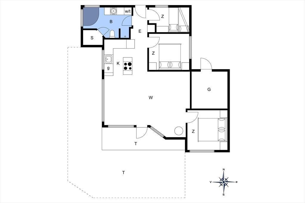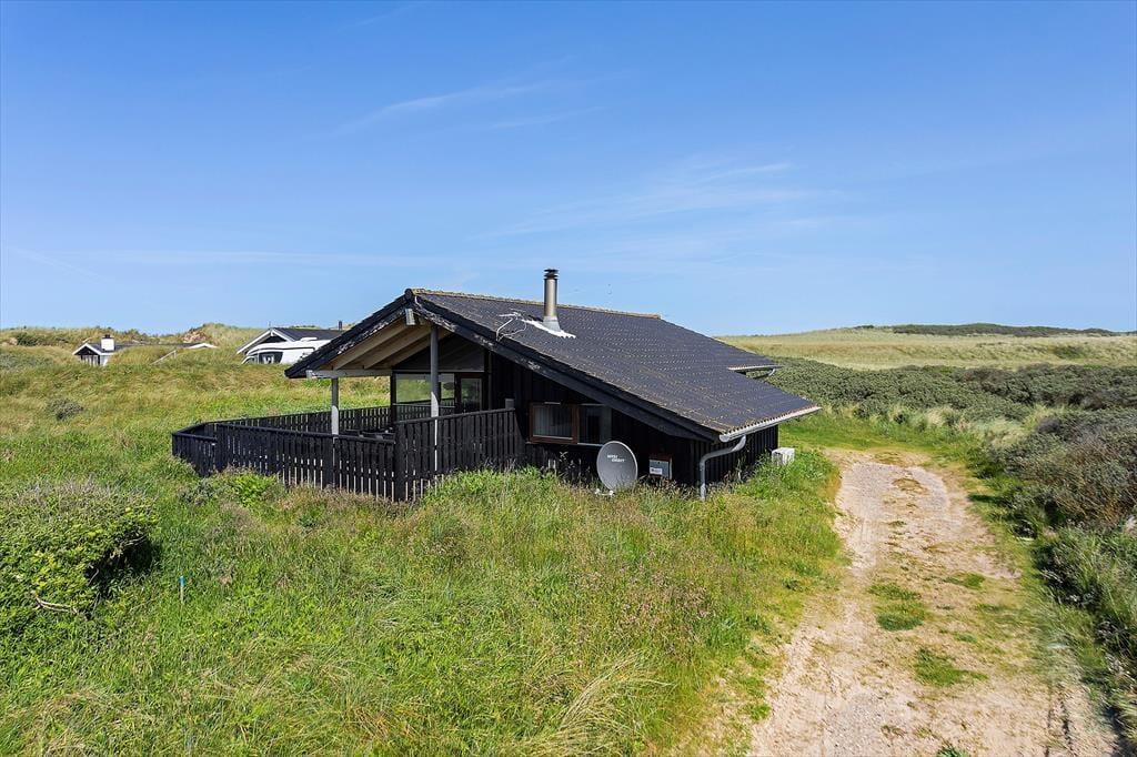 Huset er beliggende på en pragtfuld klitgrund lige bag første klitrække. Fra stuen er der adgang til den aflukkede sydvest-vendte terrasse, hvoraf en del er overdækket. Her er der gode muligheder for at nyde sommerens sol og varme samt de fantastiske omgivelser og den flotte natur. Der er havemøbler, liggestole og grill til rådighed.