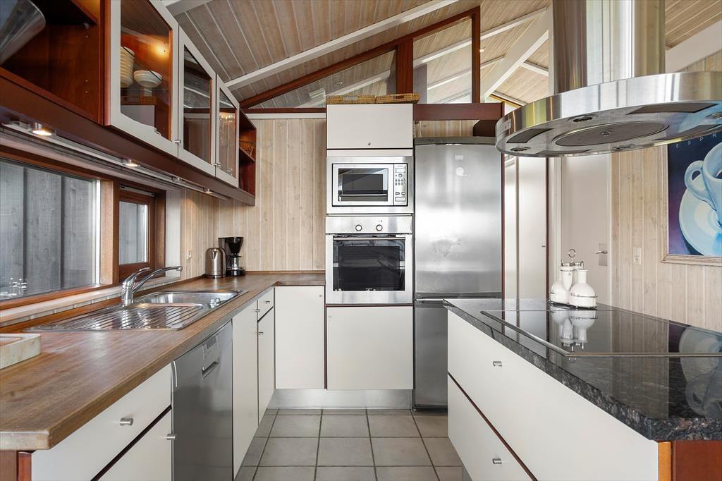 Huset er bygget i 2005. De flotte teak- og kirsebærfarver er gennemgående i hele huset, som er smagfuldt indrettet med bl.a. danske stilmøbler. De store panoramavinduer i opholdsafdelingen leder et hav af lys ind, og giver dermed også mulighed for at nyde naturen fra køkkenet når maden skal tilberedes, eller fra de bløde møbler i stuen når der skal slappes af. Husets badeværelse byder på spabad, sauna og flot glaskeramisk bruseniche. Der er tre soveværelser i huset, hvor to er med dobbeltseng og i det sidste en køjeseng. Et skønt og fuldt udstyret sommerhus med en hyggelig atmosfære, som vil danne gode rammer for enhver ferie.