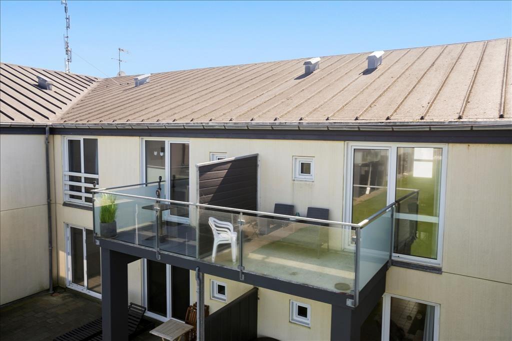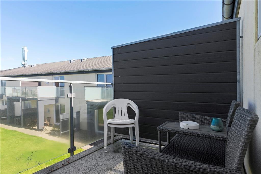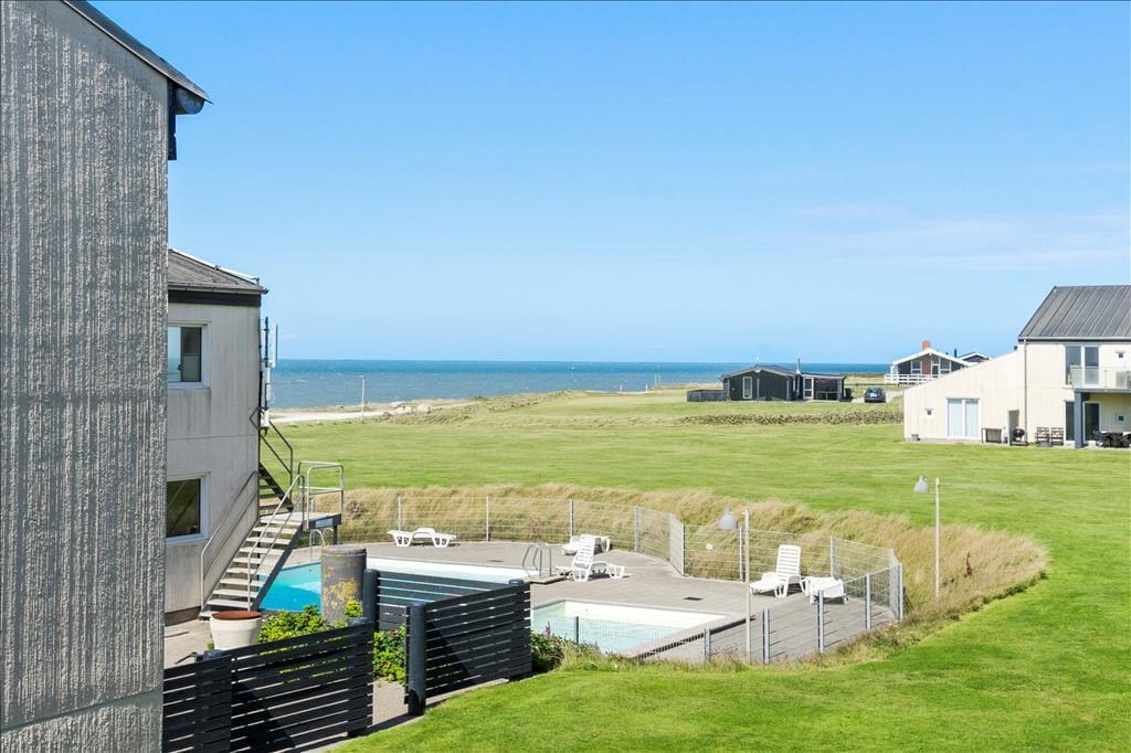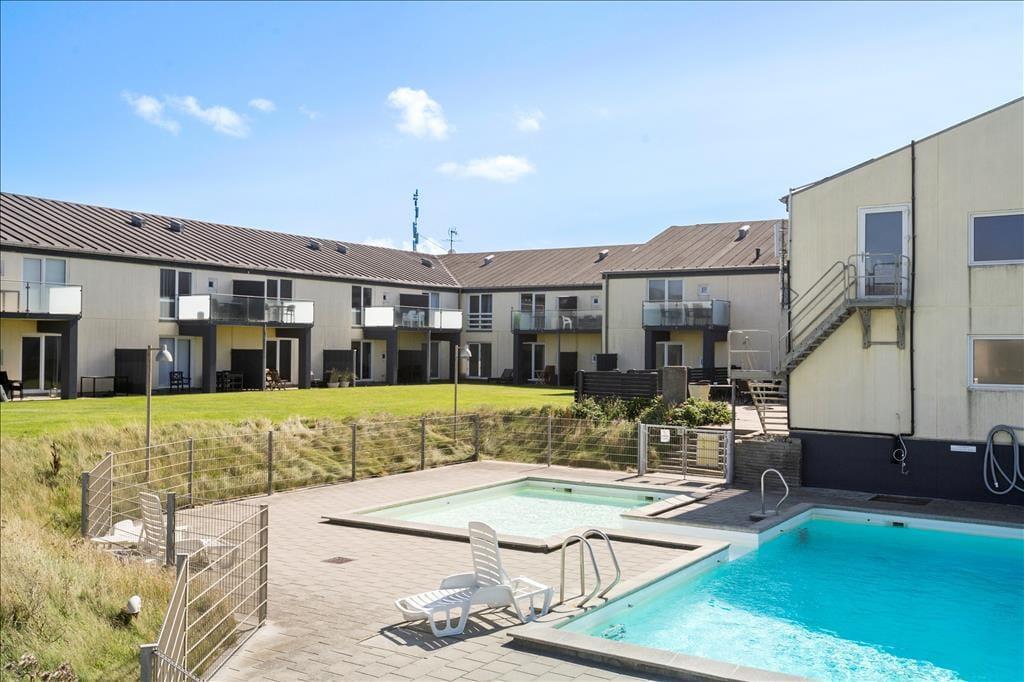 En del af ferien kan også oplagt foregå ude på altanen, når vejret indbyder til det. Altanen ligger i forlængelse af stuen, og derfor er det nemt tage en kop kaffe eller aftensmaden med herud – og der er selvfølgelig havemøbler til rådighed, så I kan sidde komfortabelt. Rundt om feriecentret breder et grønt område sig, hvor I kan spille bold og hygge jer, og til de mindste feriegæster er der en god legeplads. I juli og august måned kan I frit benytte jer af det udendørs poolområde, der byder på en dyb swimmingpool og et lavere børnebassin.