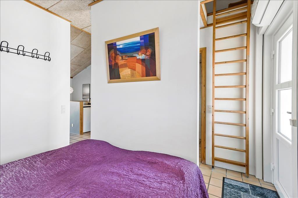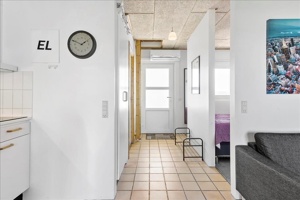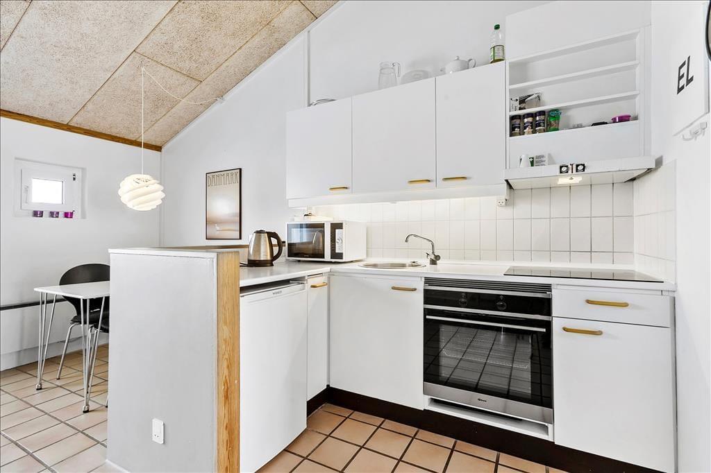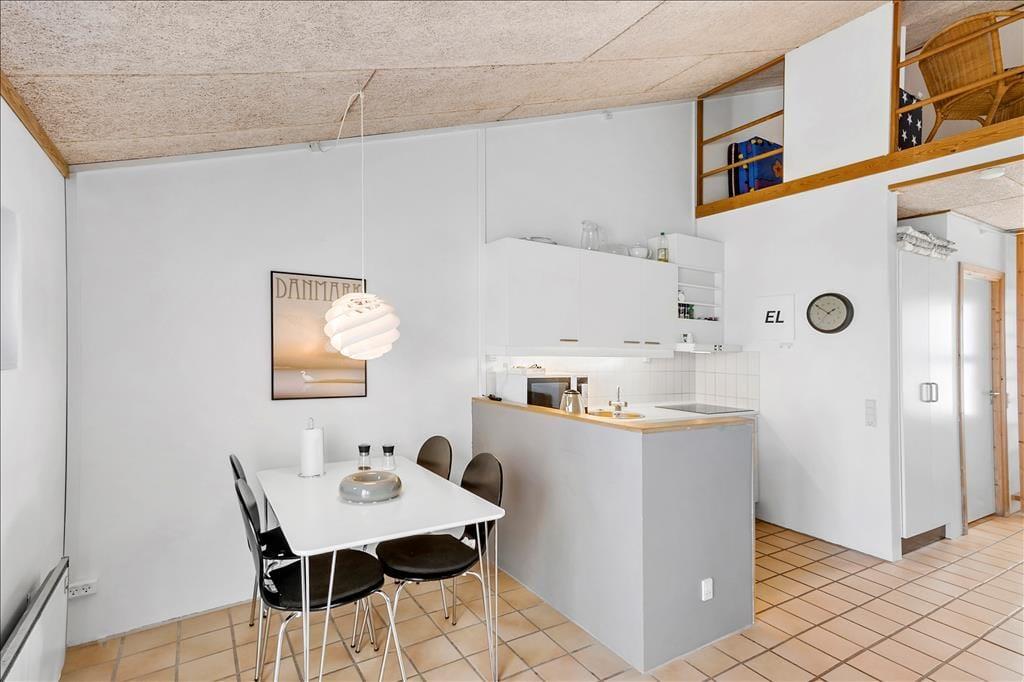 Ferieboligen er mere præcist en lyst indrettet lejlighed på 63 m2. Hver eneste kvadratmeter er godt udnyttet inden døre, for køkken og stue ligger i åben forbindelse, og fra entréen har I direkte adgang til et soveværelse med dobbeltseng. Et funktionelt badeværelse med bruser byder planløsningen også på, og endelig fører en stige op til en hems, der byder på to enkeltsenge. Med andre ord kan I samles fire personer til en hyggelig ferie med alt, hvad det indebærer – uanset om I er til brætspil og krimilæsning i sofakrogen, gode middage omkring spisebordet eller massevis af udflugter i det naturskønne lokalområde.