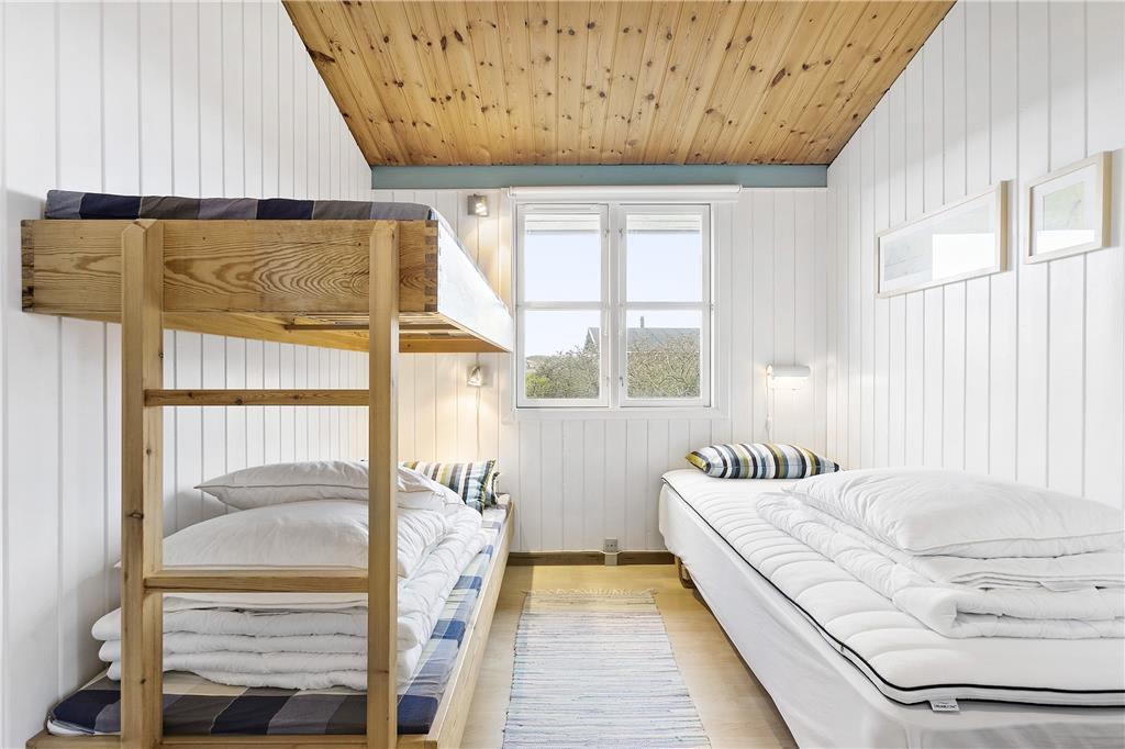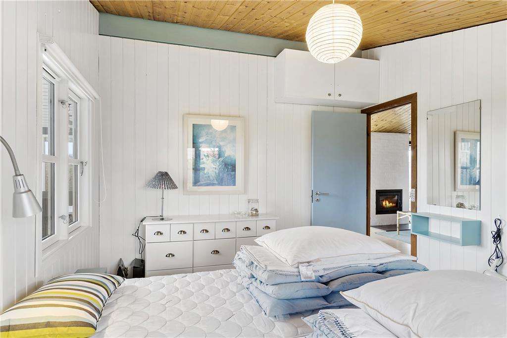 Sommerhuset har et dejligt kombineret køkken og opholdsrum med direkte adgang til den sydvendte og delvist overdækkede terrasse. Her er der spiseafdeling, sofagruppe, brændeovn og TV med både danske, norske, svenske og naturligvis tyske programmer, samt gratis Wi-fi. Det nyere badeværelse er rummeligt og har gulvvarme. I det store soveværelse er der en dobbeltseng, og i det andet soverum er der to køjesenge og en god enkeltseng. Sommerhuset har således god plads til 5 personer, og er velegnet både for et par eller en familie. Alt er særdeles velholdt meget hyggeligt. Sommerhuset udlejes kun i sommermånederne, og benyttes ellers meget af ejerfamilien.