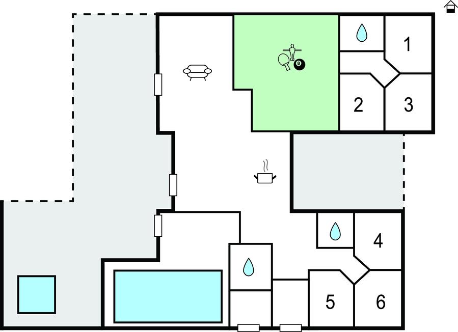 I dette smagfuldt indrettede hus kombineres luksus og komfort på harmonisk vis, hvilket skaber en indbydende atmosfære. Lyse værelser, lyse trævægge, en pejs og afdæmpede farvenuancer inviterer jer til at lægge hverdagen bag jer og nyde nogle afslappende timer. Hvis I har lyst til lidt motion, kan I spille bordtennis eller tage en dukkert i indendørspoolen.