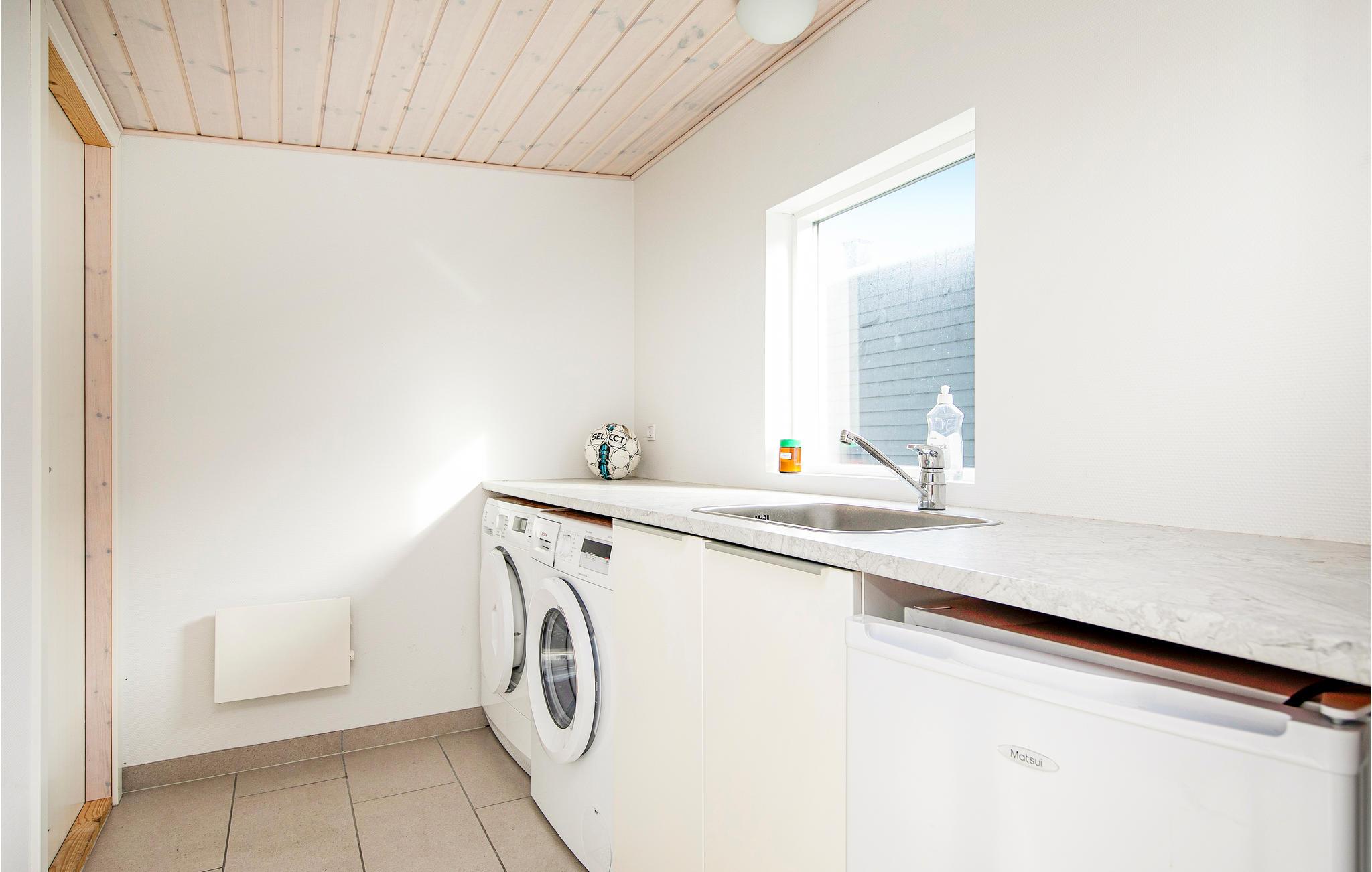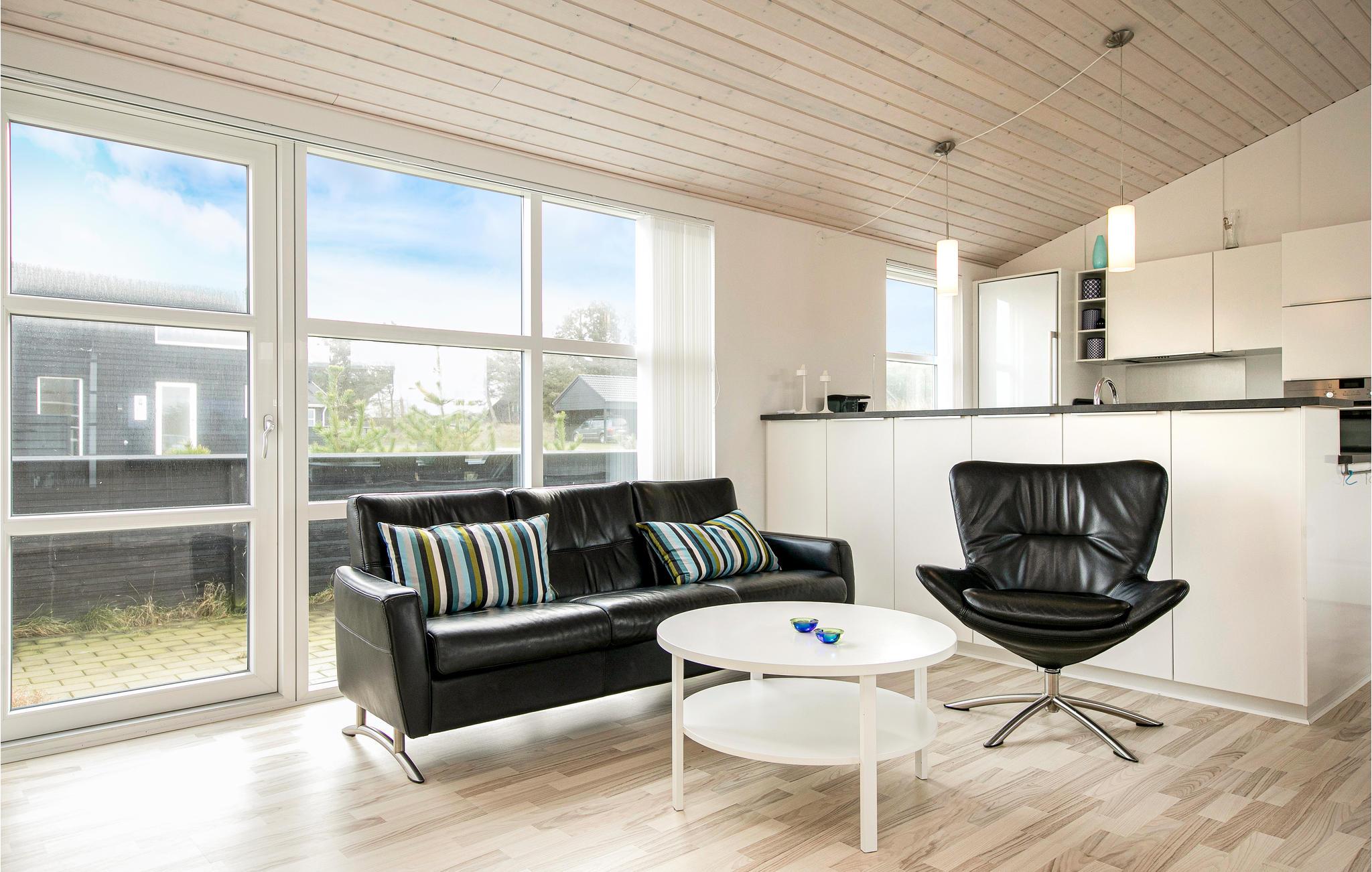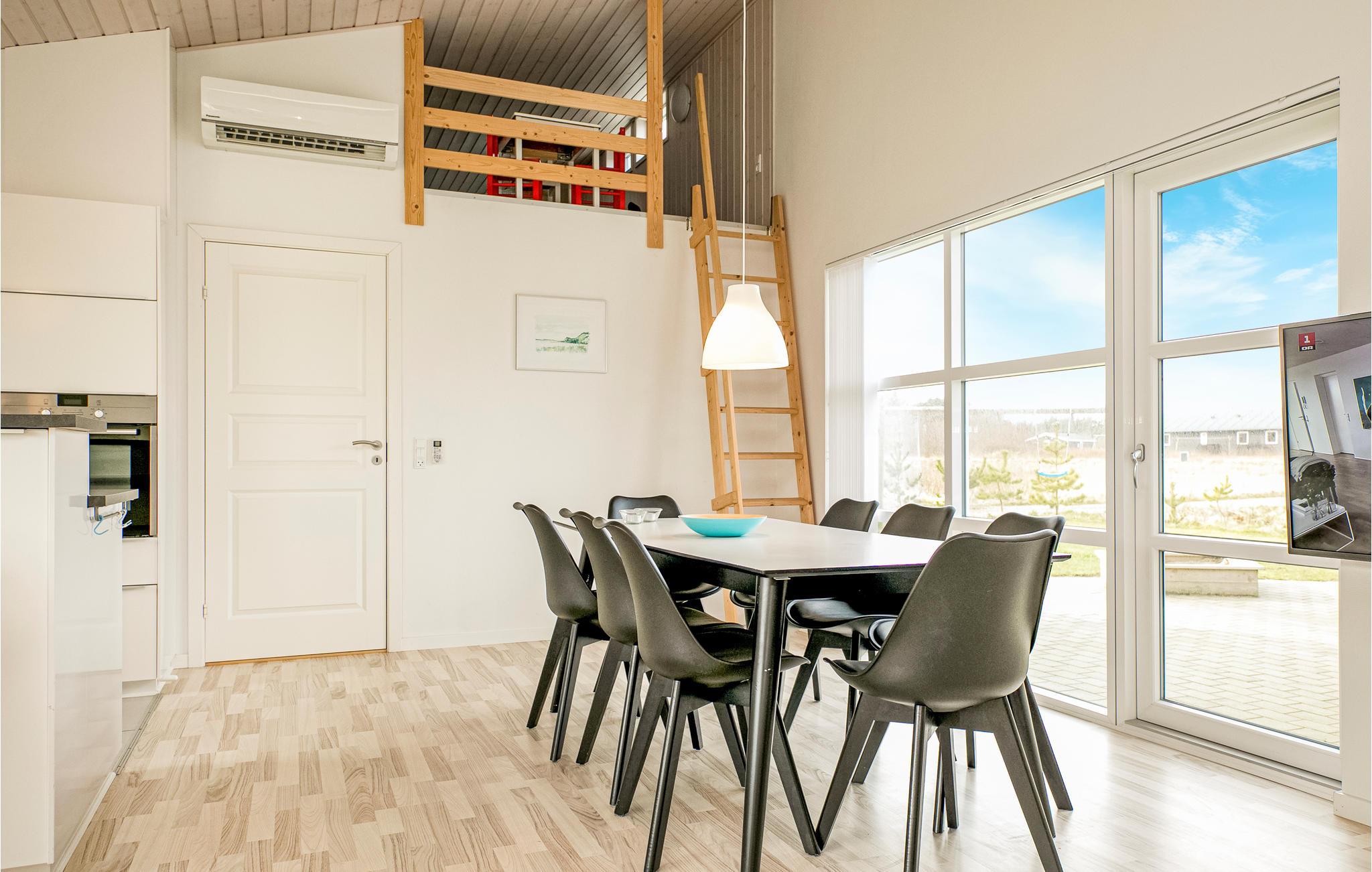 På en åben naturgrund i Nr. Lyngby, nord for Løkken med udsigt til marker, ligger dette sommerhus med tilhørende tilbygning på 28 m², her er der lavet en dejlig overdækket terrasse, hvor I kan sidde og grille i alt slags vejr. I tilbygningen findes et godt bryggers med vaskesøjle, håndvask og en fryser. Her er desuden god plads til afsætning. I selve feriehuset er der fire rummelige soveværelser med trægulv samt to hemse, hvoraf den ene er udstyret med to madrasser og den anden (15 m²) er lavet som et lege-/hyggerum til børnene. Det rummelige aktivitetsrum med billardbord og bordtennis ligger i tæt tilknytning til det store badeværelse med spabad og sauna. Den rummelige stue er forbundet med det flotte veludstyrede køkken. I de fleste rum er der loft til kip, og de store vinduespartier skaber et godt lysindfald i huset. Dejlige terrasser omgiver huset og på græsplænen kan børnene hygge sig med de forskellige legeredskaber. Tag på tur til de hyggelige feriebyer Løkken og Lønstrup, der hver især byder på gode butikker og restauranter samt skønne spadsereture i området, bl.a. til stranden.