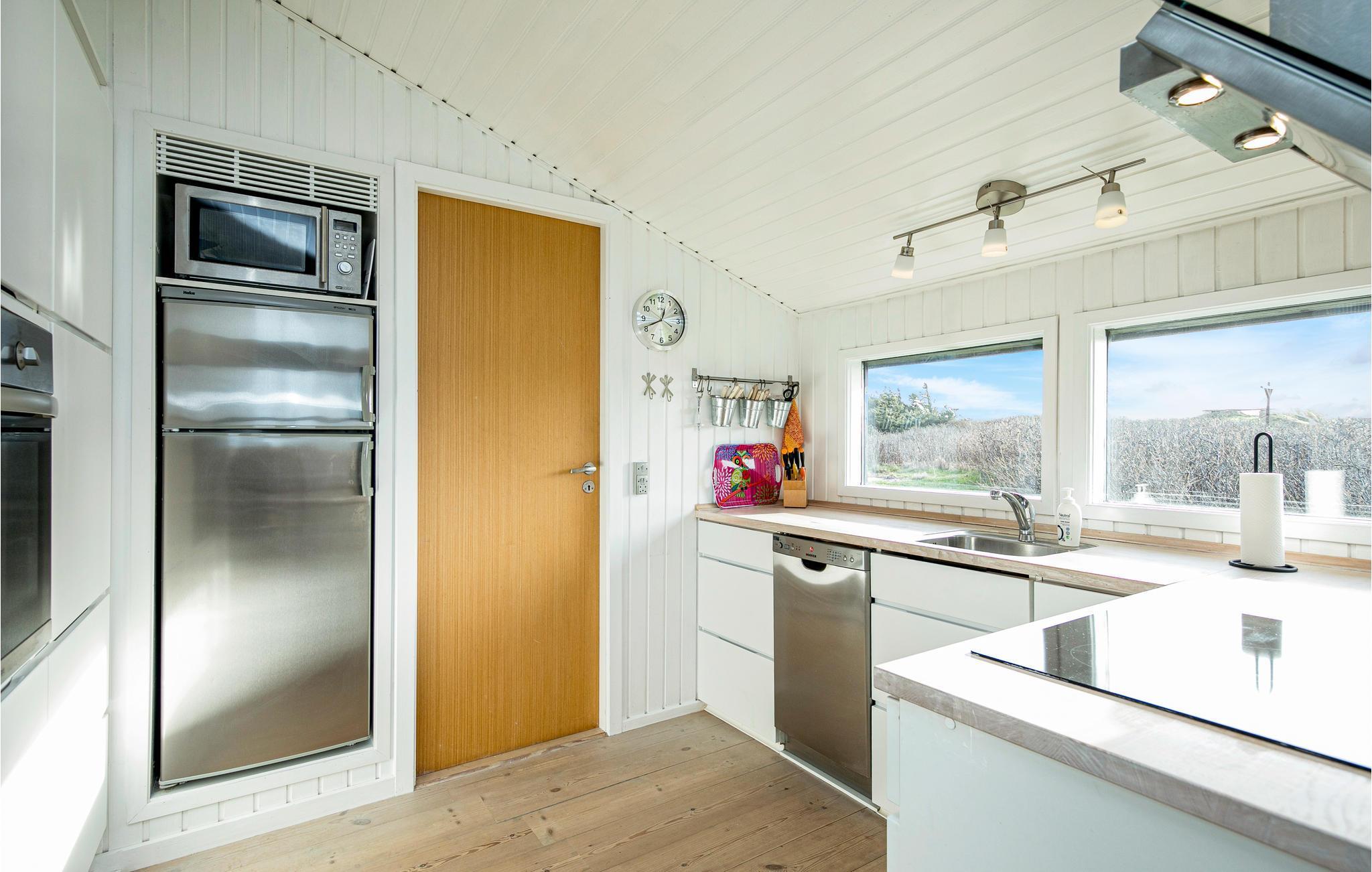 I dette lyst og venligt indrettede sommerhus hersker en ægte sommerhusstemning, det er samtidig en god ramme for ture ud i det danske sommerland, bl.a. til badebyerne Løkken og Lønstrup. Der er kort afstand til den skønne sandstrand, der omgives af stejle klitter.
