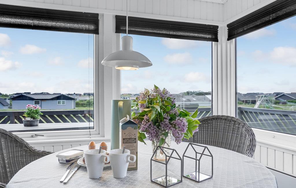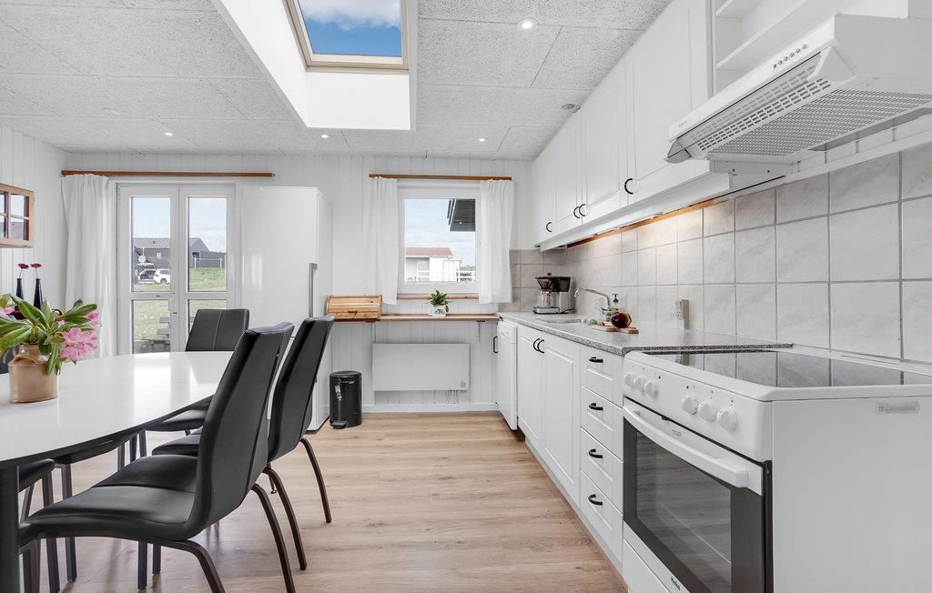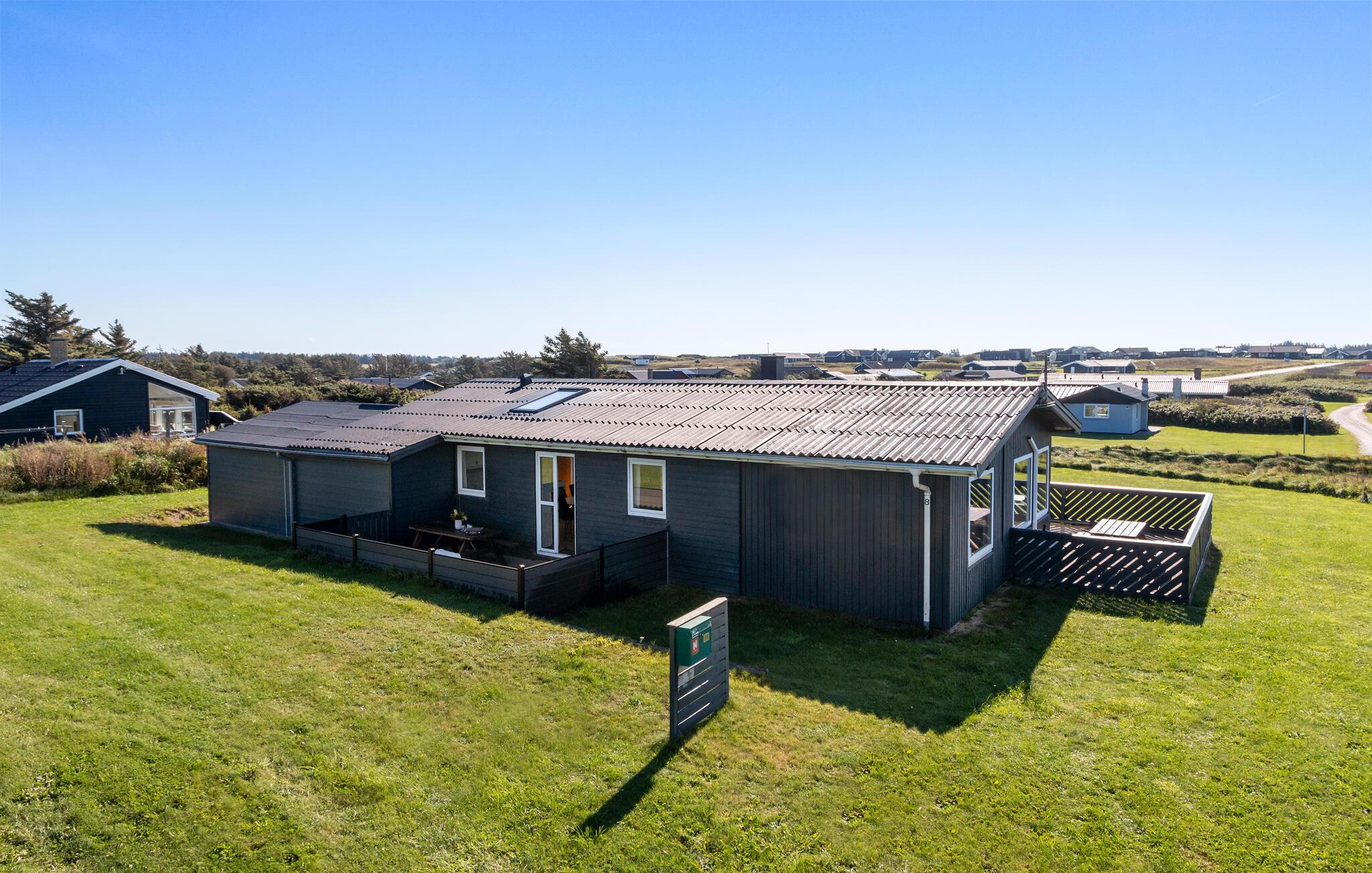 På en åben naturgrund i gå afstand til stranden ligger dette rummelige og velholdte sommerhus. I huset er der en indbydende lyst stue og et praktisk køkken, med en hyggelig spiseafdeling. Huset ligger med en fin placering mellem de to feriebyer Løkken og Lønstrup. I Løkken er der mange butikker hvor de lokale kunsthåndværkere sælger der smukke produkter, her er gode restauranter, hyggelige cafeer og et livligt natteliv. I Lønstrup kan I se fiskerne trække deres både op på stranden og kan købe frisk fisk over rælingen og tage med hjem og lægge på husets grill.