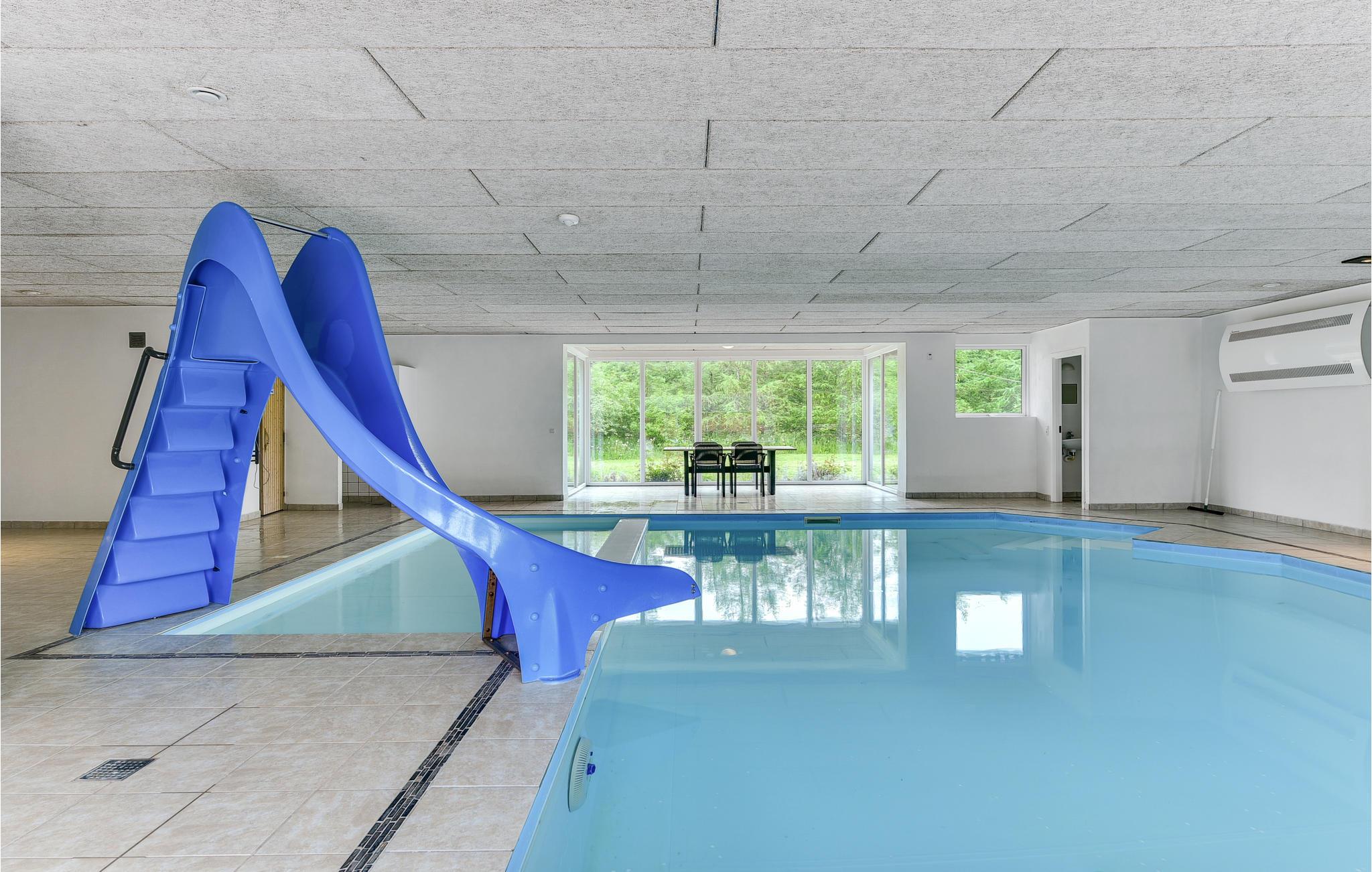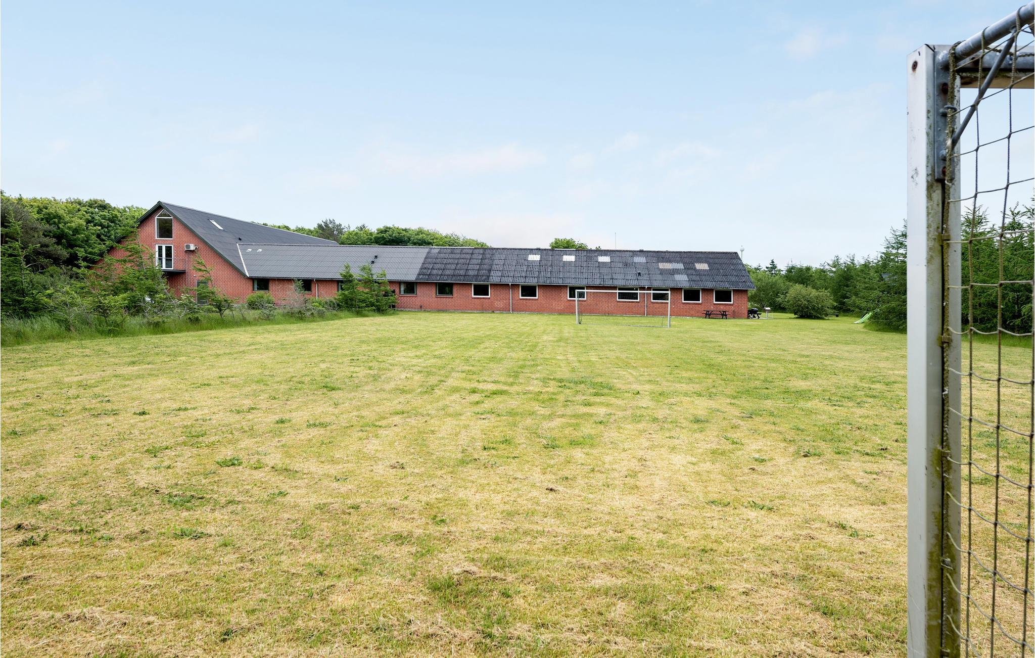 Ejendommen er blevet gennemgribende moderniseret i 2009 og byder på 450 velindrettede m² fordelt på bl.a. 13 soverum - alle med enten dobbelt eller enkeltsenge. Der er mange timers sjov og underholdning i den fantastiske poolafdeling, hvor familien rigtig kan boltre sig. Den 85 m² store swimmingpool byder på forfriskende svømmeture, hvorefter I kan gå i wellnessrummet og få herlig undervandsmassage i spabadet til 8 personer og slutte af med en afslappende tur i saunaen. Husets aktivitetsrum indeholder billard, bordtennis og bordfodbold, hvor I kan udfordre familie og venner til en dyst. Udendørs er der anlagt en pragtfuld gårdsplads og et stort græsareal med god plads til både boldspil og leg. Køkkenet er veludstyret og gør det let at lave mad til større grupper med blandt andet to komfurer, to ovne, to opvaskemaskiner og to køleskabe. Huset har desuden otte toiletter, fem brusere og endnu en bruser i poolafdelingen.