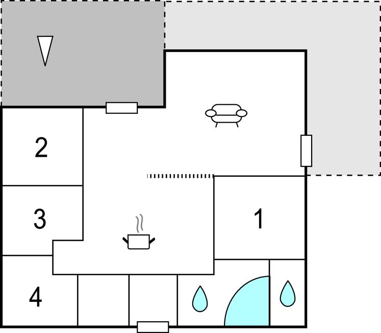 Badeværelse 6m2 (nr. 1) - WC. Varmt og koldt vand. Bruser