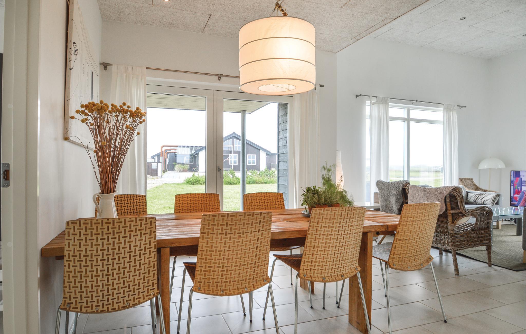 Et spændende og anderledes sommerhus som med store panoramavinduer samt en lys og venlig indretning. Her er lyst og højt til loftet, så det passer godt ind i det nordjyske område, som har netop de samme kendetegn. Fra den dejlige store solrige terrasse kan man tilmed se et glimt af det altid flotte Vesterhav.