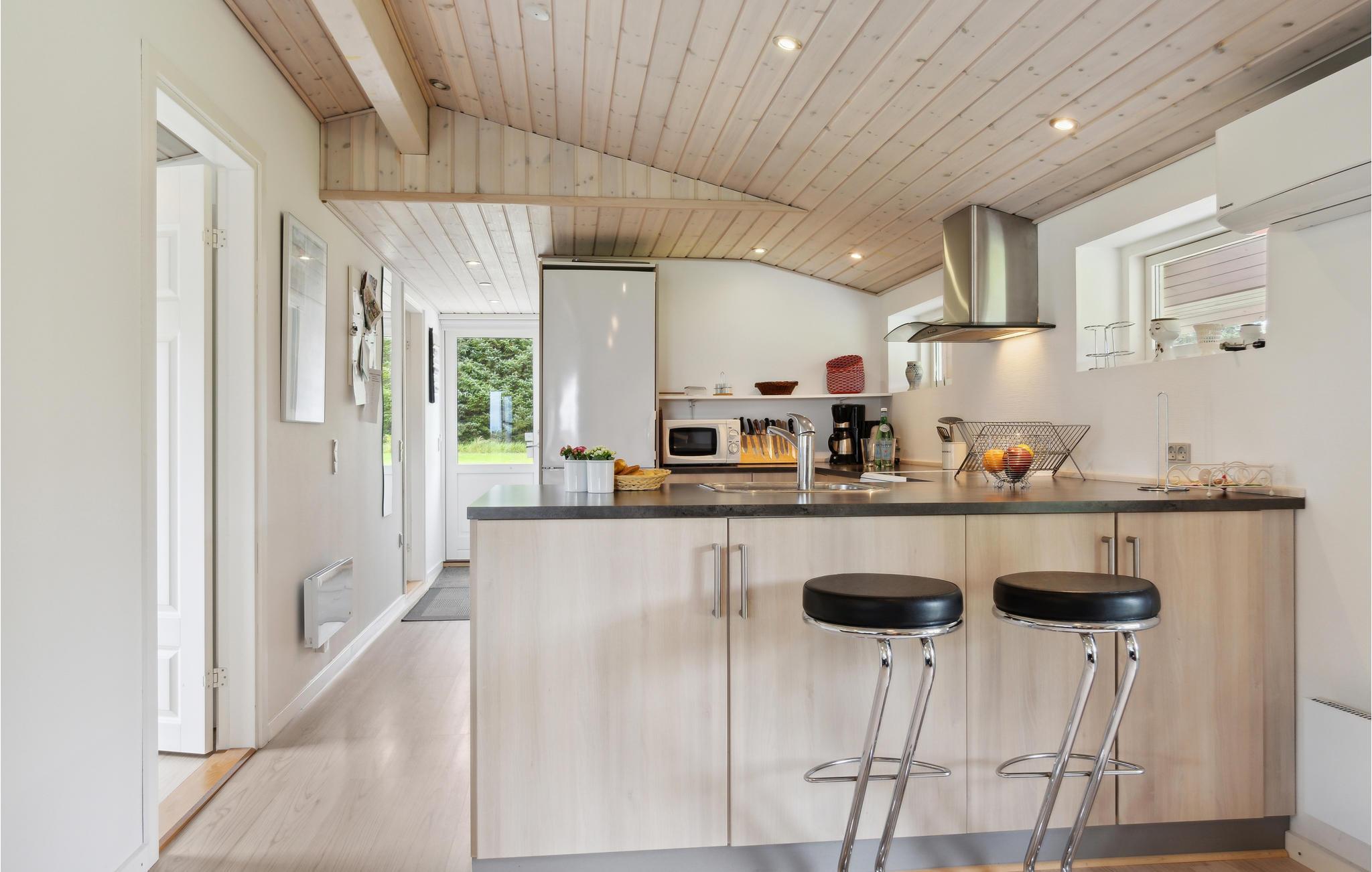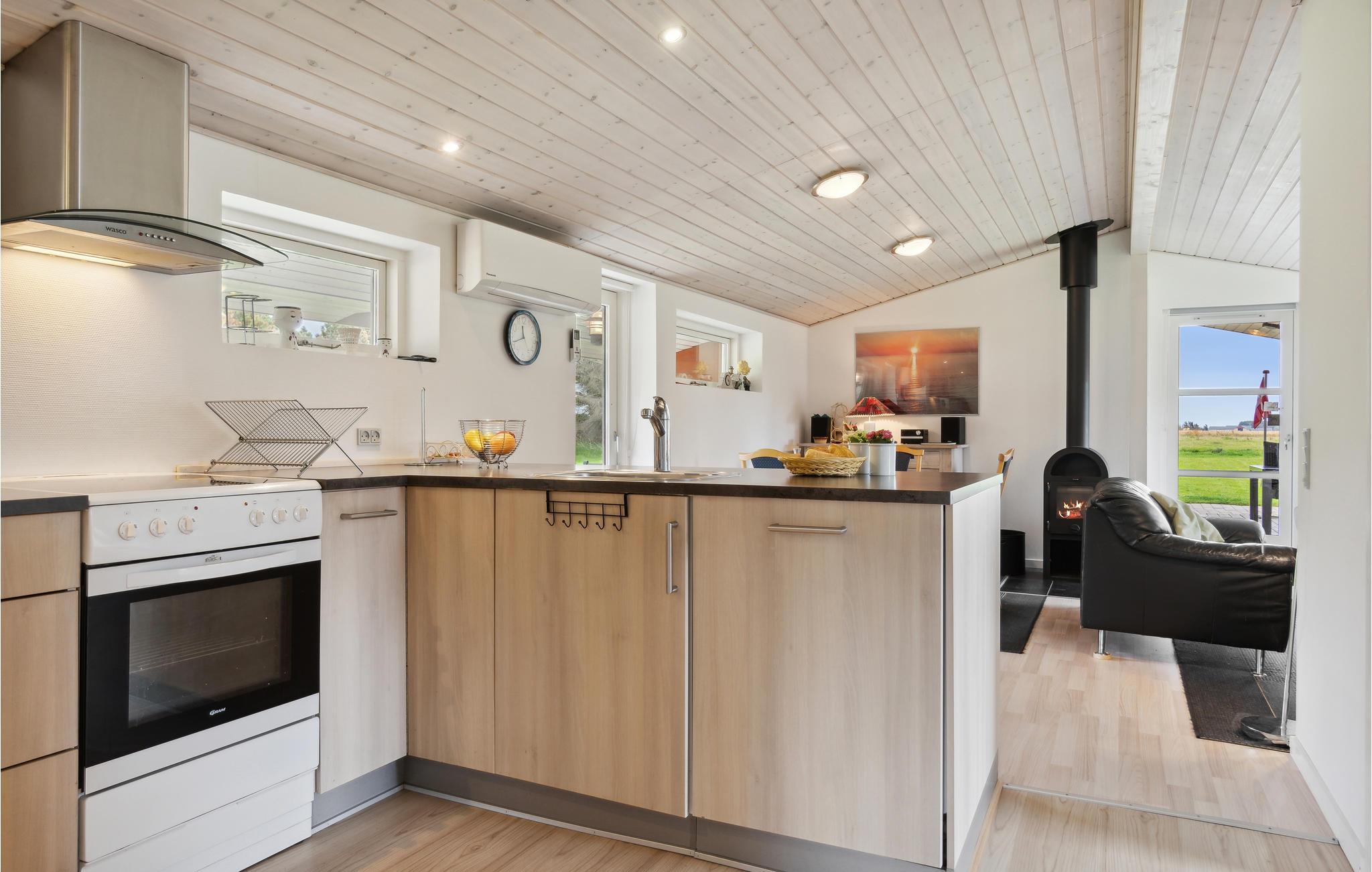 Nr. Lyngby er mest kendt for den kraftigt eroderende kyststrækning, hvor havet langsomt, men sikkert, æder sig ind i landskabet. Her kan I næsten altid se et hus eller to som snart bliver bytte for havets umættelighed. Der kommer heldigvis til at gå rigtig mange år, før dette dejlige feriehus forsvinder i havet. Huset er totalt gennemrenoveret og med en beliggenhed som det yderste i et attraktivt feriehus område, kan I næsten ikke forestille jer et bedre udgangspunkt for familiens næste ferie. Her er I tæt på stranden, badebyerne Løkken og Lønstrup, og et hav af seværdigheder: Fårup Sommerland, Nordsømuseet, Family Farm Fun Park, Børglum Kloster osv. osv.