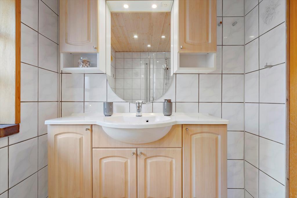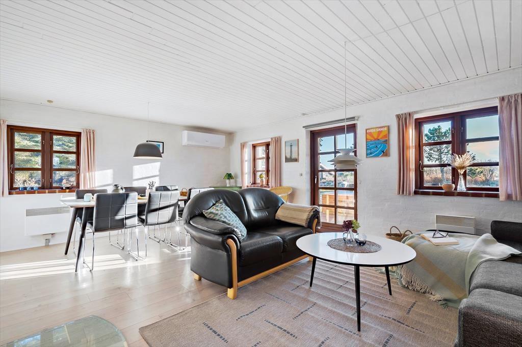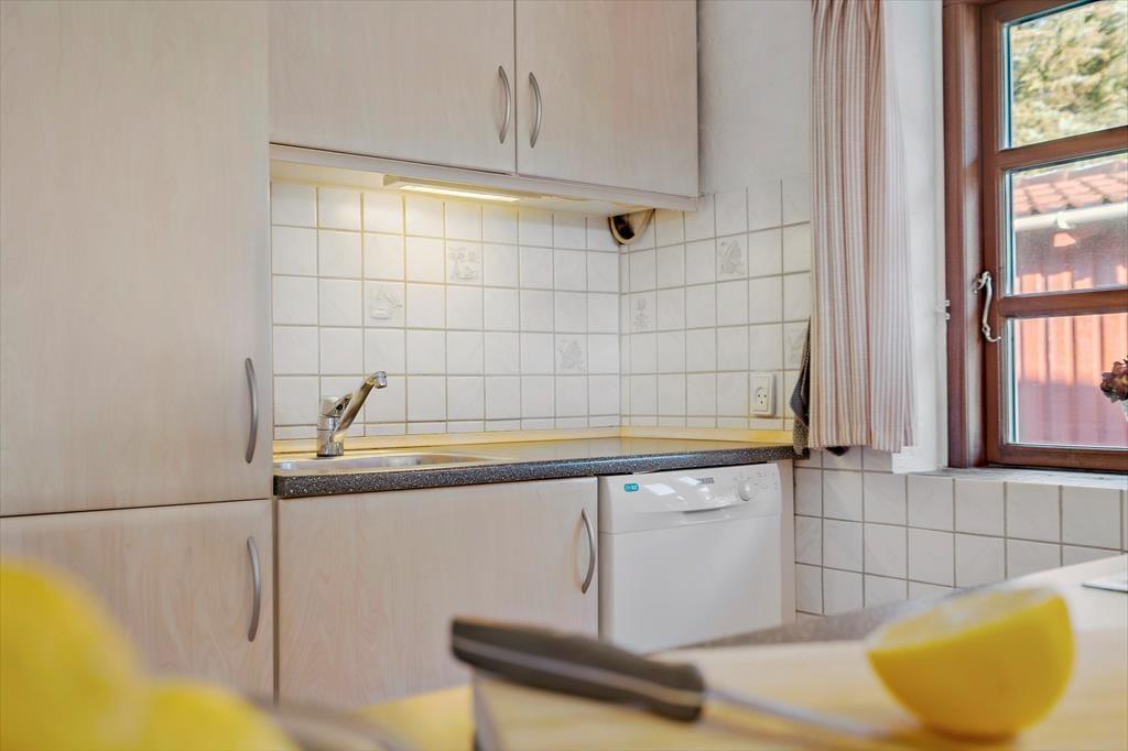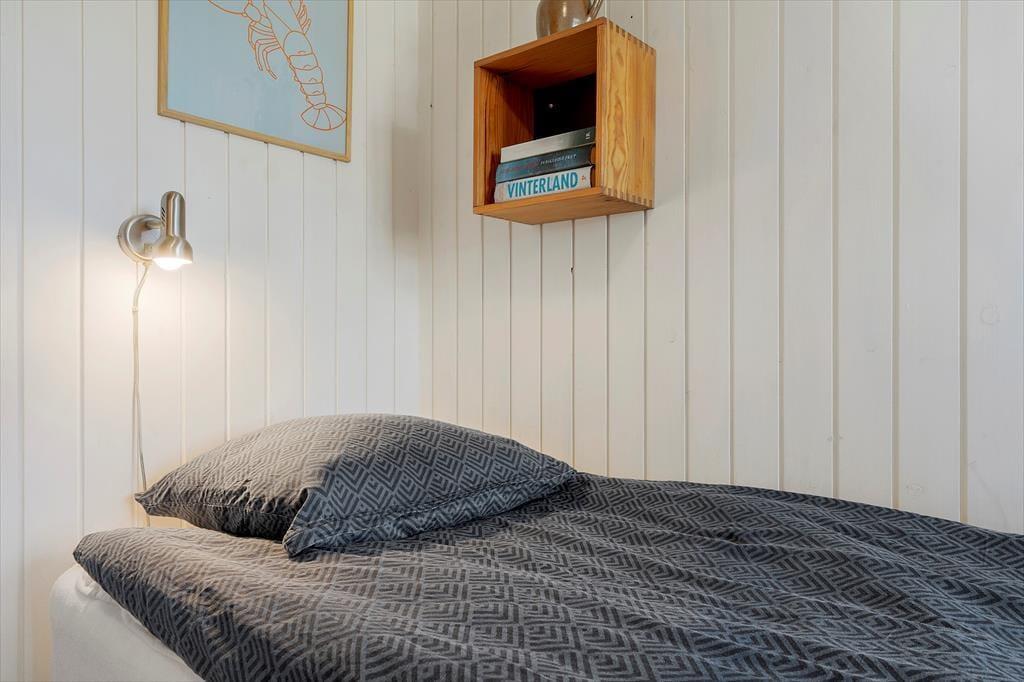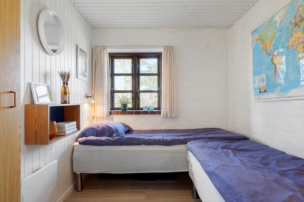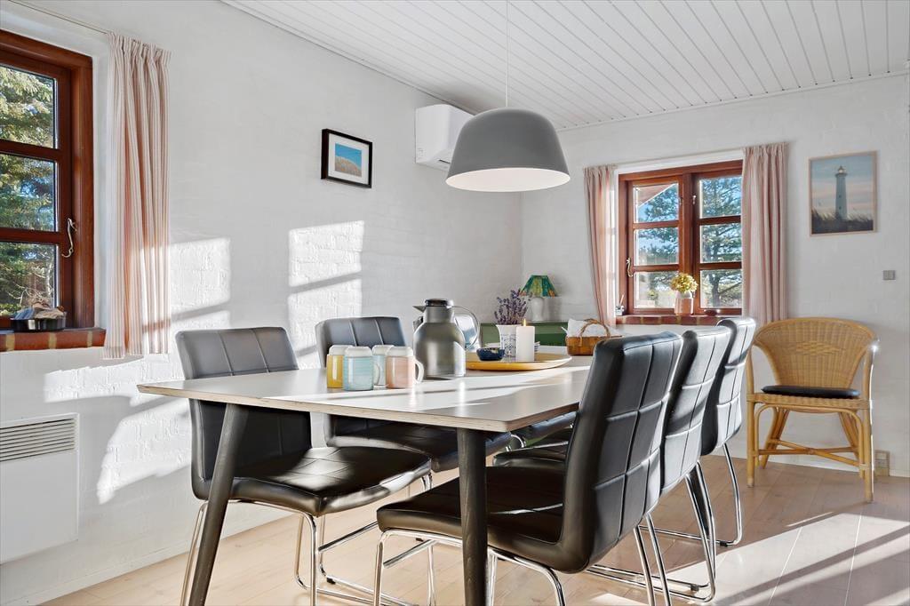 Feriehuset er lyst og luftigt, og her får I en behagelig ramme om fridagene. De seks sengepladser er fordelt på tre soveværelser, der er placeret i samme del af huset som badeværelset og bryggerset. Badeværelset er indrettet med gulvvarme og bruseniche, mens der i bryggerset er vaskemaskine, så I altid har friskt tøj klar. Resten af huset består af et stort, åbent opholdsområde, hvor der et et mindre, men funktionelt køkken og stuen ligger i åben forbindelse med køkkenet, og her har I masser af plads til at nyde feriedagene sammen. Stuen er indrettet med et spisebord og et sofaarrangement, og I har god plads til at slappe af med lækre måltider, hyggelige filmaftener eller eftermiddage med boller, varm te og en god bog, mens ilden knitrer i brændeovnen.