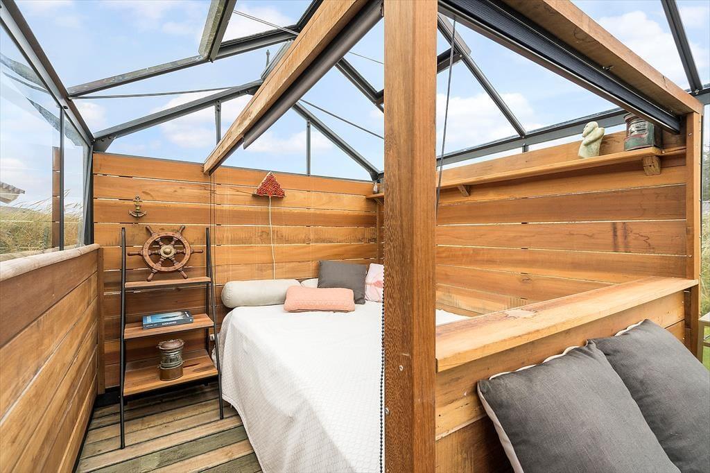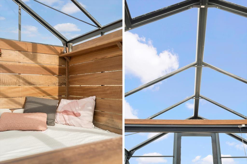 Mod øst kan I også vælge at overnatte i dobbeltsengen i den anden glaspavillon på grunden. Herfra er der frit udsyn til den mørke nattehimmel og på klare nætter til stjernerne,