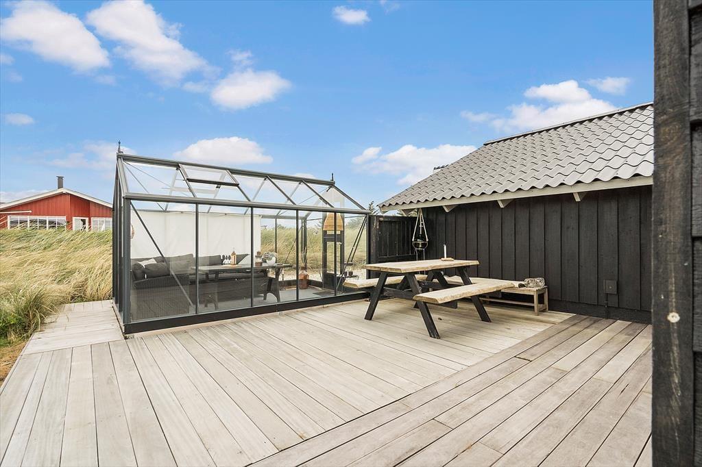 Dette hyggelige feriehus står klart til at danne rammen om feriedagene for op til seks personer, og med en sydvendt terrasse, bålplads og en skøn glaspavillon kan I få det optimale udbytte ud af feriedagene. I er omgivet af Nr. Lyngvigs smukke natur, og fra grunden har I få skridt til Ringkøbing Fjord, mens Vesterhavet også findes i gåafstand fra adressen.