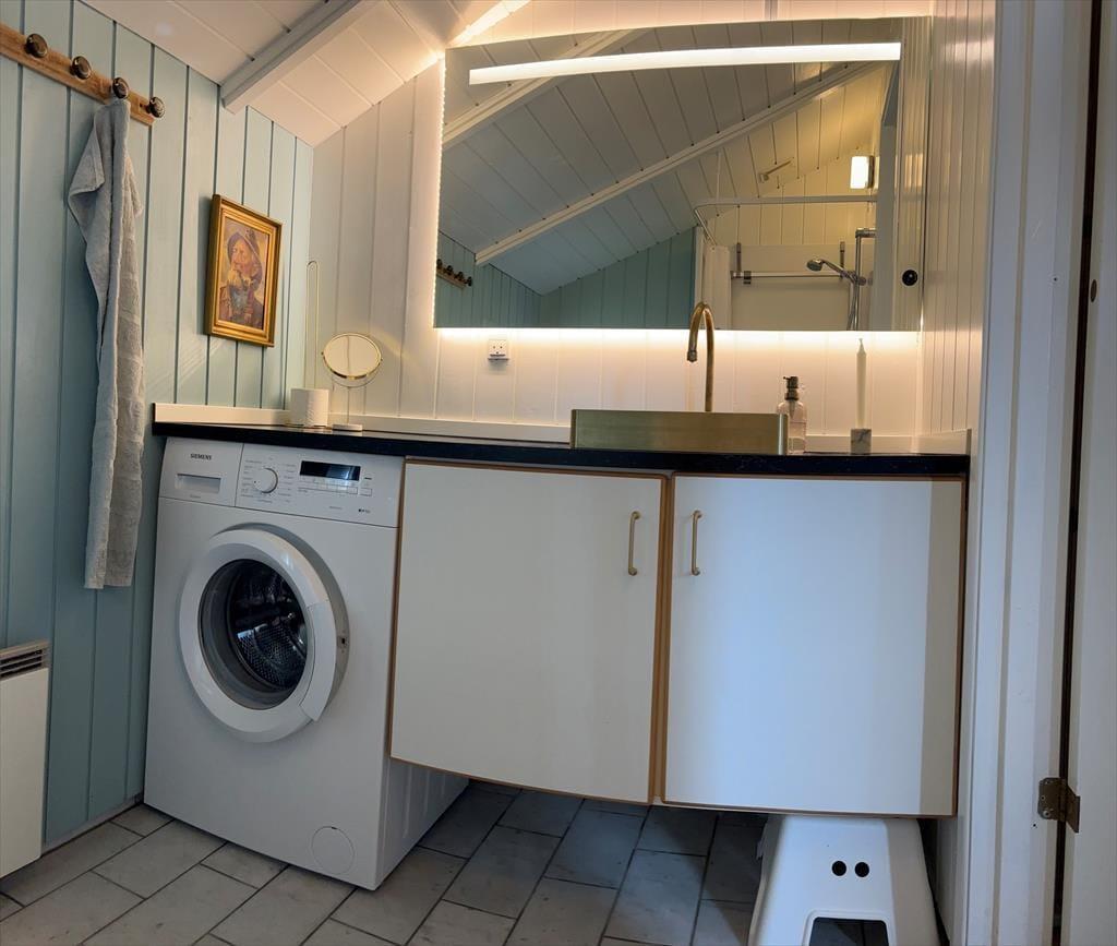 Sommerhuset byder på en skøn atmosfære med listelofter til kip og et skønt lysindfald fra store, sydvendte vinduespartier, der inviterer det naturlige lys indenfor. Brændeovnen sørger sammen med varmepumpen for en hyggelig atmosfære og en behagelig temperatur, uanset om I nyder et lækkert måltid omkring spisebordet eller slapper af med en god bog eller en film i sofaerne. Stuen og køkkenet ligger i åben forbindelse, og køkkenet byder på alt det nødvendige udstyr inklusiv opvaskemaskine. Ferieboligens tre soveværelser giver plads til seks personer, og ud over entréen er her også et badeværelse med bruseniche og vaskemaskine samt en sauna, der giver feriedagene ekstra wellnessfaktor.