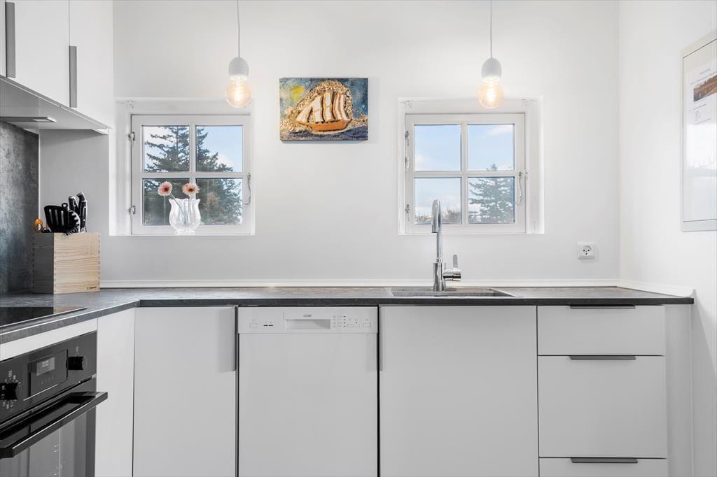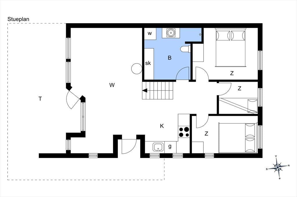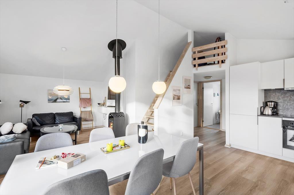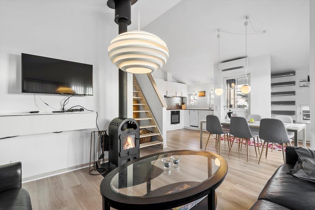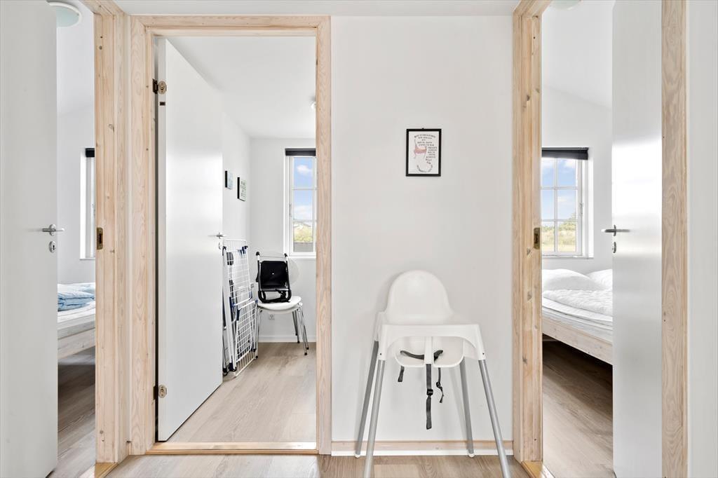 Hver eneste kvadratmeter i sommerhuset er godt udnyttet, så I kan fint være seks personer. Faktisk er der flere fordelingsmuligheder om natten, for ud over tre gode soveværelser er der også madrasser på hemsen, så børnene kan selv få lov til at bestemme, om det er hyggeligst at sove i køjeseng eller ovenpå i deres egen hule. I sommerhusets opholdsrum har I god plads til at hygge jer i fælles flok, for eksempel omkring spisebordet, når maden står klar i det åbne køkken. I kan også lægge an til en tilbagelænet filmaften med ild i brændeovnen og snacks på sofabordet – hvad mere kan man bede om, når det er ferietid? Det skulle da lige være et afslappende spabad, og det kan I heldigvis få på sommerhusets rummelige badeværelse.