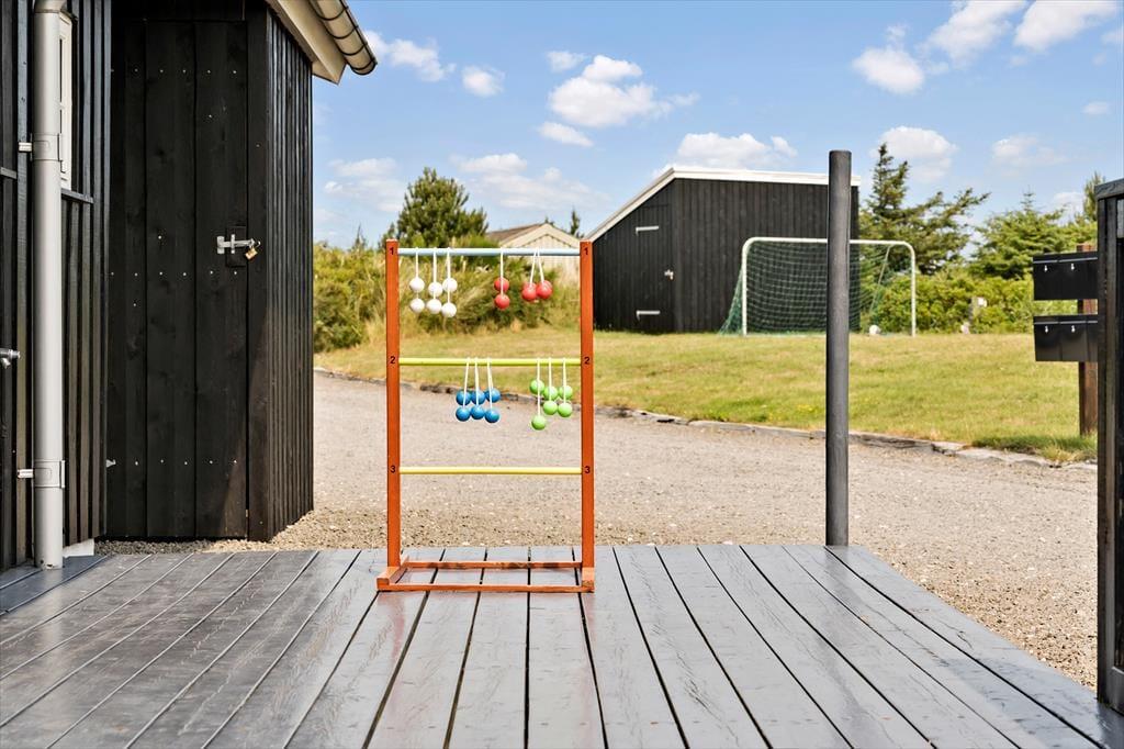 Når solen står højt over Nr. Lyngvig, er sommerhusets træterrasse den helt rette opholdsplads. Dagen kan starte på østsiden af huset, hvor I kan drikke morgenkaffe og nyde de rolige omgivelser – eventuelt mens børnene smutter over på det grønne fællesareal for at lege, spille bold eller gynge. I kan også slutte jer til dem for at spille petanque eller en rask fodboldkamp, før I vender tilbage til den sydvendte terrasse for at grille og slappe af i liggestolene.