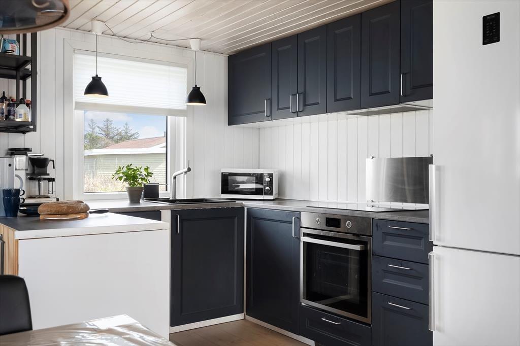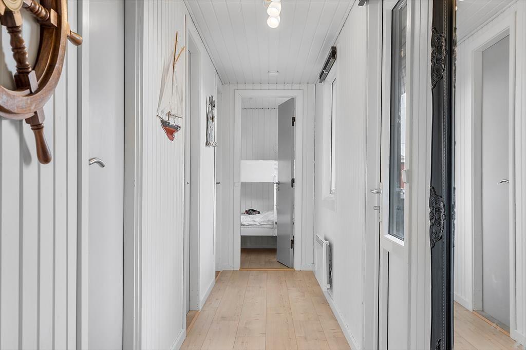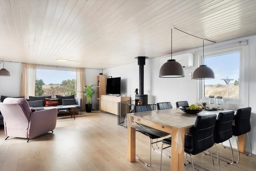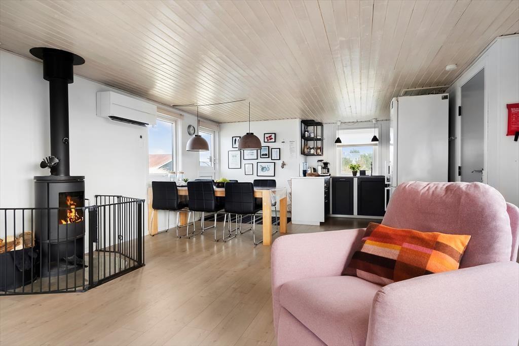 Sommerhuset er gennem årene blevet moderniseret løbende – blandt andet er der kommet en energivenlig varmepumpe og et nyt badeværelse i 2020. I det hele taget er det tydeligt at se, at der bliver passet godt på tingene inden døre, så det er en rar base at slappe af og nyde livet i. Stuen byder på en brændeovn og et stort Smart-tv ved sofaafdelingen, så der er lagt op til filmaftner og andre hyggestunder. Bliver I sultne undervejs, kan I gå i gang med at trylle et lækkert måltid frem i det åbne og veludstyrede køkken. Sommerhuset er udstyret med 3 soveværelser.