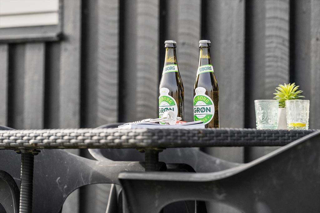 En stor og helt aflukket træterrasse kan hurtigt blive jeres foretrukne opholdsplads, når vejret er solrigt og sommerligt. Der er også en lille fliseterrasse på den anden side af huset, så I kan finde en opholdsplads i solen dagen lang – hvis altså ikke I hellere vil nyde det gode vejr med havespil og leg på naturgrundens græsplæne.