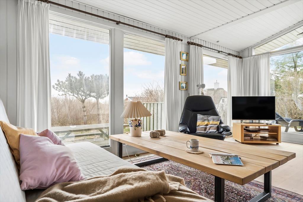 Det er skønt at bo på fjordsiden af Holmsland Klitvej, for fra det rolige sommerhusområde tager det kun ganske kort tid at gå til vandkanten. Ringkøbing Fjord tiltrækker surfere, lystfiskere og andre outdoor-mennesker, der elsker livet på og ved vandet. Og selv hvis du mest af alt trænger til at slappe af og tage ferien i roligt tempo, er det dejligt bare at kunne daske hen til Nr. Lyngvig Havn for at beundre udsigten til vuggende både og blide bølger. Fra sommerhuset kan du også nemt krydse Holmsland Klit, hvis du vil bade, bygge sandslotte eller gå tur langs Vesterhavet. Nr. Lyngvig Fyr kan du overveje at besøge på vejen, og i bil eller på cykel kommer du hurtigt frem til fiskerbyen Hvide Sande såvel som familievenlige Søndervig.