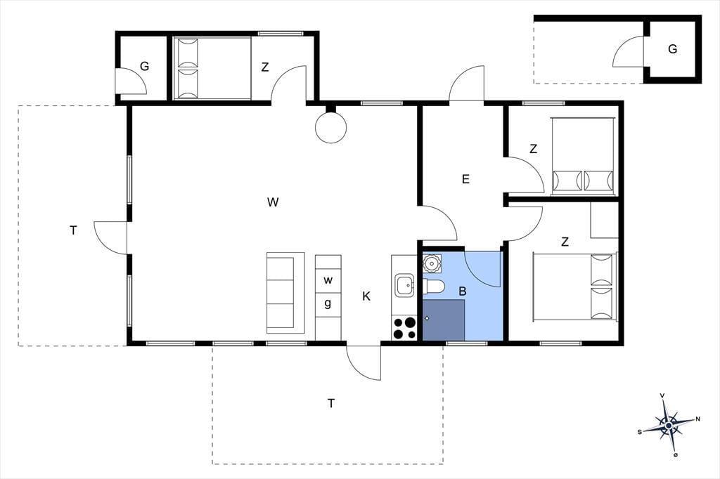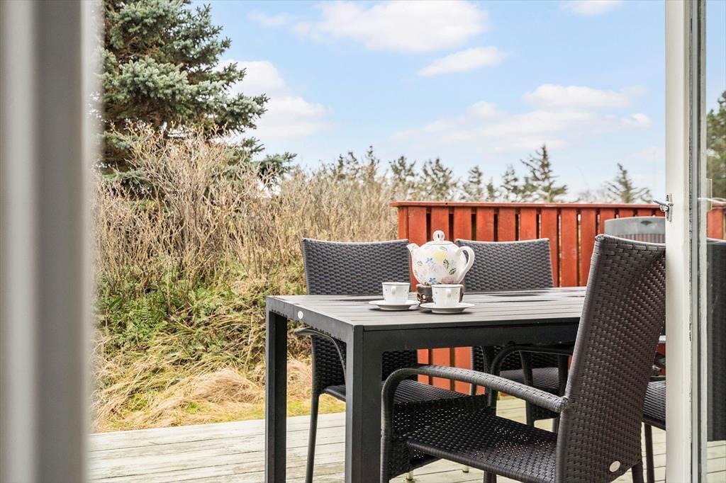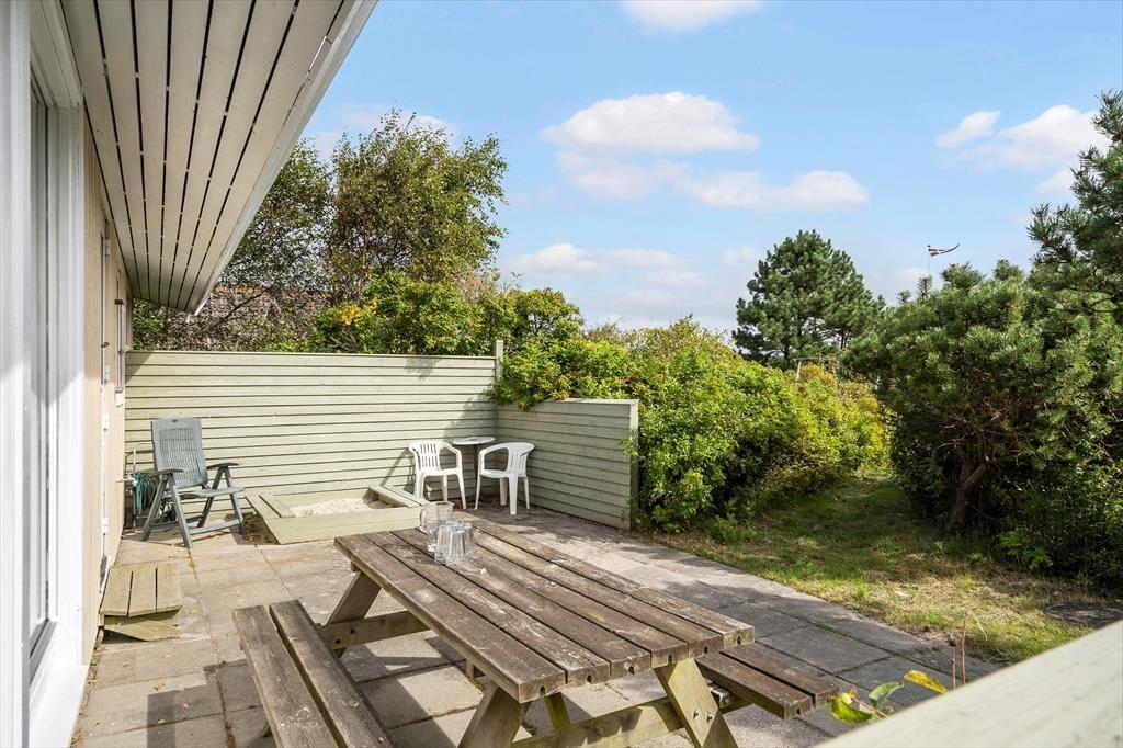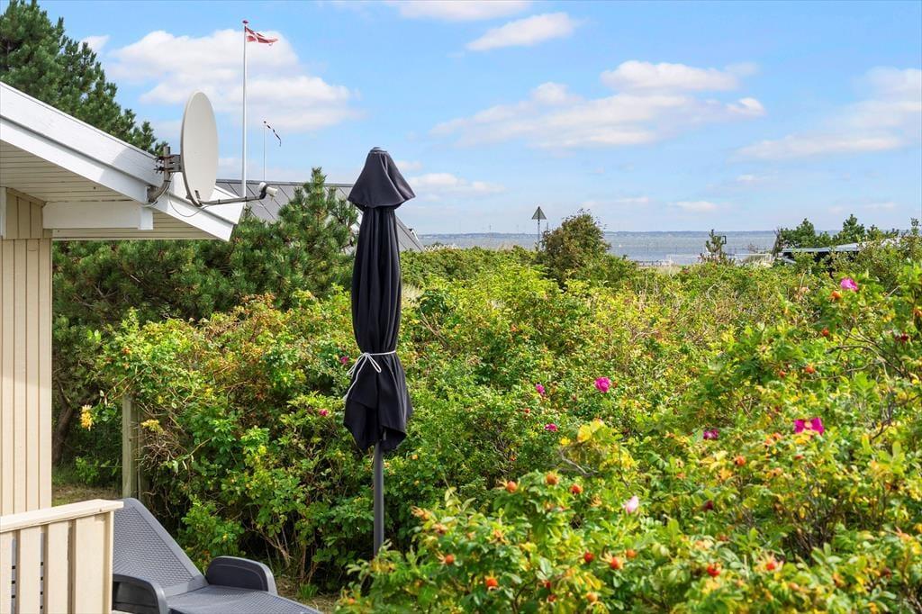 Ikke kun inden døre, men også ude i det fri er der lagt op til rendyrket sommerhushygge. På naturgrunden omkranses terrasserne af duftende hybenbuske og andet buskads, så du og dine kære kan slappe af i dejlige og ugenerede rammer. Dagen kan begynde på østterrassen, og senere kan I rykke hen på det syd- eller vestvendte opholdsareal, hvis I vil følge med solen helt frem til aftentid. Der er mulighed for at grille, og hvis du eller andre i familien selv har været ude med snøren, er det måske lokalfanget fisk, der skal tilberedes her i det grønne.