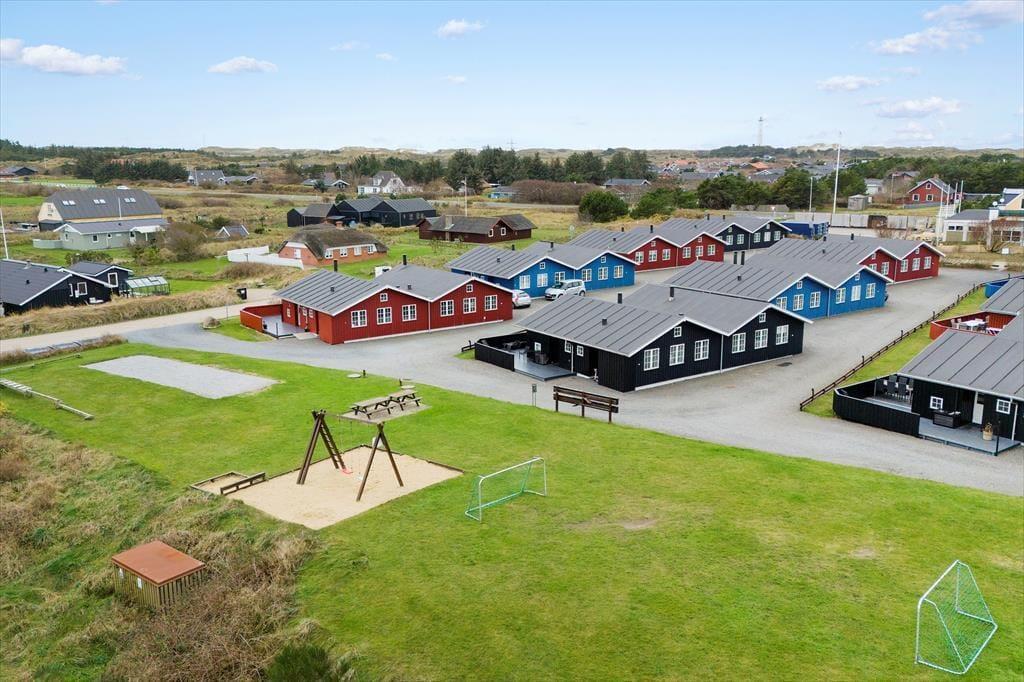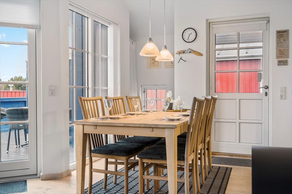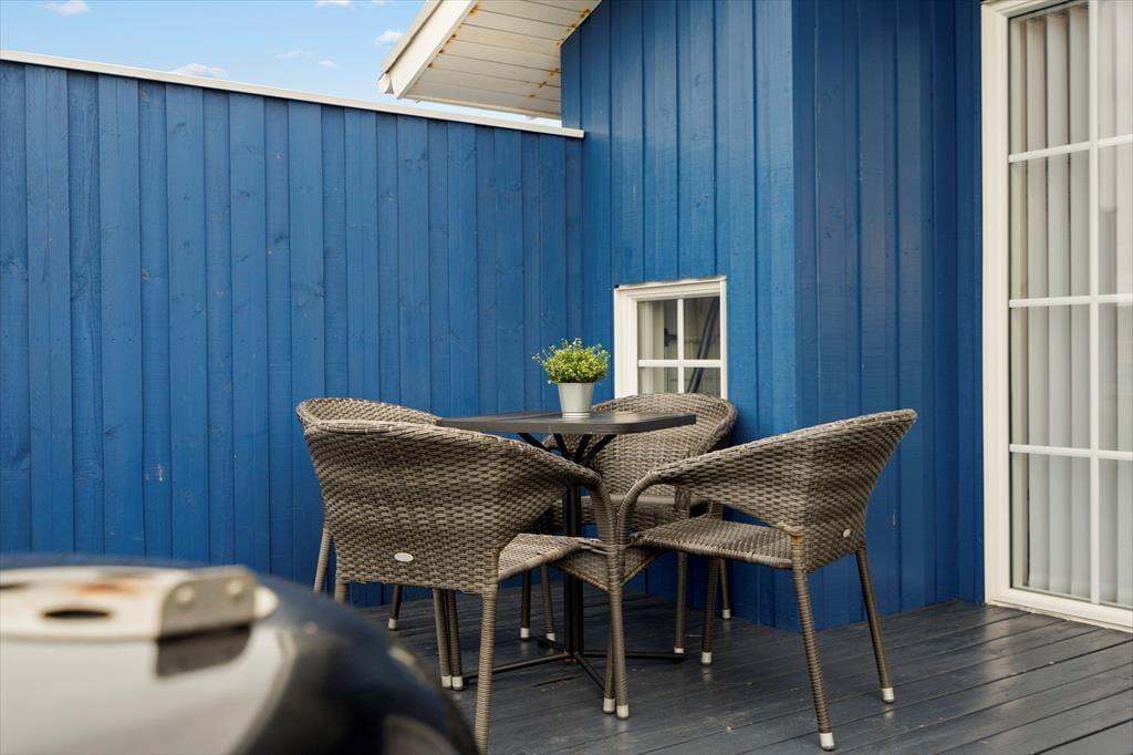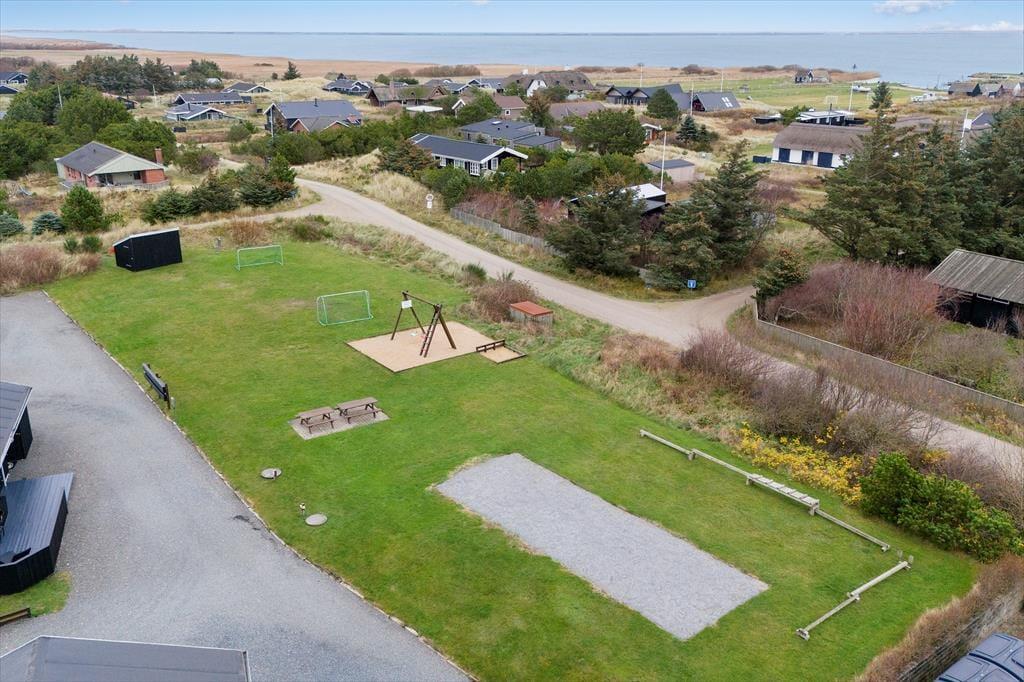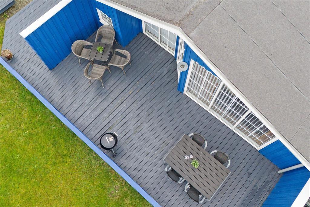 Fra stuen har I direkte adgang til en stor og solrig terrasse, som er perfekt til en rolig eftermiddag eller en aften med grill under den lyse sommerhimmel. Ferieboligen ligger for øvrigt som del af en lille bebyggelse af dobbelthuse, der omgives af græsplæner. Til den ene side er der gode parkeringsforhold, og til den anden ligger et fællesareal med legefaciliteter, petanquebane og boldbane, hvor ikke bare børnene, men hele familien kan boltre sig.