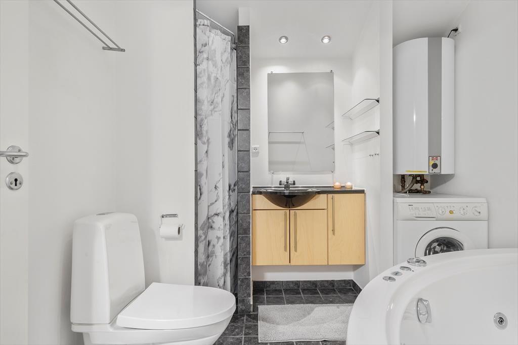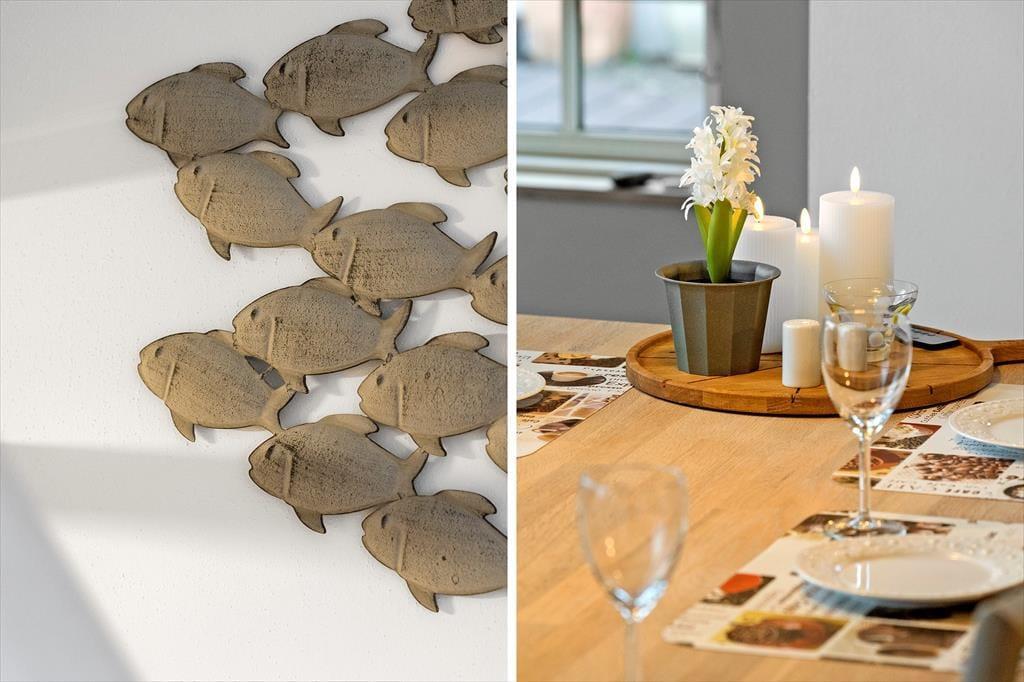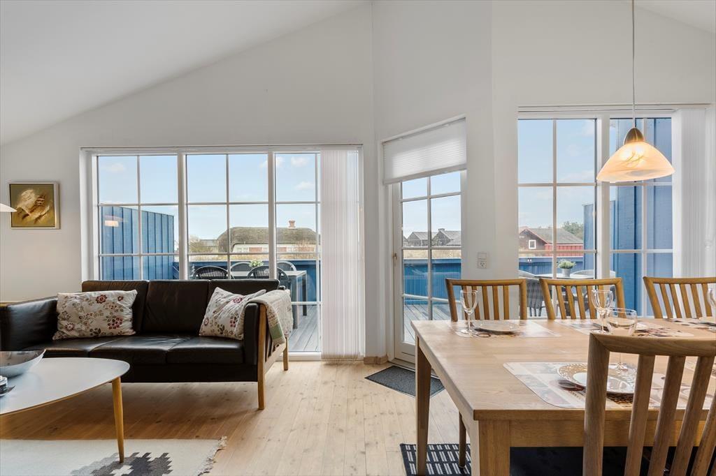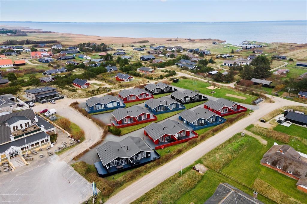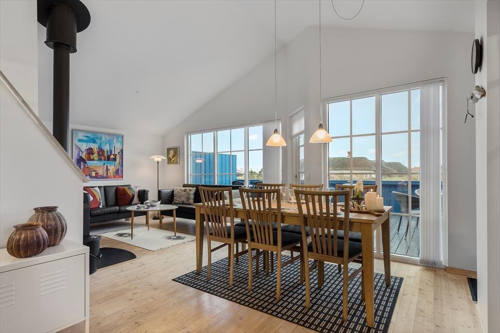Fra stuen har I direkte adgang til en stor og solrig terrasse, som er perfekt til en rolig eftermiddag eller en aften med grill under den lyse sommerhimmel. Ferieboligen ligger for øvrigt som del af en lille bebyggelse af dobbelthuse, der omgives af græsplæner. Til den ene side er der gode parkeringsforhold, og til den anden ligger et fællesareal med legefaciliteter, petanquebane og boldbane, hvor ikke bare børnene, men hele familien kan boltre sig.