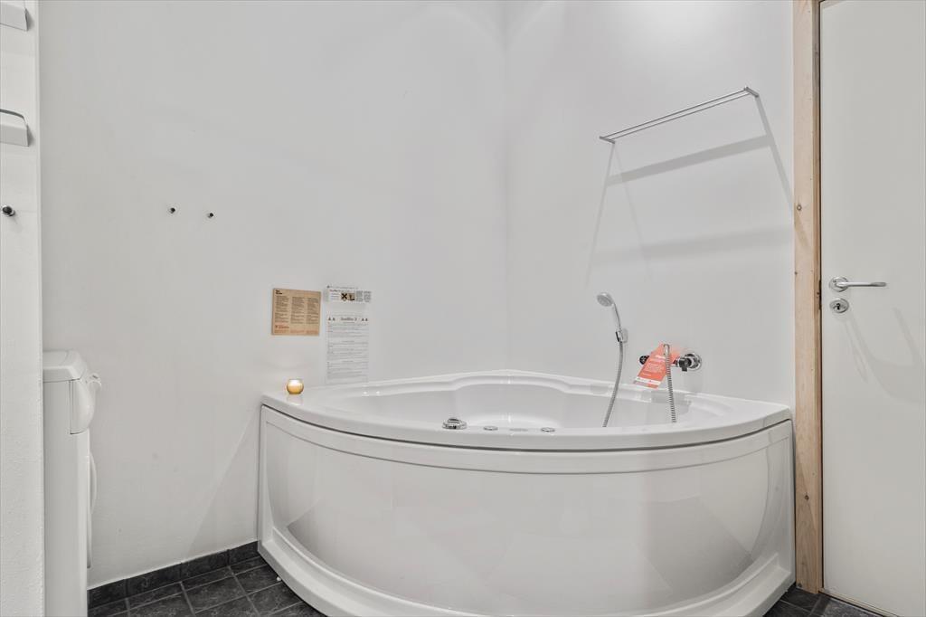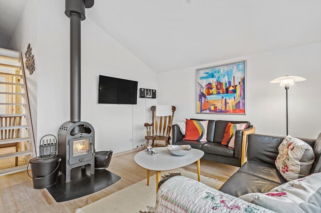 Det 68 m2 sommerhus + 12 m2 hems rummer alt, hvad I skal bruge for at holde en komfortabel og afslappende ferie. Der er endda skruet ekstra op for wellness-faktoren, for der er spabad på badeværelset – og en hyggeaften med en god film nær stuens brændeovn er også en skøn form for selvforkælelse som afslutning på feriedagen. Stuen ligger i åben forbindelse med et godt køkken, og side om side ligger tre soveværelser med i alt seks sengepladser. Fra stuen fører en trappe op til en hems, hvis nogle af jer hellere vil sove heroppe, og i løbet af dagen fungerer den glimrende som legeområde for børnene.