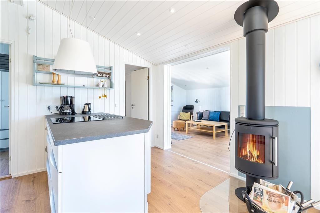 Når I er i humør til sommerhushygge og afslapning nær brændeovnen, er sommerhusets stue perfekt til formålet. Det er et stort, lyst og velindrettet opholdsrum, for det er vigtigt at have et godt sted at samles, uanset om I vil se film i sofaafdelingen, læse i lænestolene eller dele et godt måltid mad ved spisebordet. Køkkenet, der er integreret med stuen, er fra 2020, og her har I alt, hvad I skal bruge for at trylle noget lækkert frem. Ved sofaafdelingen går vinduet helt op til kip, så det giver jer et ekstra godt lysindfald og en dejlig udsigt, mens glasdøren ved spiseafdelingen gør det nemt at smutte ud på terrassen. De tre gode soveværelser betyder, at huset er velegnet til seks personer, mens det lyse badeværelse med sauna er med til at skrue op for wellnessfornemmelsen. Er I kommet til Holmsland Klit for at fiske, er det for øvrigt rart, at der er fiskerenseplads og en ekstra fryser på 80 liter i skuret.