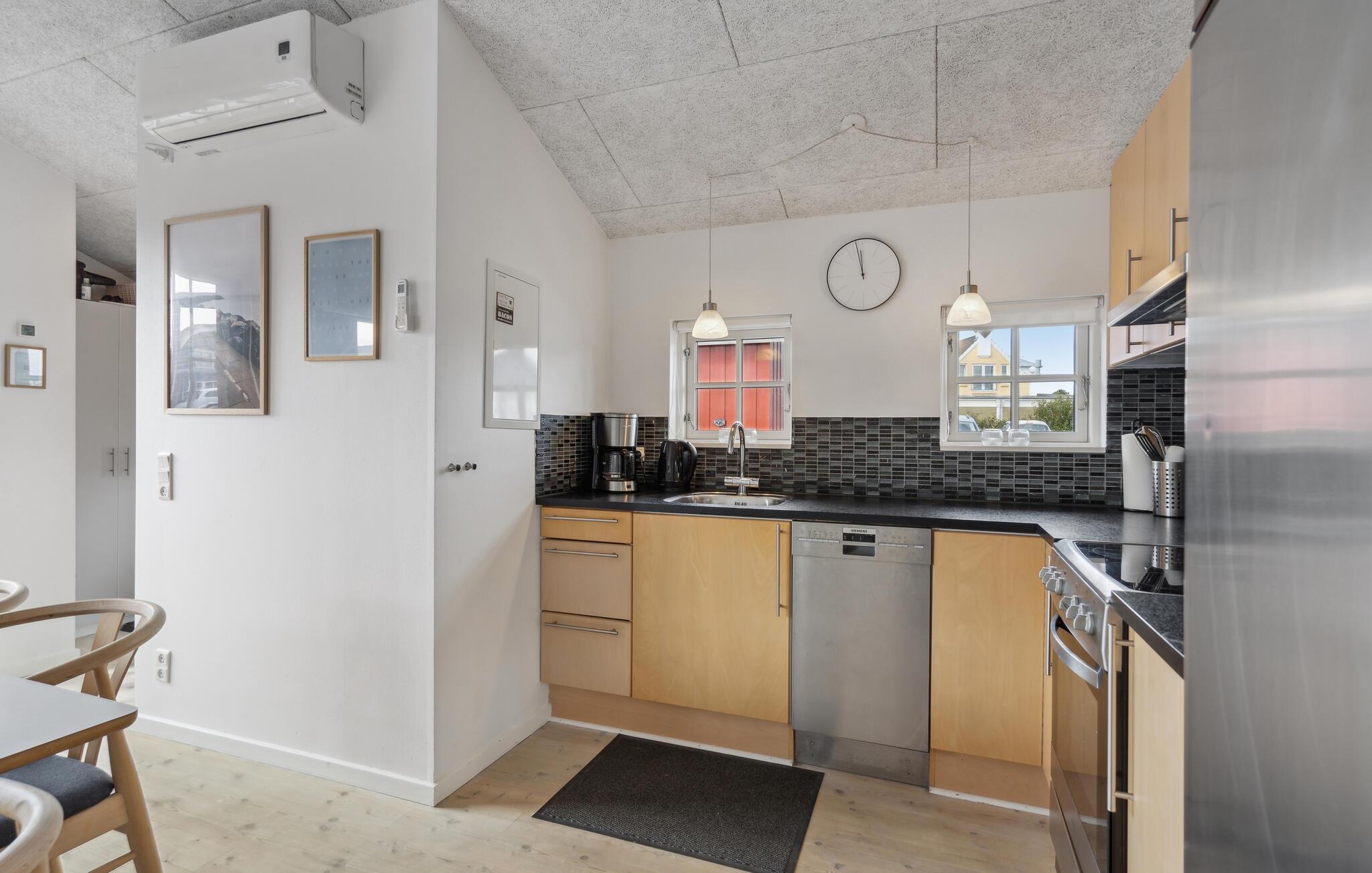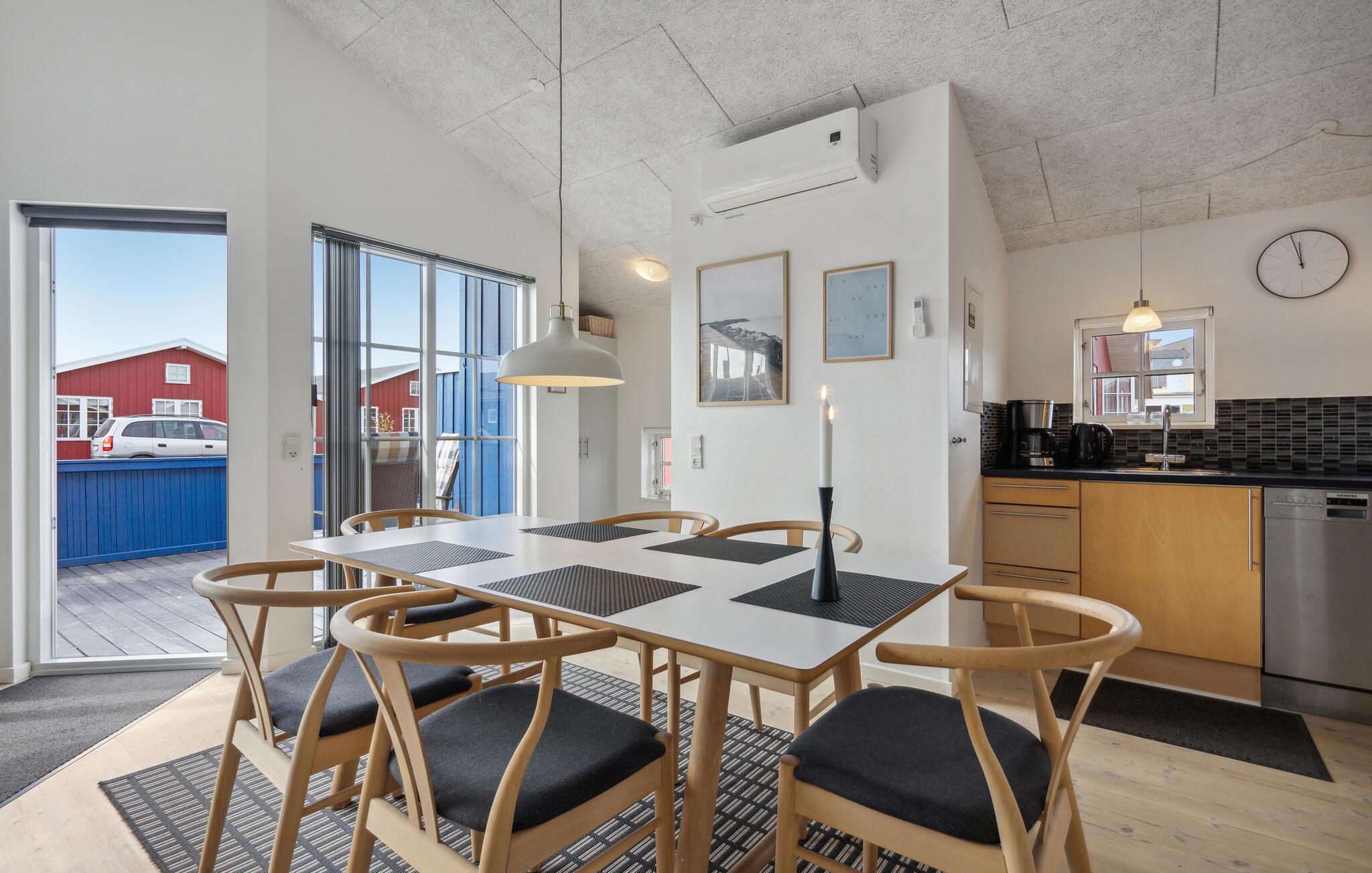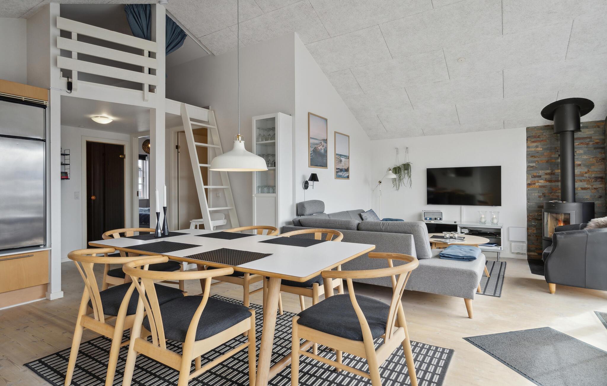 Det blå træhus i Nr. Lyngvig med en beroligende, lys atmosfære danner en god base for en oplevelsesrig ferie og en pause fra hverdagens stress og trummerum. Her er der tid til nærvær. Tid til det, I aldrig når, og tid til ingentingen! Det store køkken-alrum med hyggelige sprossevinduer bliver centrum for de mange fælles aktiviteter, der venter. Efter en lang, aktiv dag kan I tilbringe en dejlig aften med spil i det indbydende sofaområde med udsigt til det fri eller nyde et lækkert hjemmelavet måltid på terrassen.