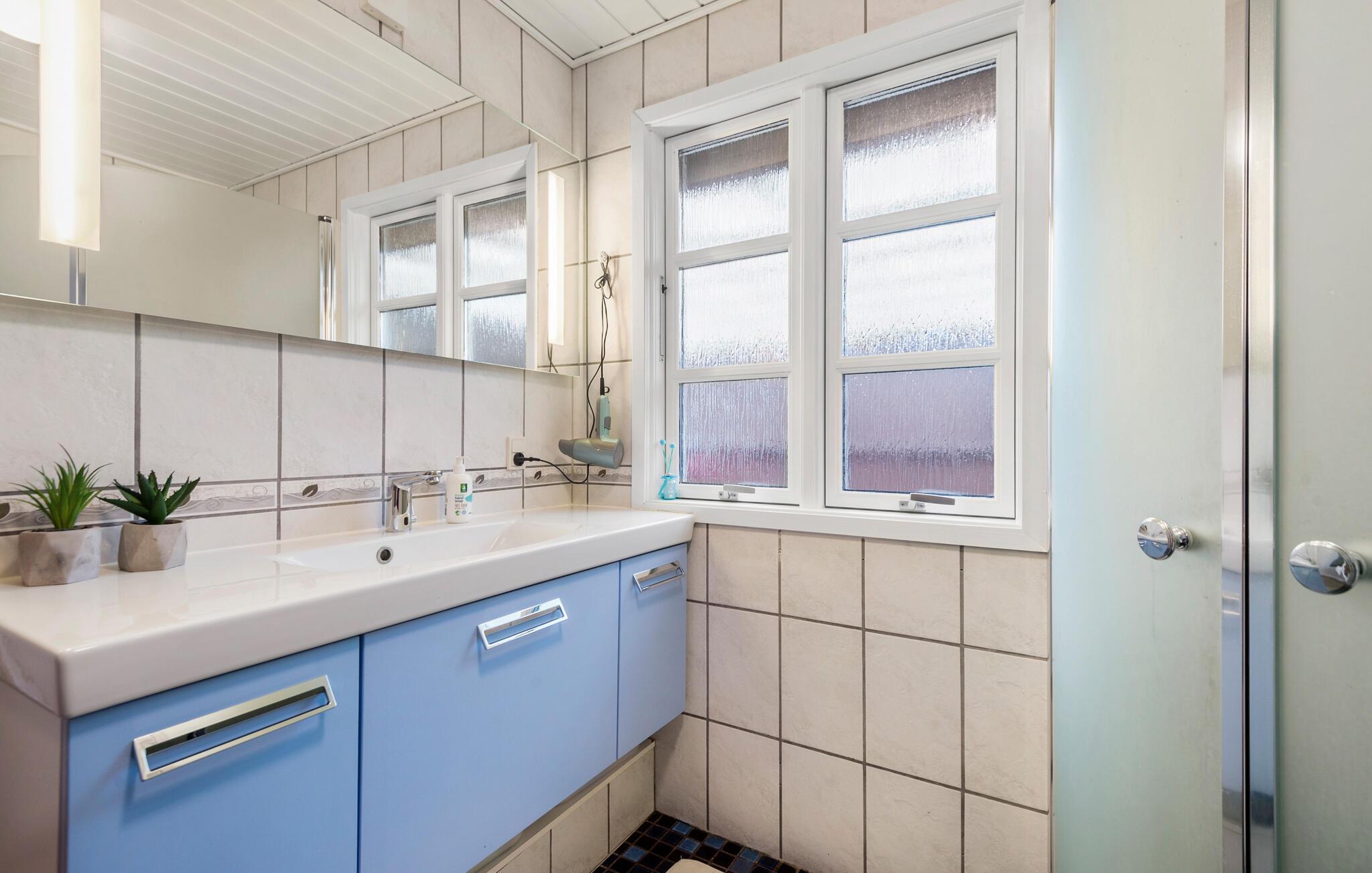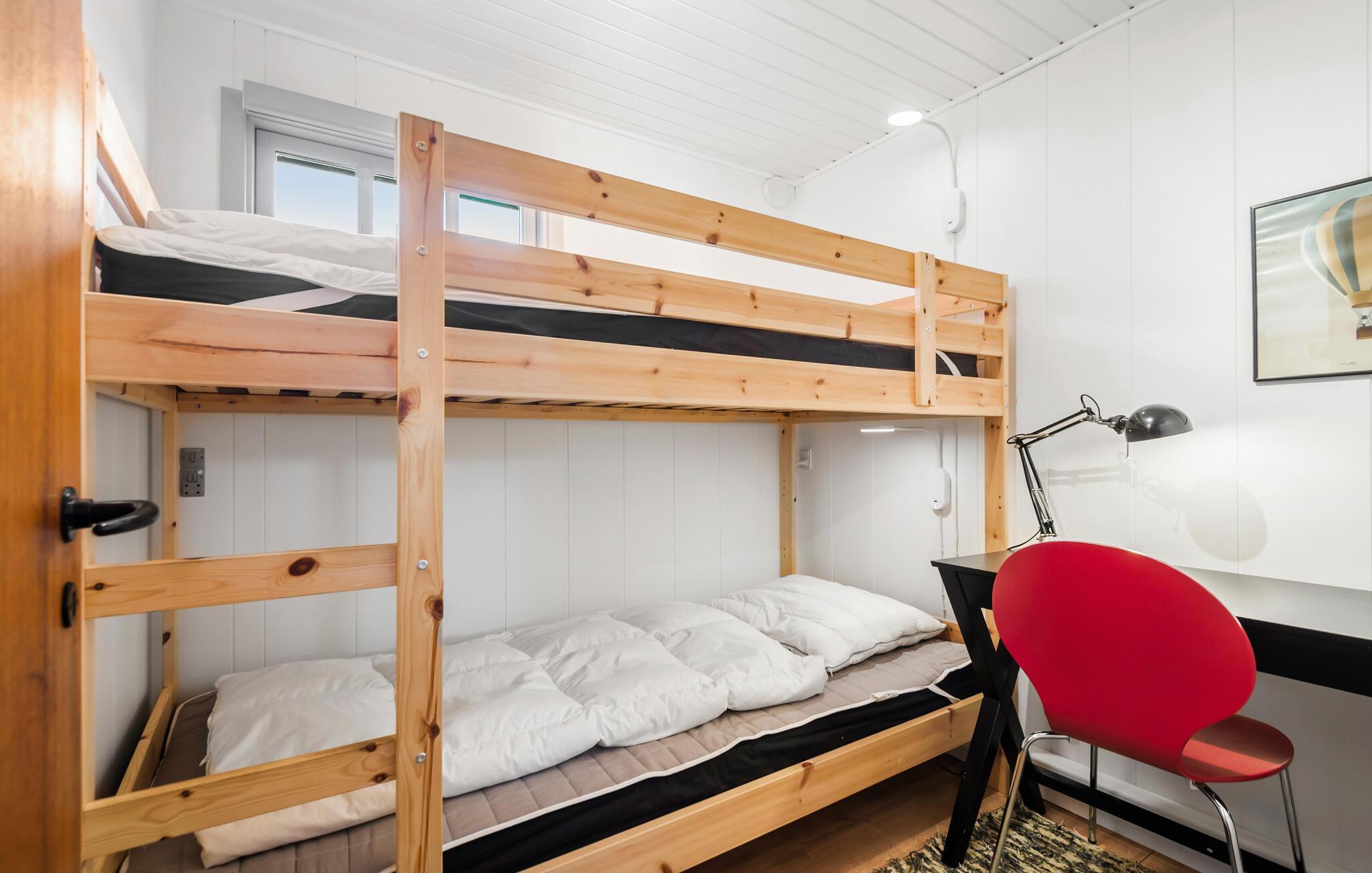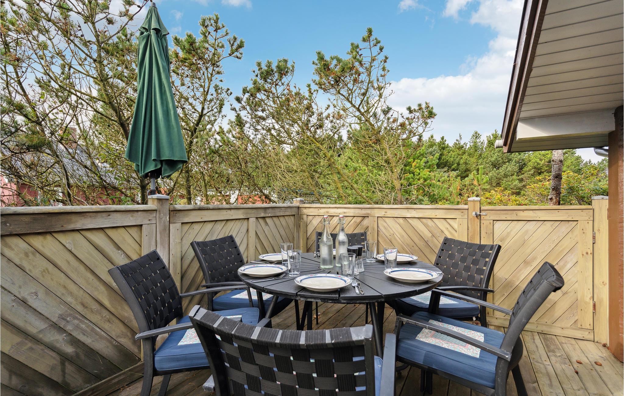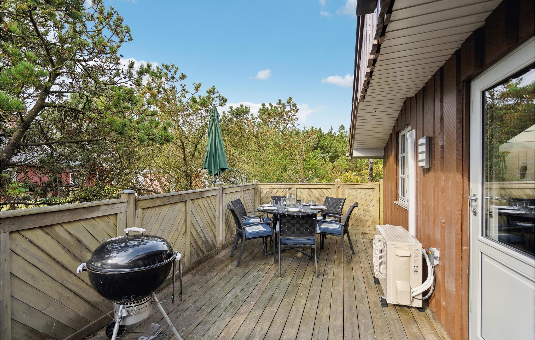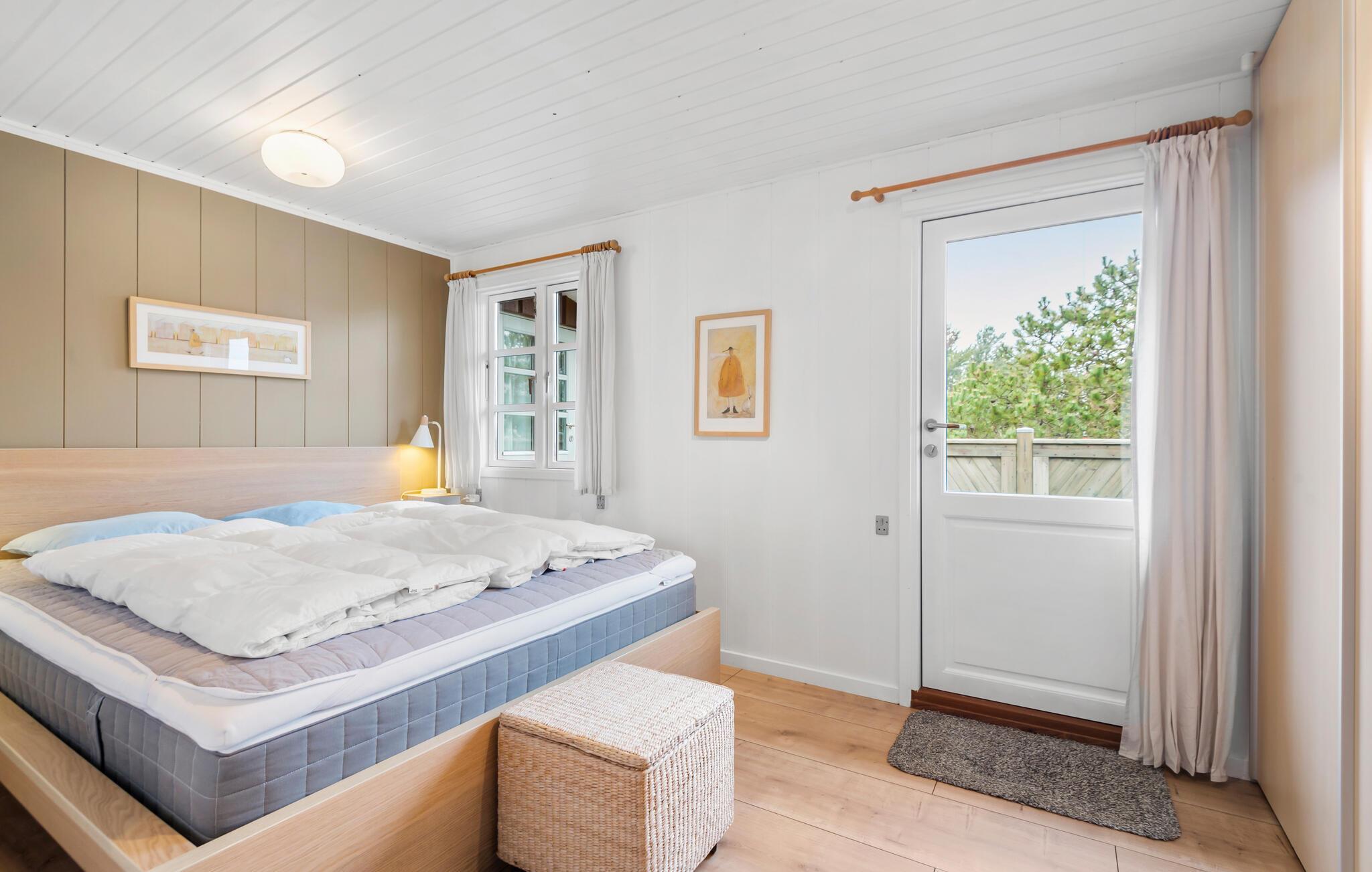Nyd en velfortjent pause fra hverdagen i dette hus i Nr. Lyngvig. Huset skaber de ideelle rammer for, at I kan slappe af og tilbringe tid sammen med jeres nærmeste. Den gode indretning og det naturlige lys, der kommer ind gennem de mange vinduer og ovenlysvinduer skaber en behagelig lys atmosfære med kig til himlen. Brændeovnen, som spreder hygge på køligere dage, fuldender den gode oplevelse. Afhængigt af vejret kan I vælge mellem en solrig eller vejrbeskyttet terrasse. Her kan I samles for at grille og spille et slag kort. Måske rykker I også morgenmaden udenfor? Nyd solen i haven og luk øjnene på solstolene.