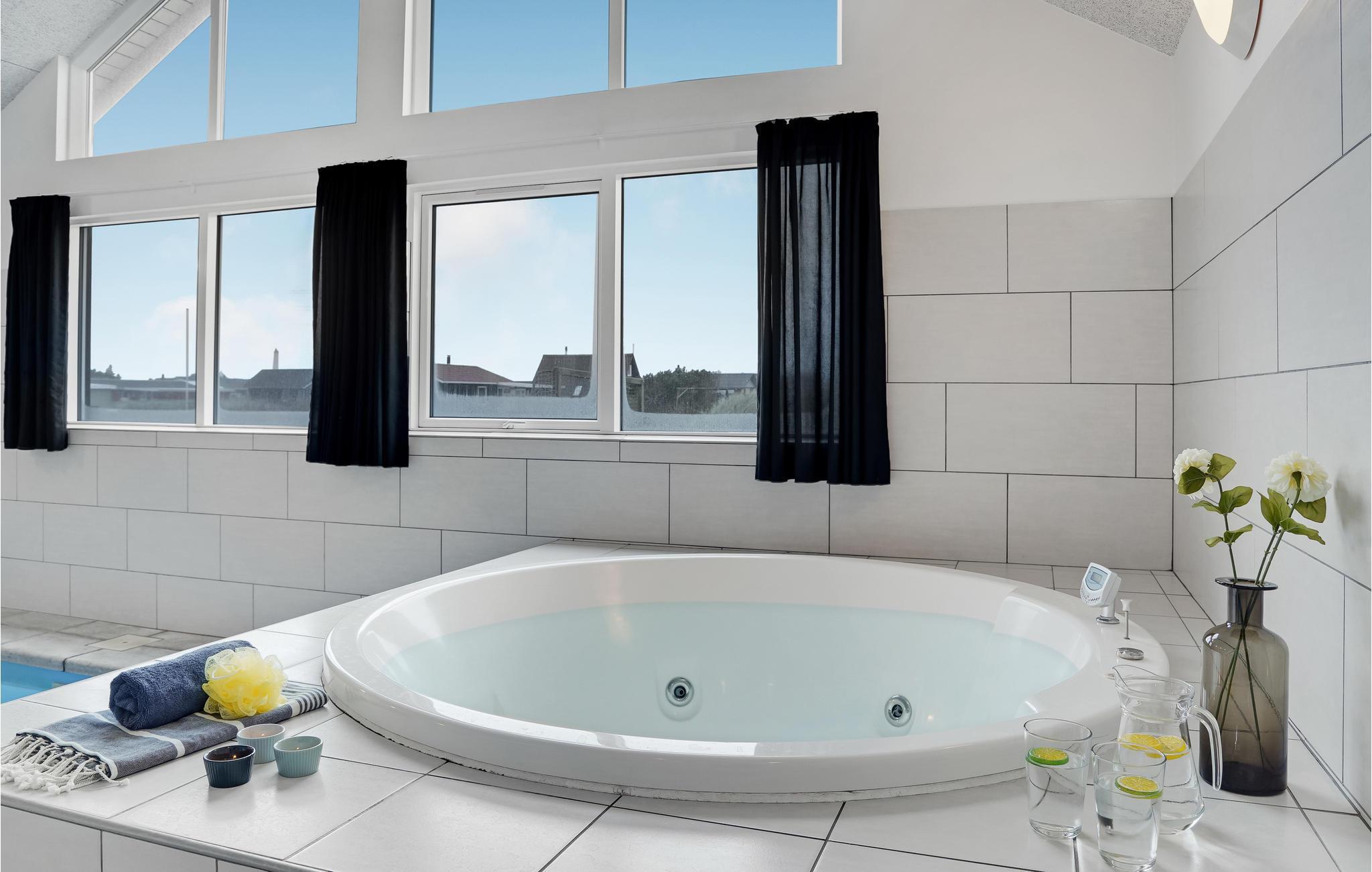Huset byder på al tænkelig komfort og er bygget op omkring to soveafdelinger med hvert sit badeværelse, hvilket gør det meget velegnet til flere familier, som ønsker at holde ferie sammen. Huset er udstyret med lydisolerede lofter, som gør det meget behageligt at opholde sig i. Der er lagt stor vægt på luksus - her tænkes specielt på husets imponerende poolafdeling, som indeholder en stor pool med vandrutsjebane, et dejligt 4-6 personers spabad samt en stor sauna. I det store aktivitetsrum kan I spille både billard/bordtennis, dart, bordfodbold, Playstation 5. Køkkenet er særdeles velindrettet og udstyret med to komfurer og to opvaskemaskiner samt to køle-/fryseskabe, så der uden problemer kan være mange kokke og køkkenskrivere om den fælles madlavning.