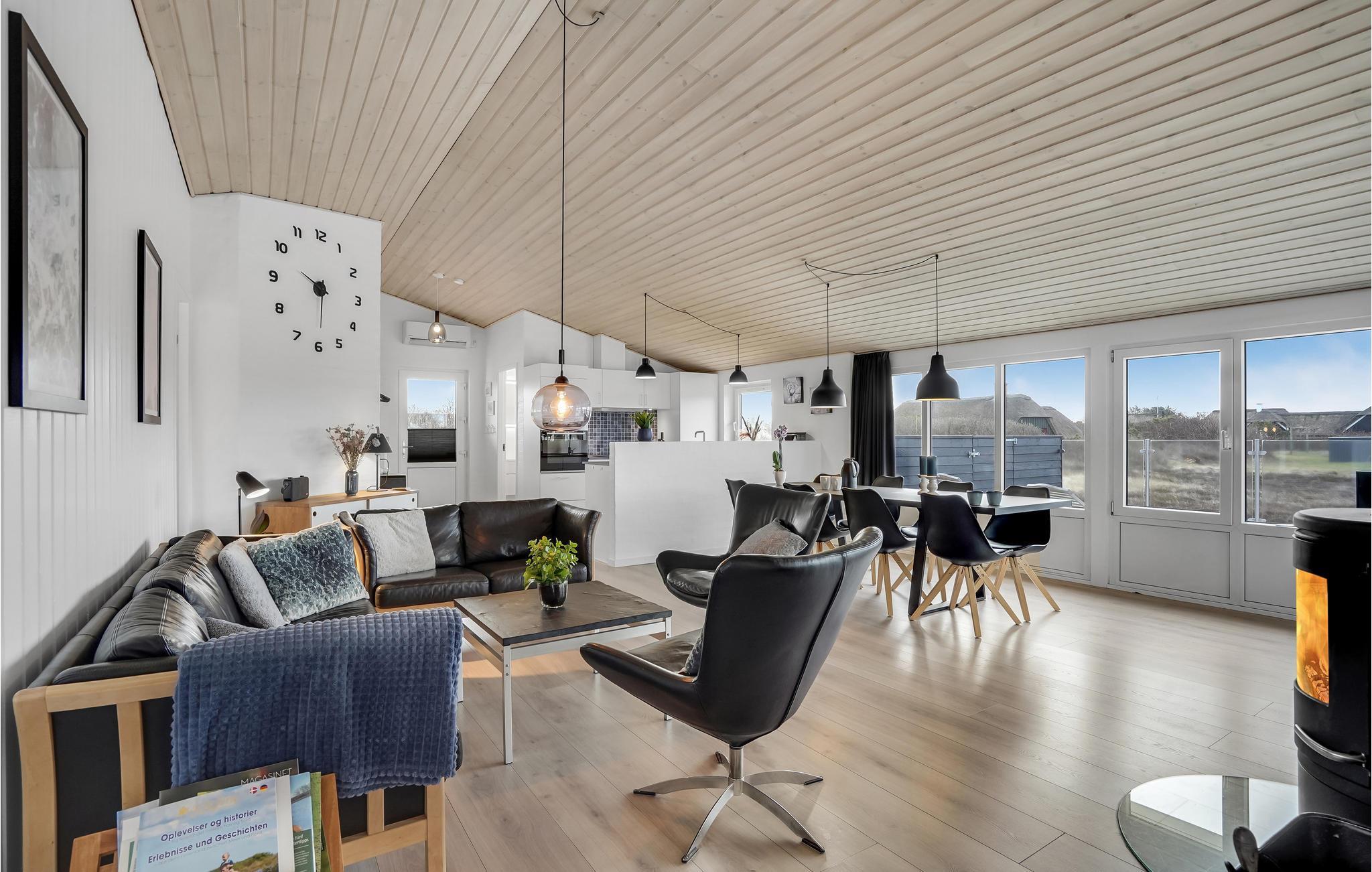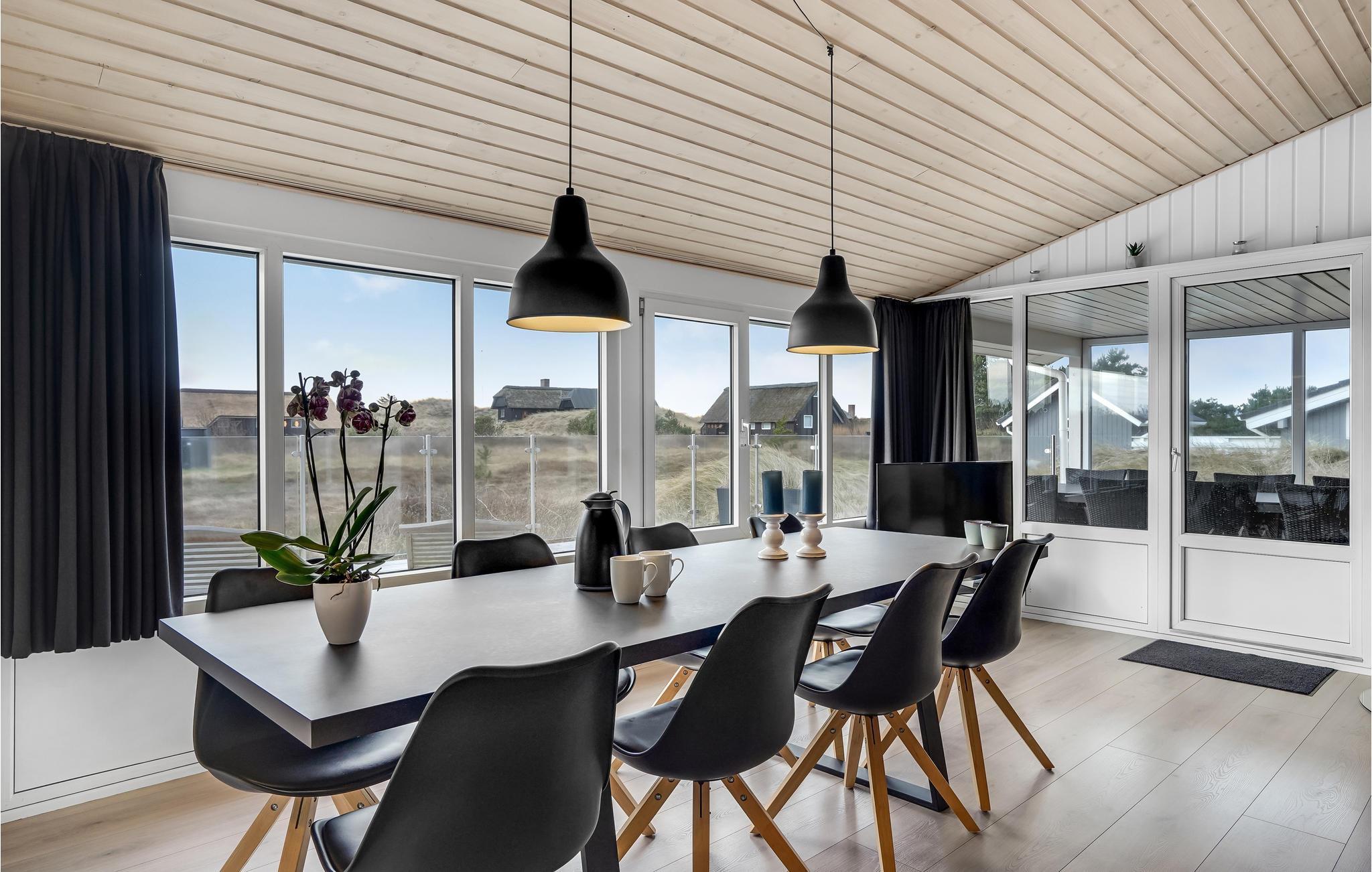 I det skønne ferieområde tæt på Vesterhavet og på Lyngvig Fyr ligger dette skønne sommerhus. Huset er velindrettet til 6 personer med 3 soveværelser, et stort badeværelse med både sauna og spabad samt et gæstebadeværelse. Stuen ligger i åben forbindelse til køkkenet og danner husets hjerterum. Her er både varmepumpe og brændeovn som supplerende varmekilde. Fra stuen er der udgang til den fantastiske terrasse, som er både delvis overdækket og komplet indhegnet. Fra stuen har I endvidere en fin udsigt over det kuperede hedelandskab.