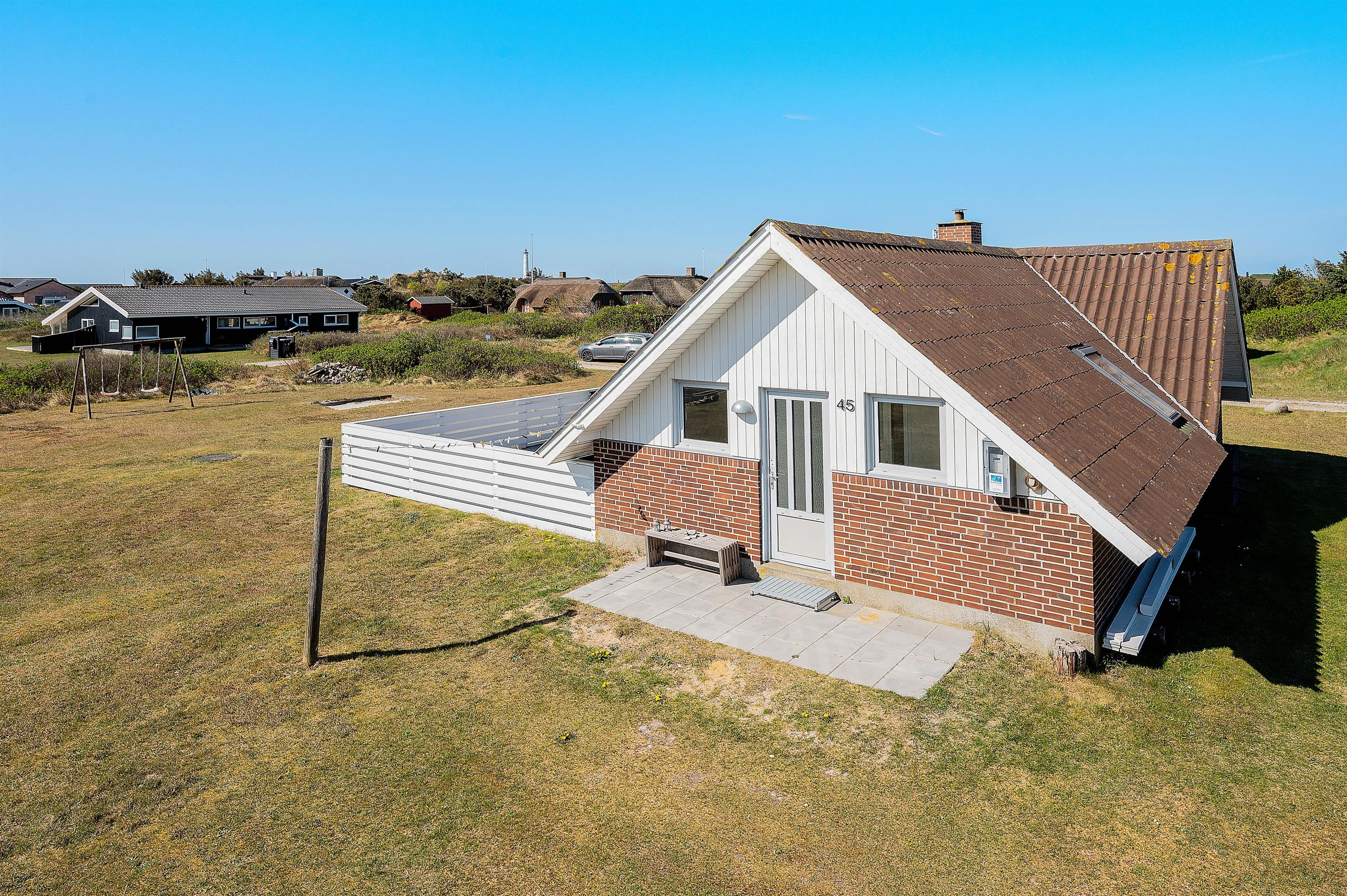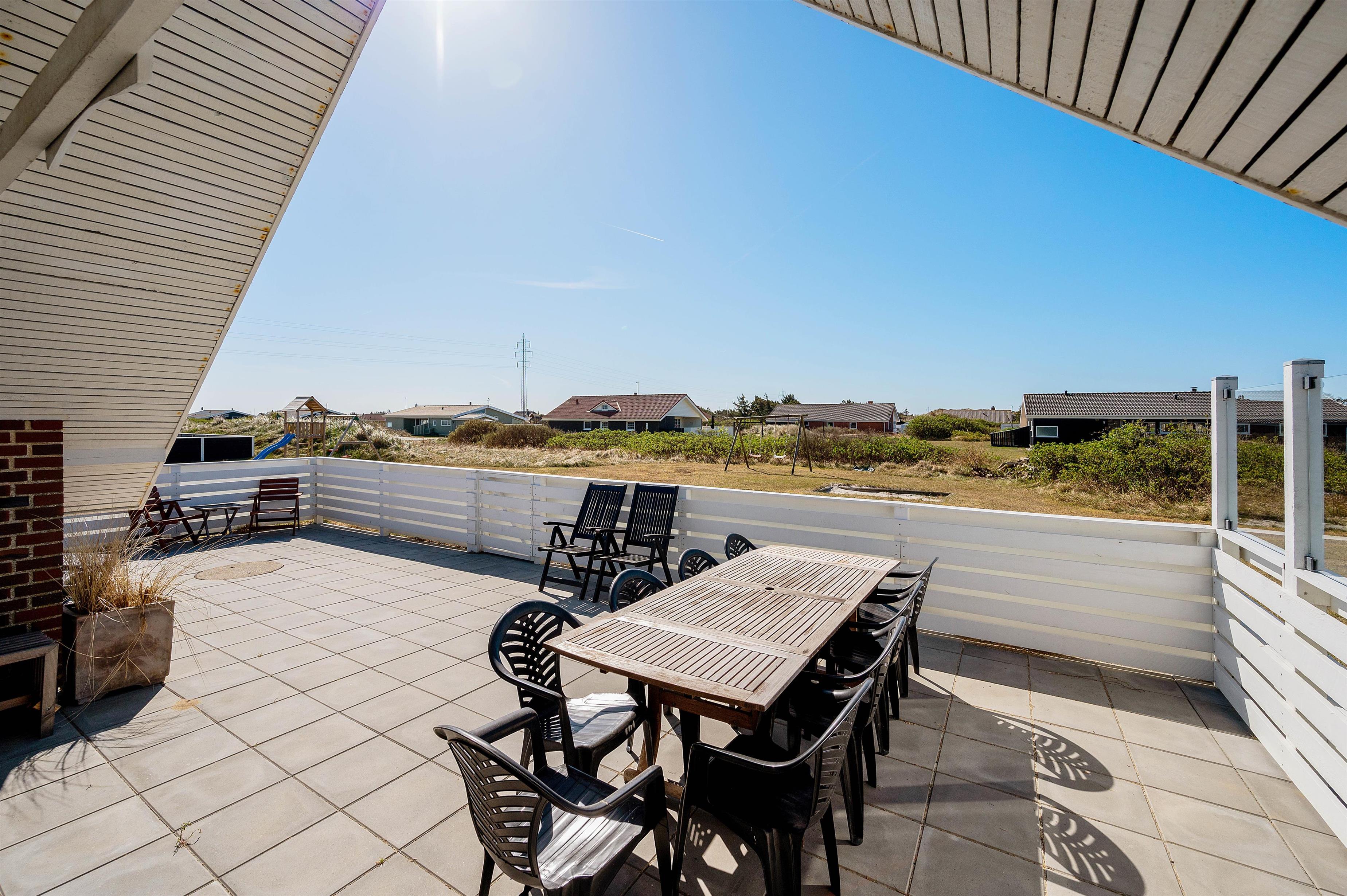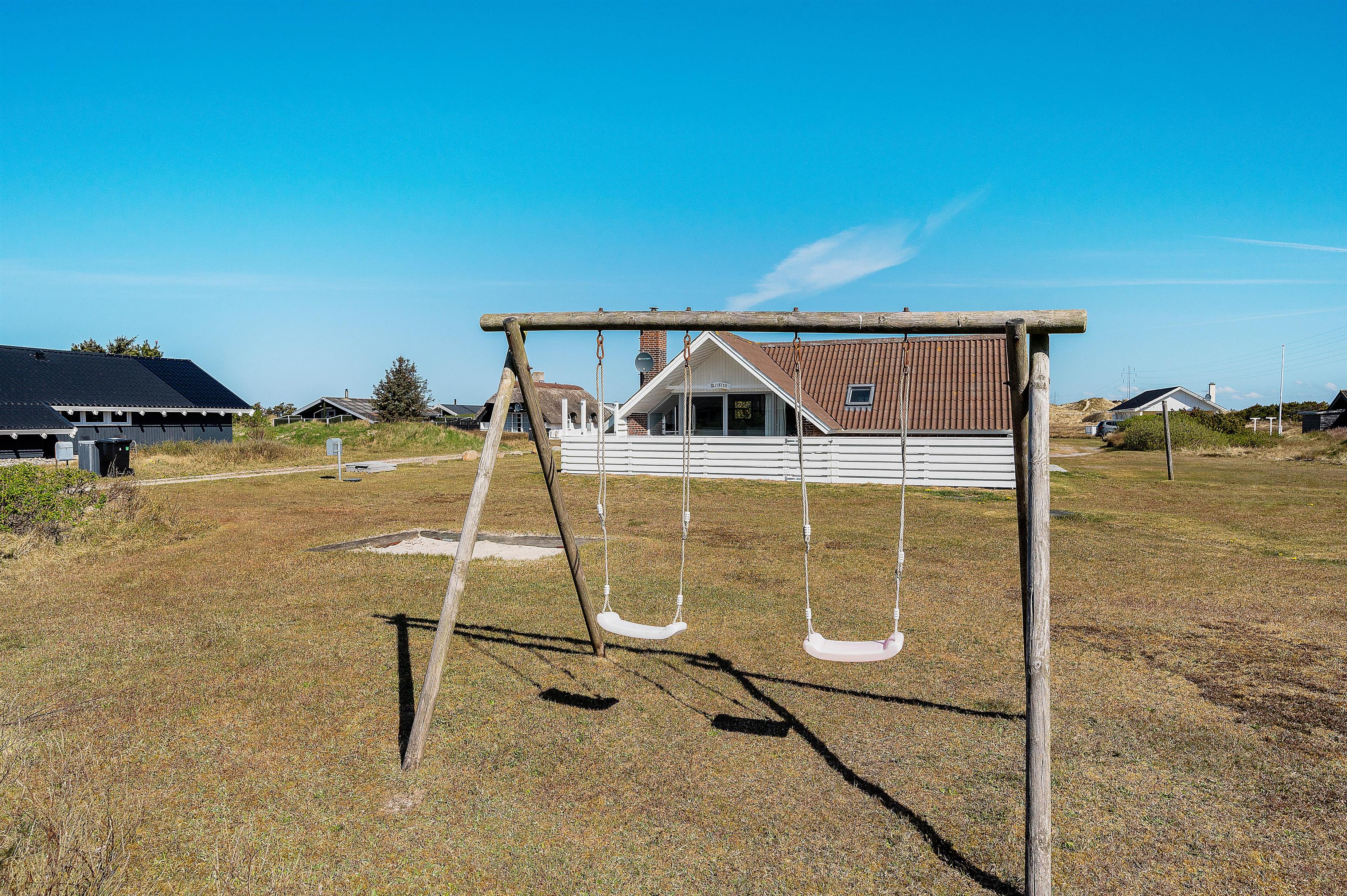 Den lukkede terrasse sørger for, at de små venner på turen ikke har nogen chance for at bryde ud. Fra feriehuset når I inden for kort afstand med cykel eller til fods Lyngvig Fyr.