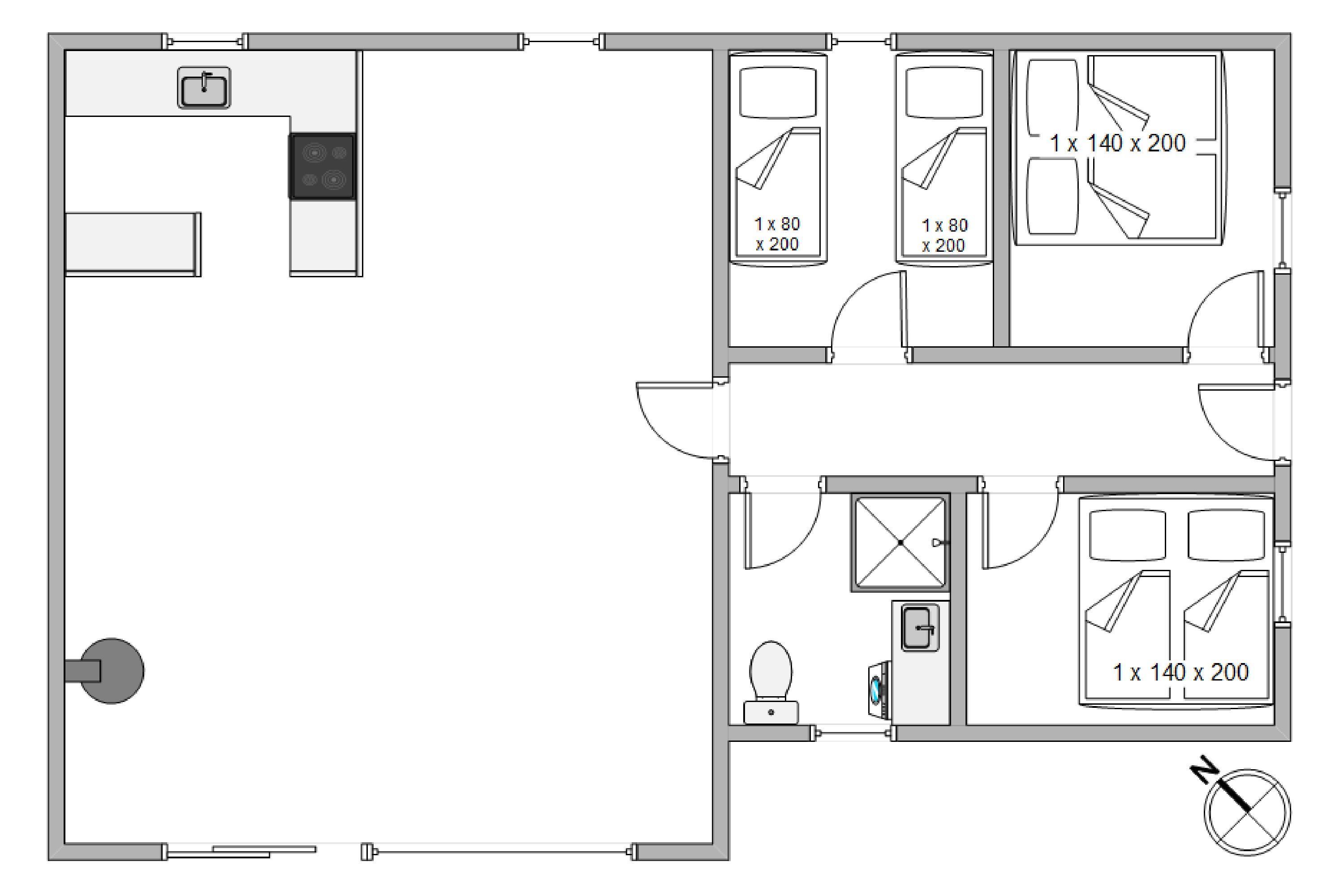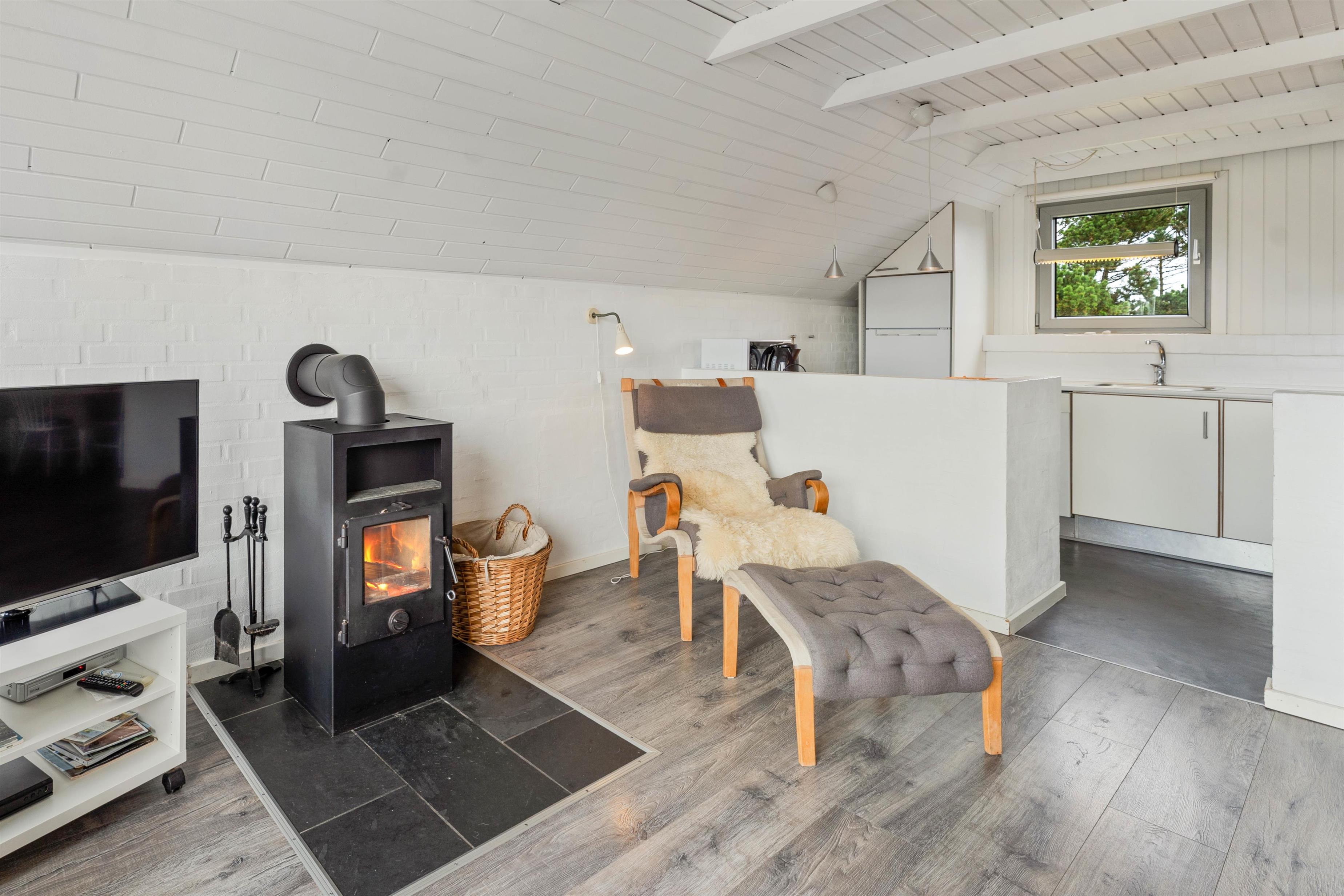 Det klassiske feriehus er vedligeholdt, og I kommer hurtigt til at føle jer velkomne og tilpas. Fra indgangspartiet har I adgang til de 3 soveværelser og opholdsstuen, og disse rum vil med sikkerhed blive jeres foretrukne samlingspunkt i feriehuset. Stuen og køkkenet ligger i forlængelse af hinanden og I kan her nyde nogle skønner timer i hinandens selskab. Feriehusets brændeovn sørger for den klassiske feriehusstemning, alternativt kan I også benytte jer af den energisparende varmepumpe. Den sørger hele året for en behagelig rumtemperatur. Praktiske hjælpere er der også tænkt på i feriehuset i form af opvaske- og vaskemaskine. Opvaskemaskinen står for opvasken og vaskemaskinen sørger for, at I kan nøjes med at pakke den lille taske til ferien. I behøver derfor kun at medbringe jeres yndlingstøj. Derudover byder feriehuset på to fladskærme, hvoraf den ene kun kan benyttes med Netflix adgang eller som spillekonsol. Fra stuen har I adgang til den store lukkede terrasse, der delvis er åben og delvis overdækket terrasse. I kan her på terrassen tilbringe en dag ved feriehuset. Der er her også blevet tænkt på de små feriegæster. Feriehuset byder nemlig på både sandkasse og gynger, så de har derfor rig mulighed for at få brændt en masse krudt af, og der er i forbindelse hermed sørget for mange timers sjov. Om aftenen kan I her tilberede et lækkert aftensmåltid på grillen imens I nyder et koldt glas vin eller lignende med hinanden.