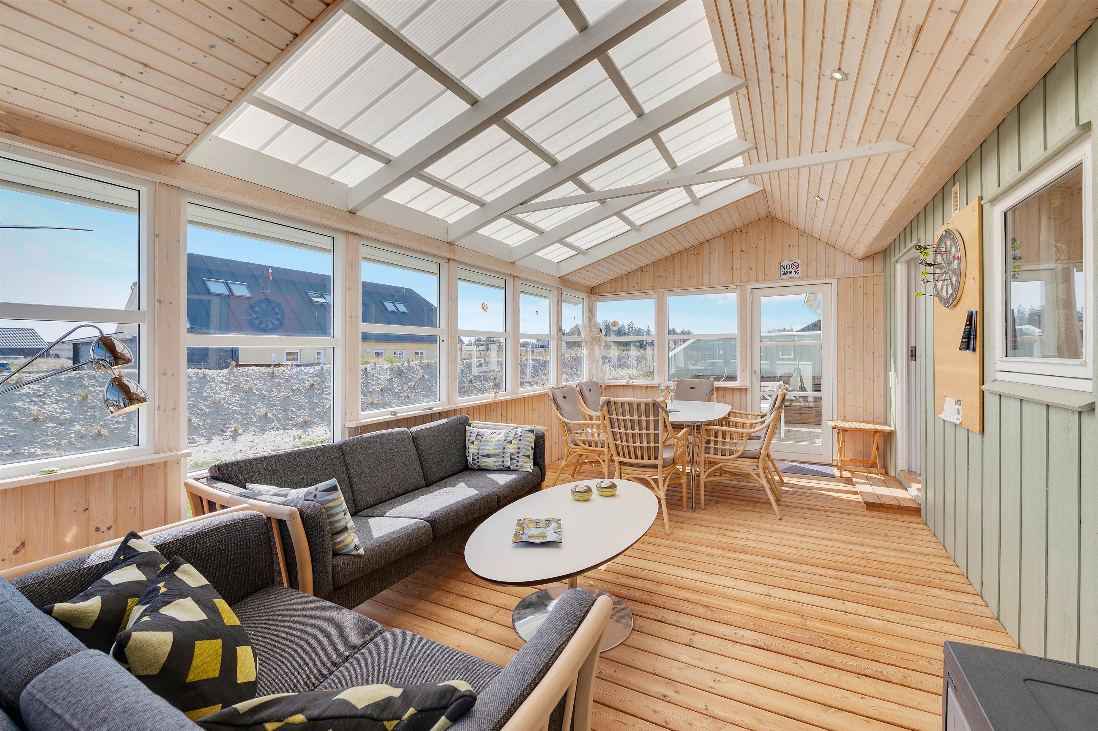 Ydermere er der en fin og hyggelig udestue i feriehuset, hvor I sammen kan tage et spil dart eller hygge jer i sofaen til et spil, imens I nyder udsigten til den omkringliggende natur. Fra den dejlige og lyse udestue er der udgang til de 2 terrasser mod øst og vest.