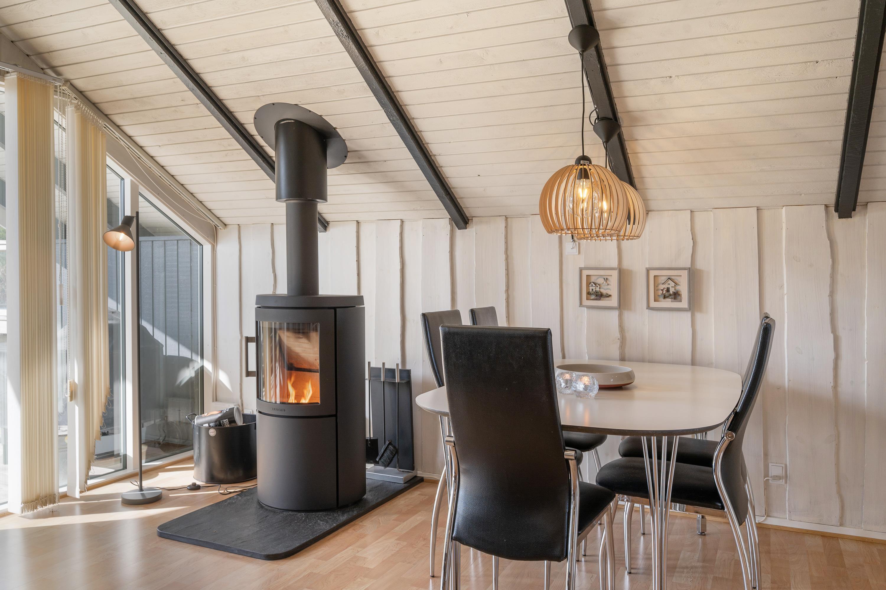 Sommerhushygge foran brændeovnen