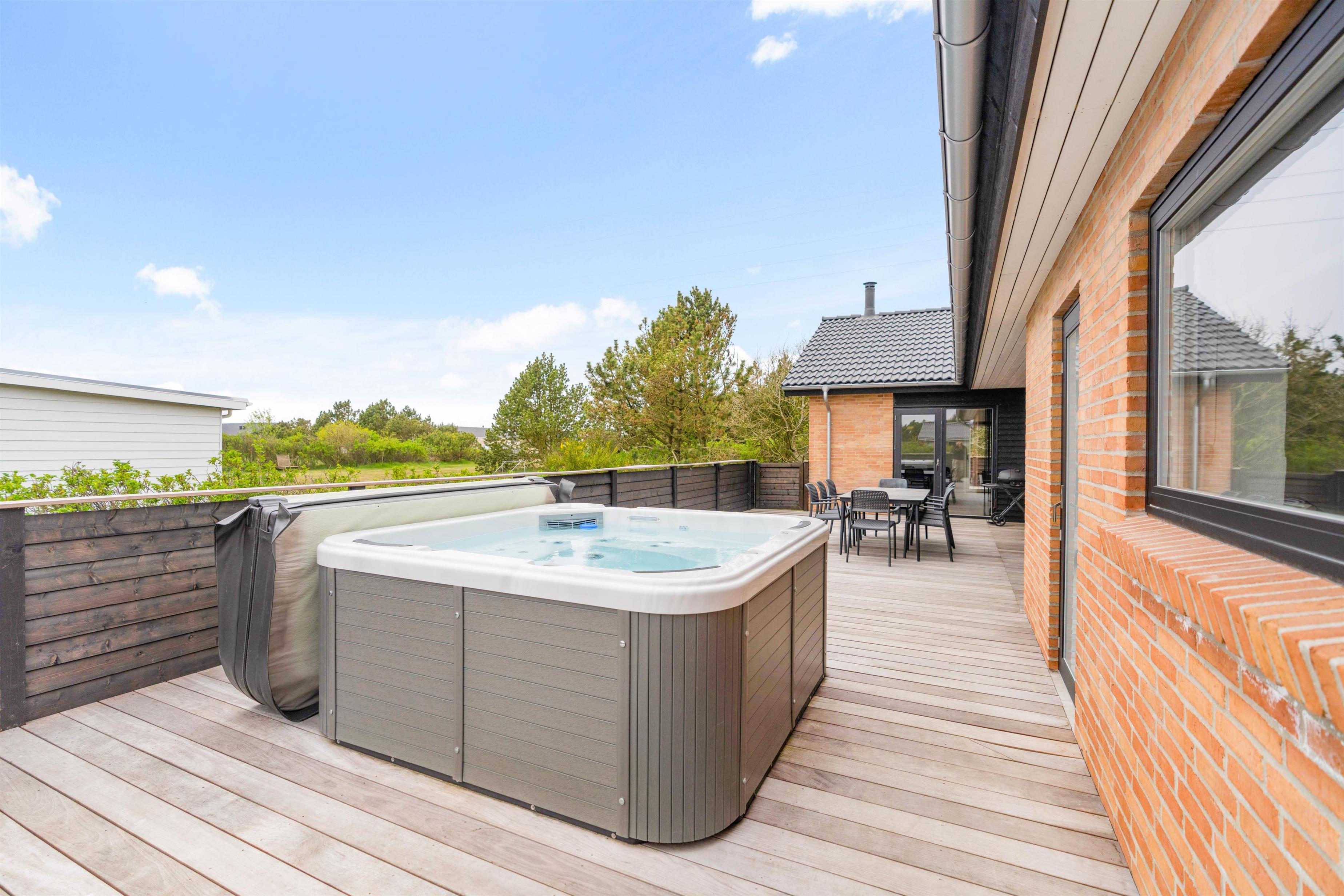 Ikke nok med, at sommerhuset sætter rammerne for en aktiv og underholdende ferie – der er også mulighed for at nyde masser af wellness på ferien. Først og fremmest på den store træterrasse, der gemmer på jeres helt egen wellnessoase med et lækkert udespa. Og indenfor får I en sauna, der ligger i forlængelse af det ene badeværelse. Der er altså masser af mulighed for at slappe af og lade batterierne op.