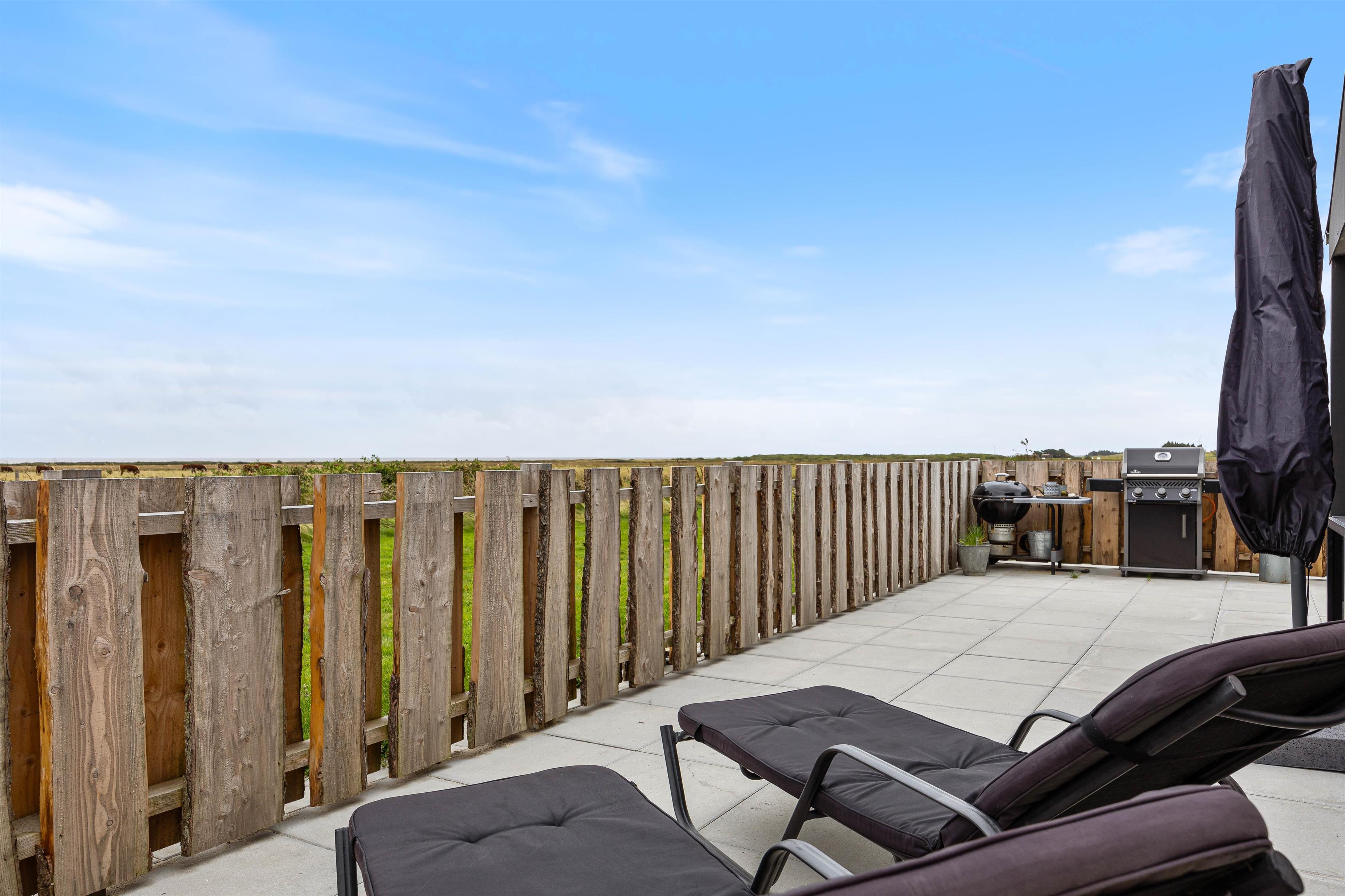 Der er en god terrasse tilhørende huset. Den er placeret mod øst, som på vestkysten ofte er lige med læ, især ved den delvist overdækkede del af terrassen. Her kan I tilbringe dejlige grillaftener med familien eller venner. I kan også bare nyde solen på liggestolene, imens børnene leger i husets sandkasse og dine hunde vil helt sikkert finde et skønt sted.