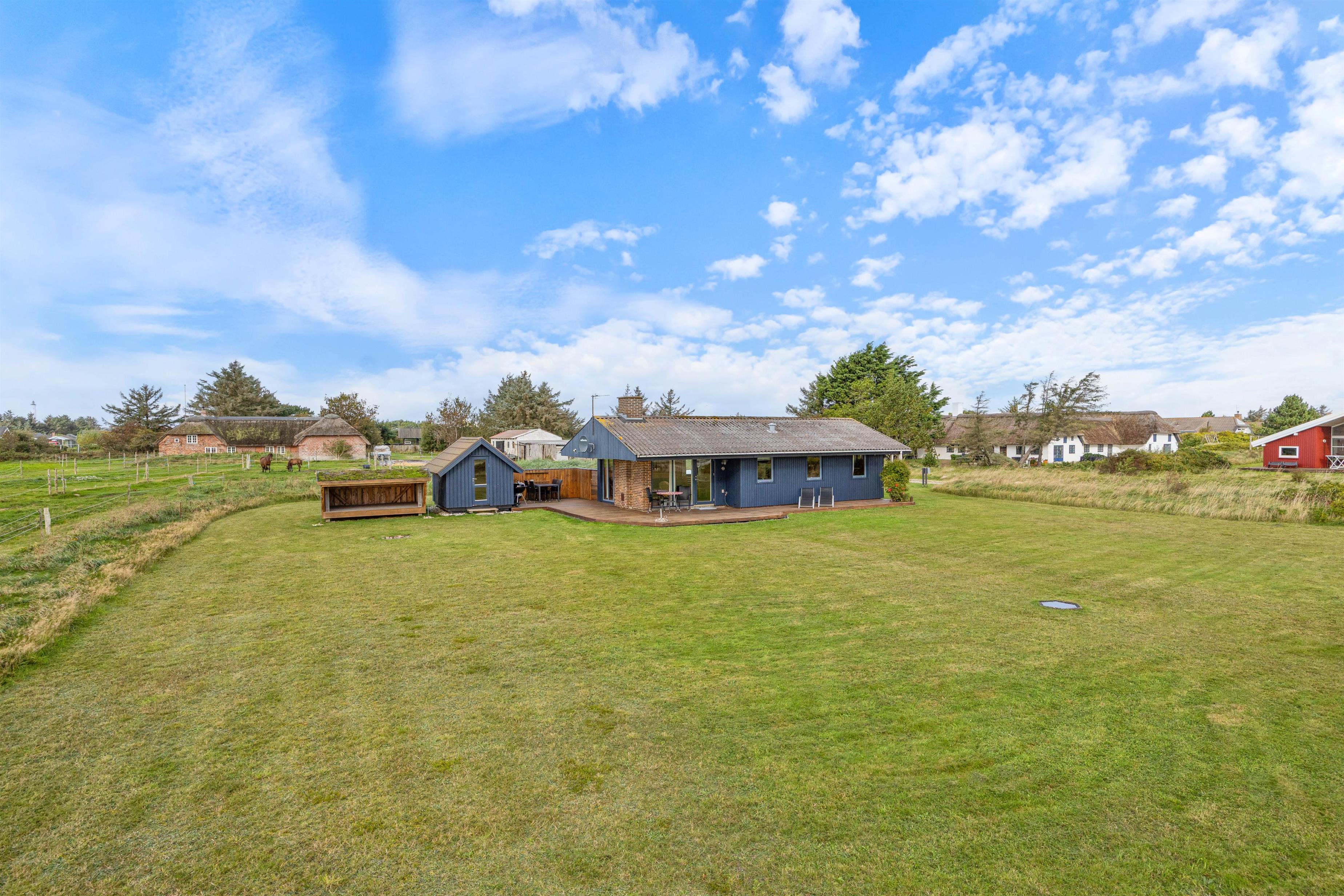 Sommerhusets placering på Anker Eskildsens vej 82 er rolig, idyllisk og har de perfekte rammer for at komme helt ned i gear. Vesterhavet ligger på den anden side af Klitvejen og områdets vartegn – Lyngvig Fyr – viser jer vejen direkte dertil.