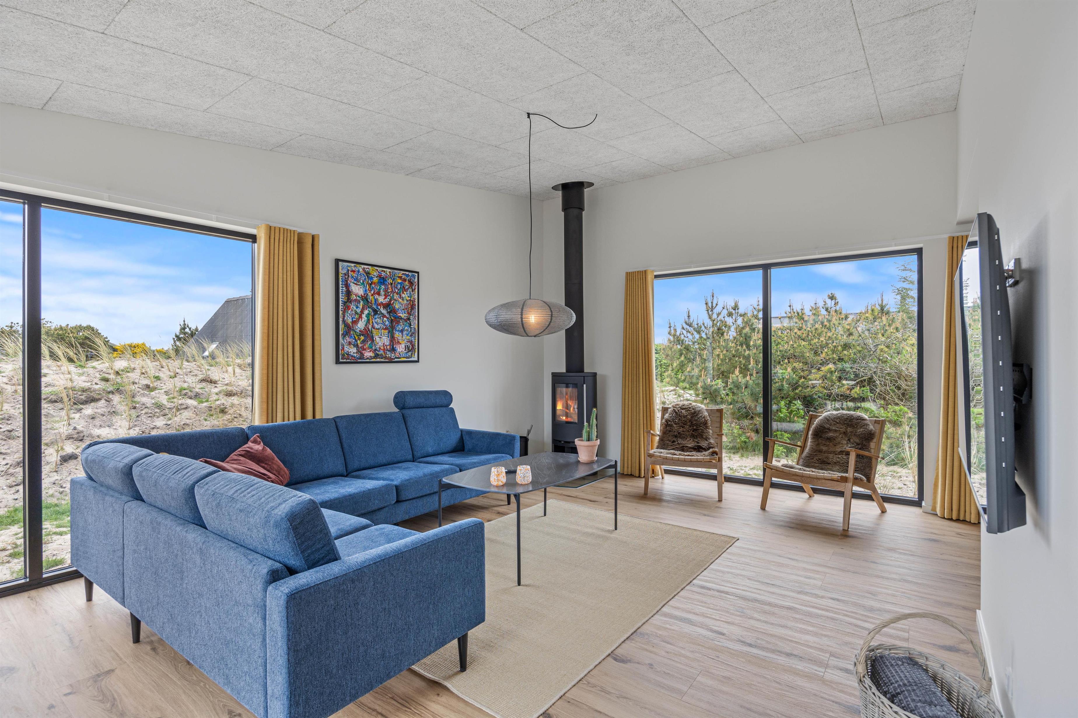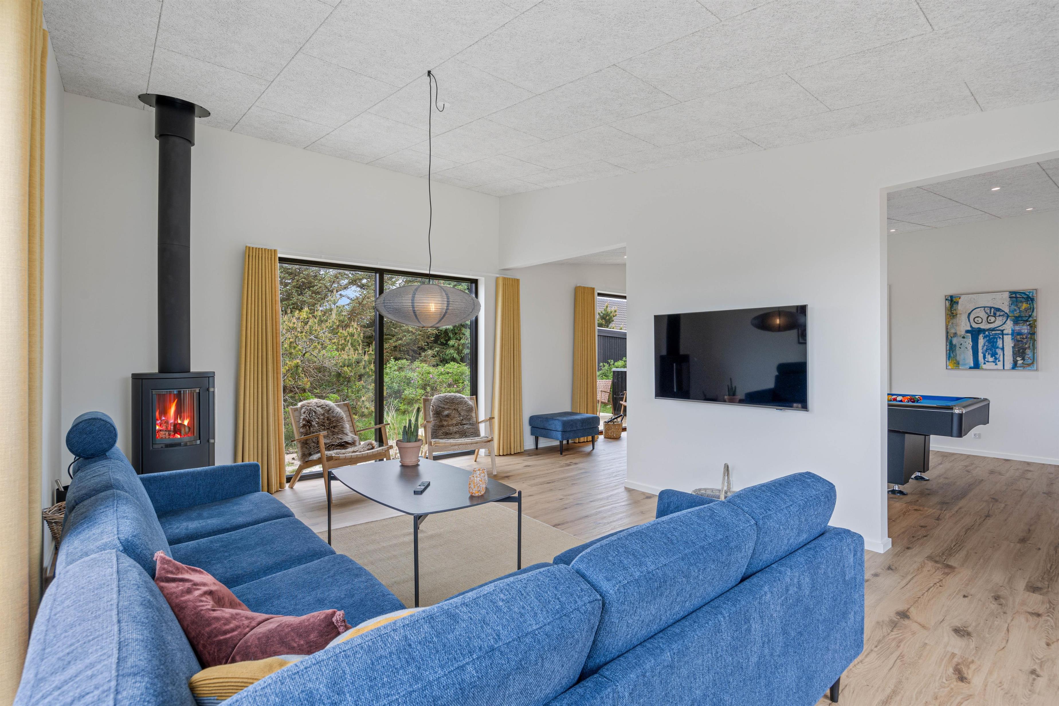 Efter en dejlig dag ved havet, kan I samles i stuen, hvor brændeovnen indbyder til hyggelige aftener.