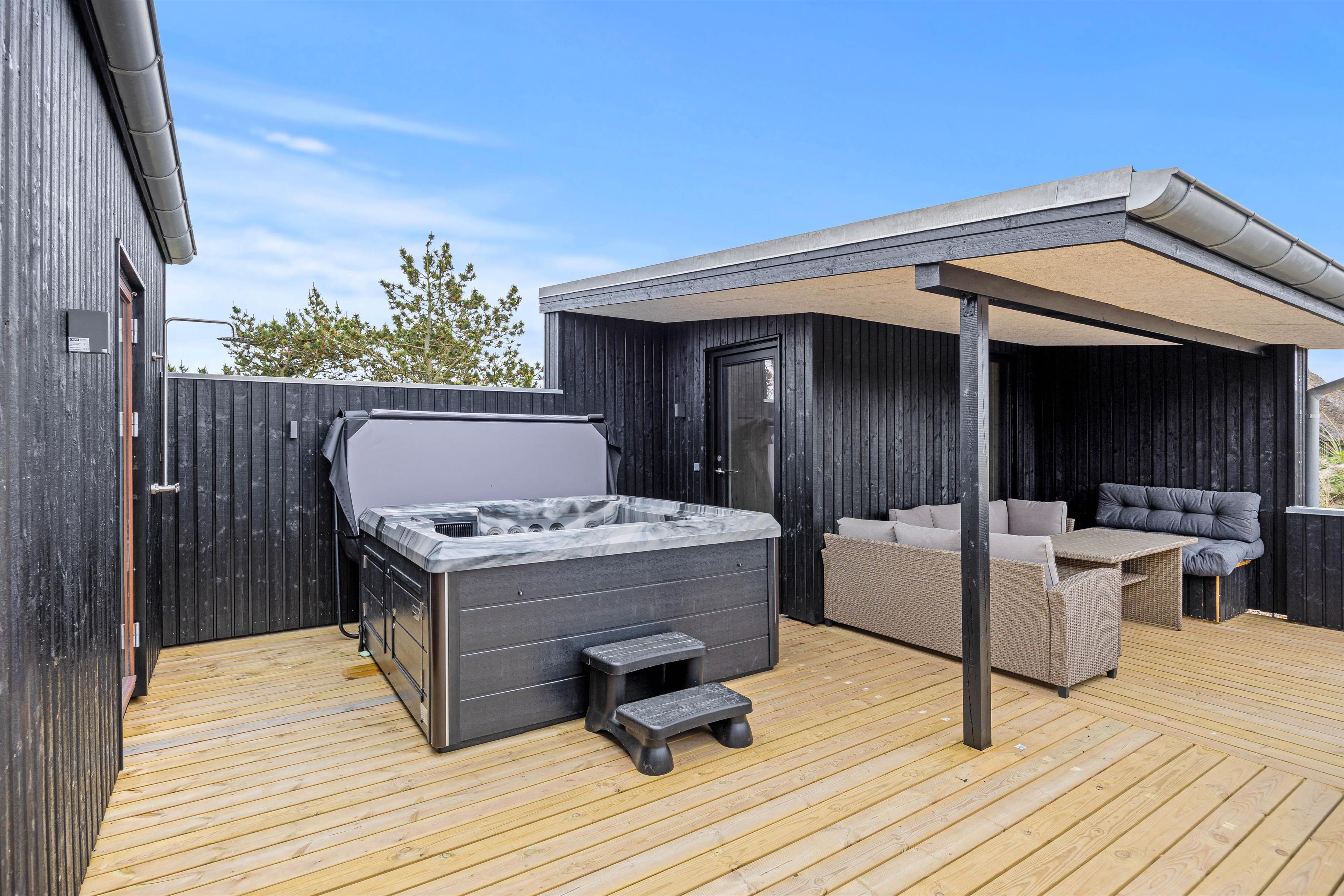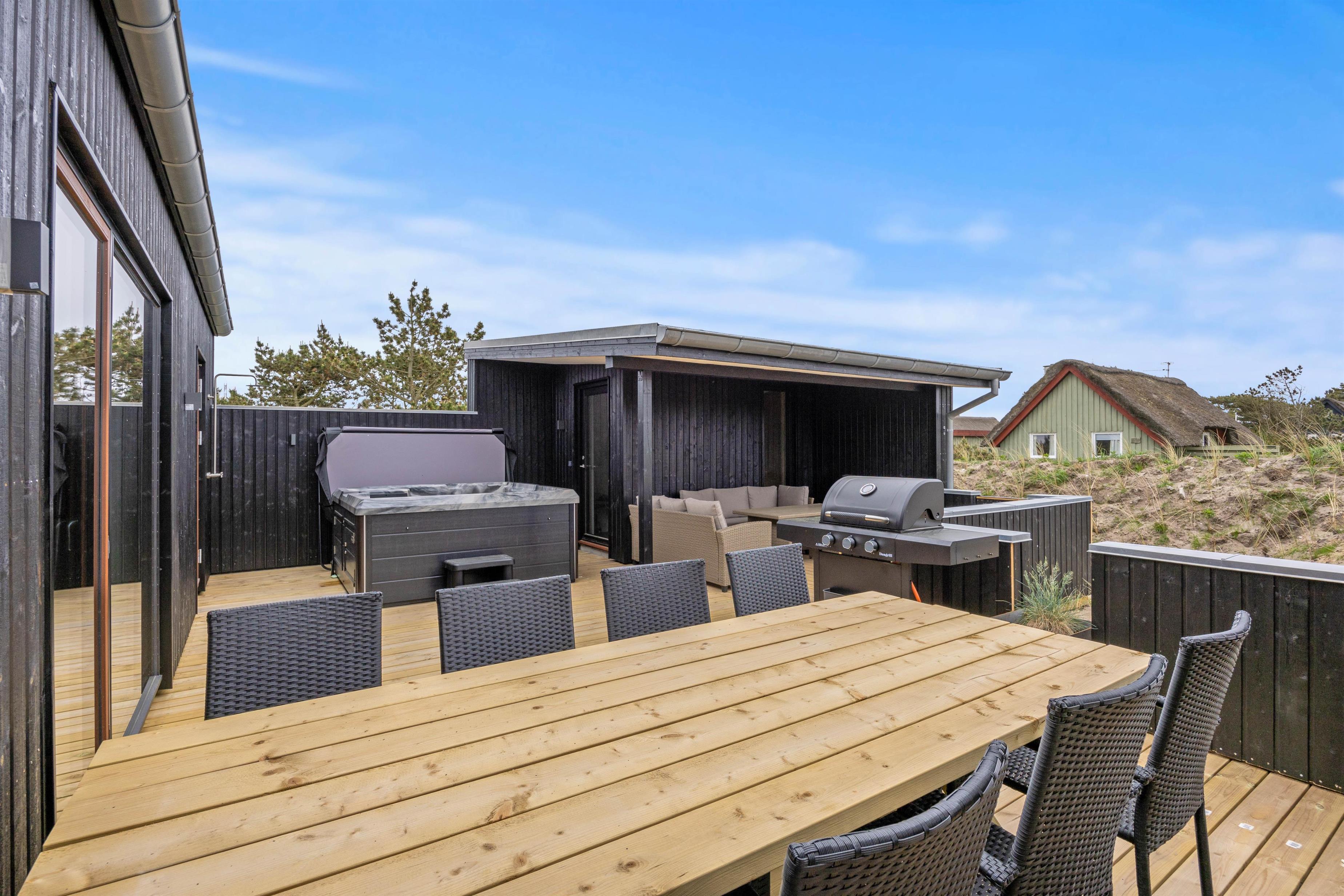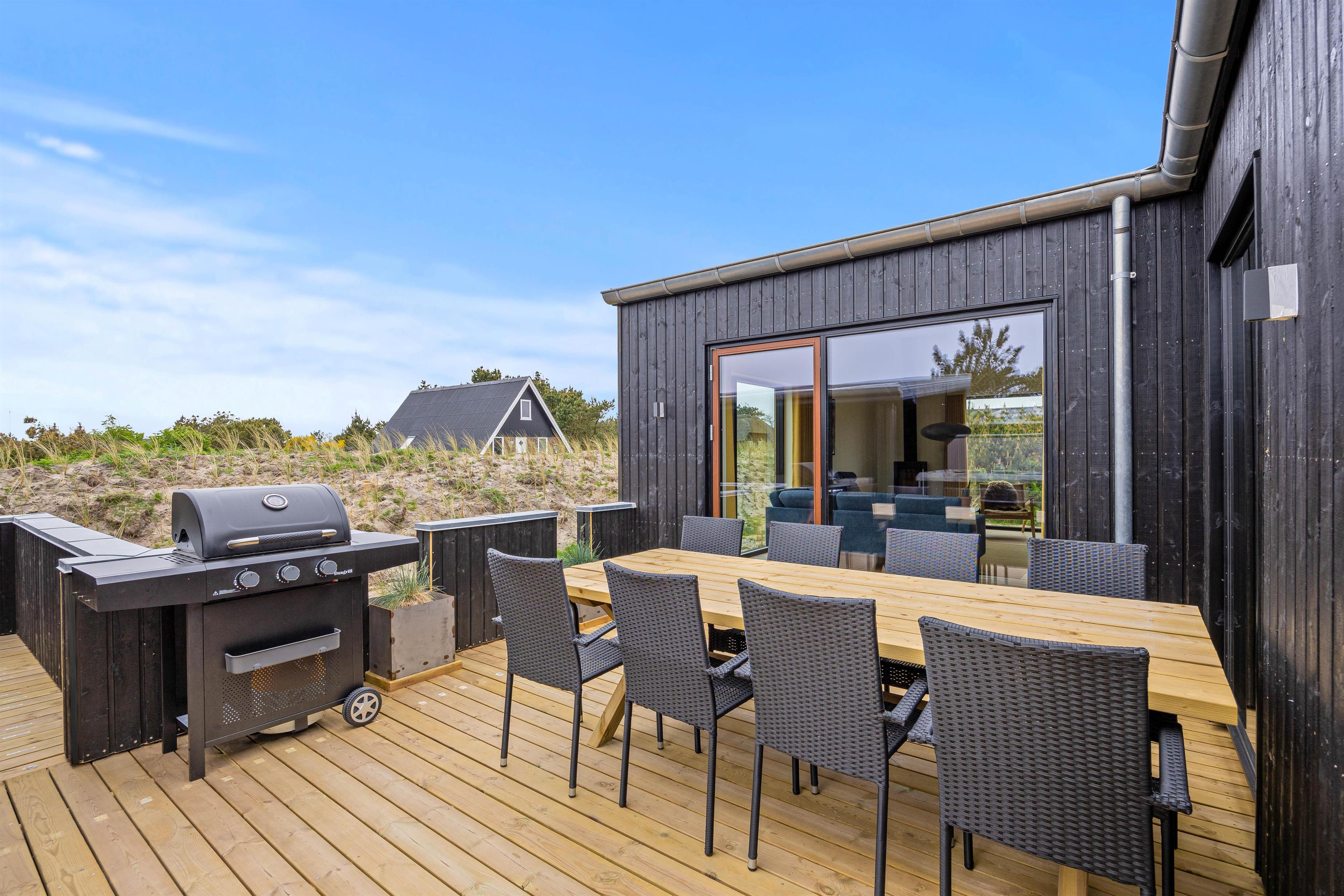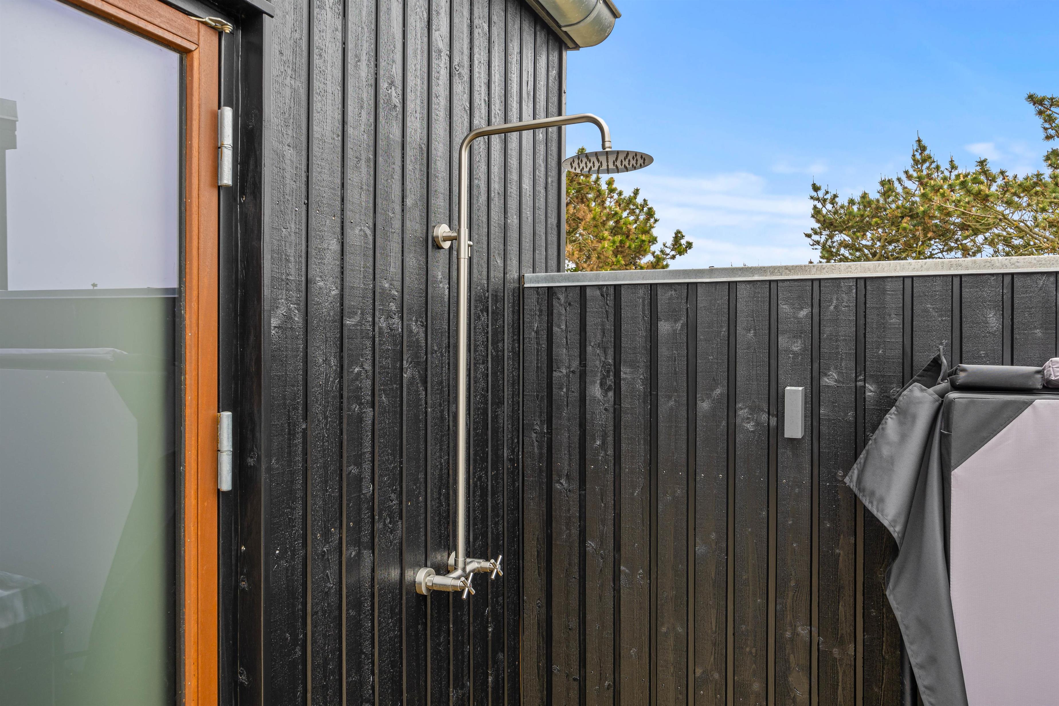 Når solen skinner, kan I nyde den skønne terrasse med havemøbler og grill – perfekt til lange grillaftener. Efter en dejlig dag kan I sætte jer ned i udespaen og nyde den skønne vesterhavsluft eller sætte jer ind i saunaen og få varmen igen efter en kold gåtur til havet. Hvis I trænger til et forfriskende skyl, kan I tage et skyl i udebruseren, som er tilgængelig fra april til november.