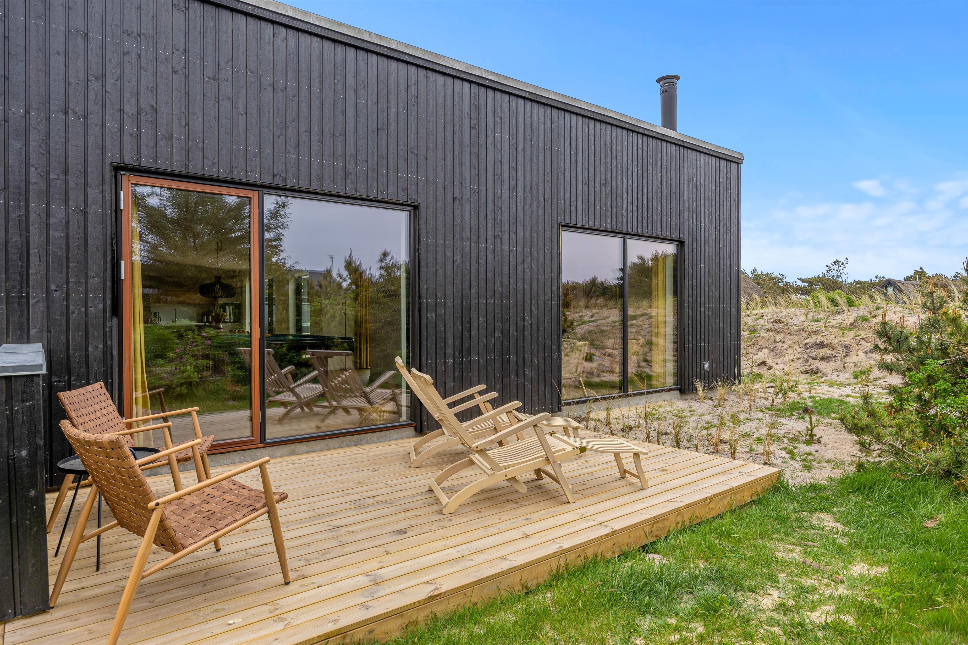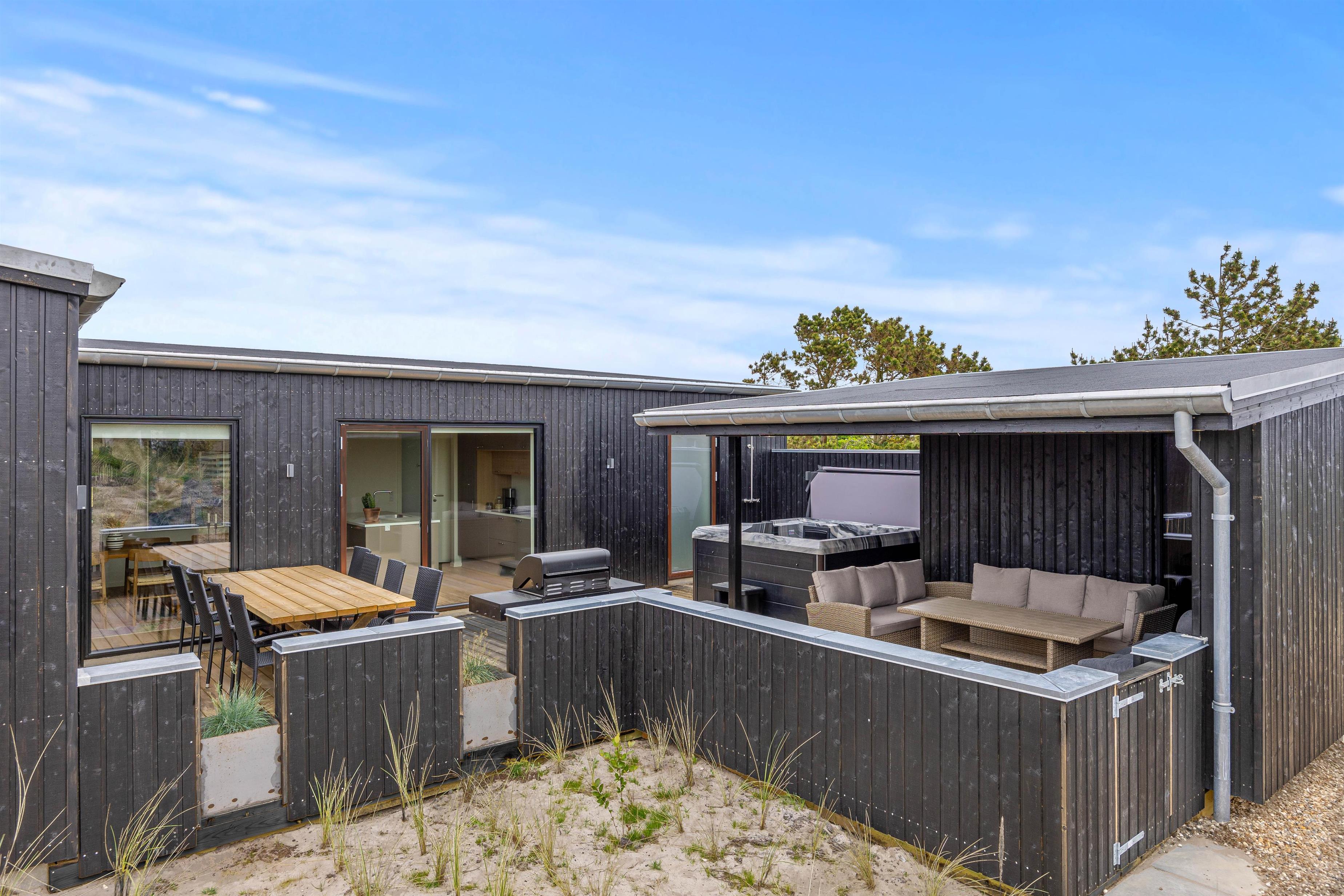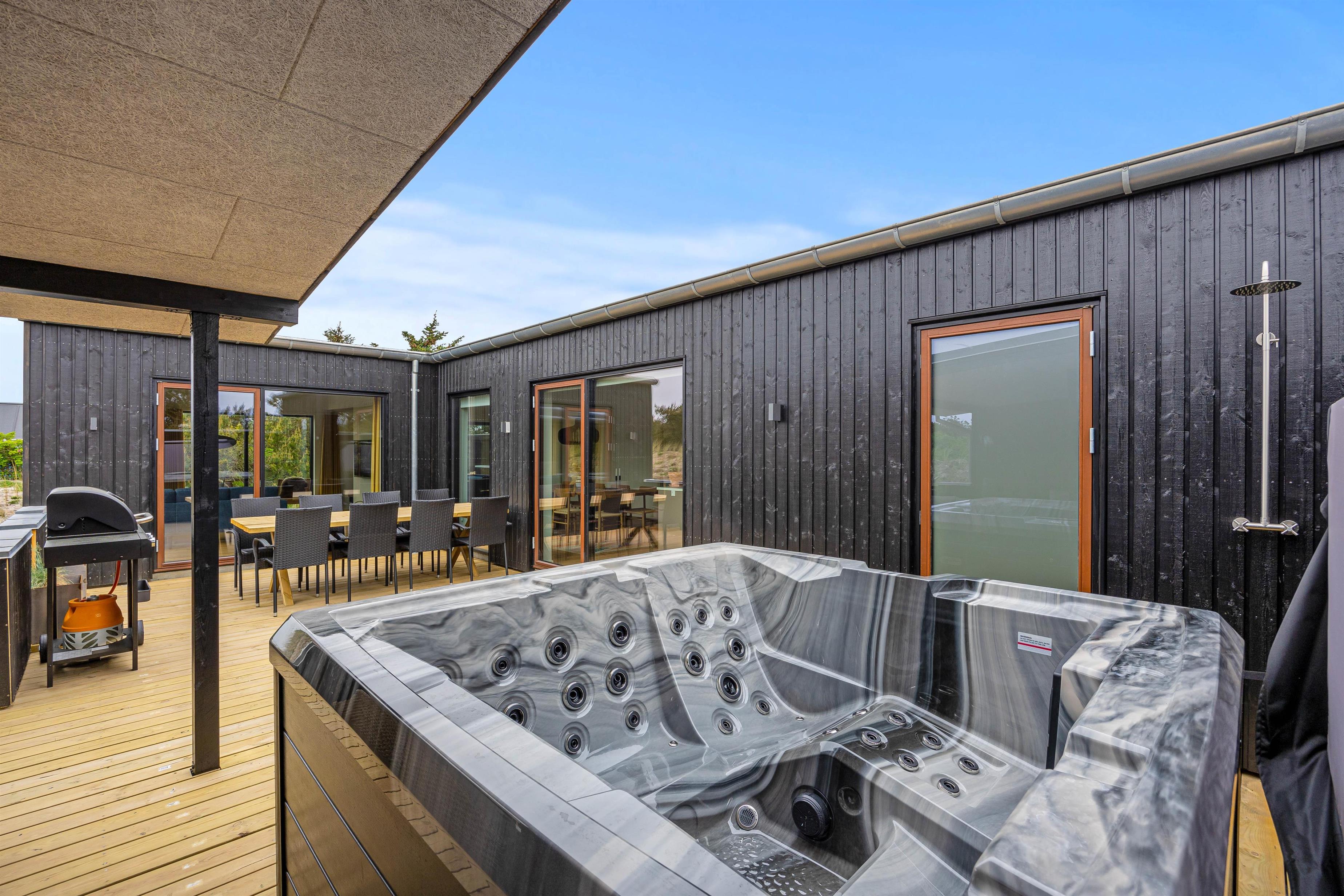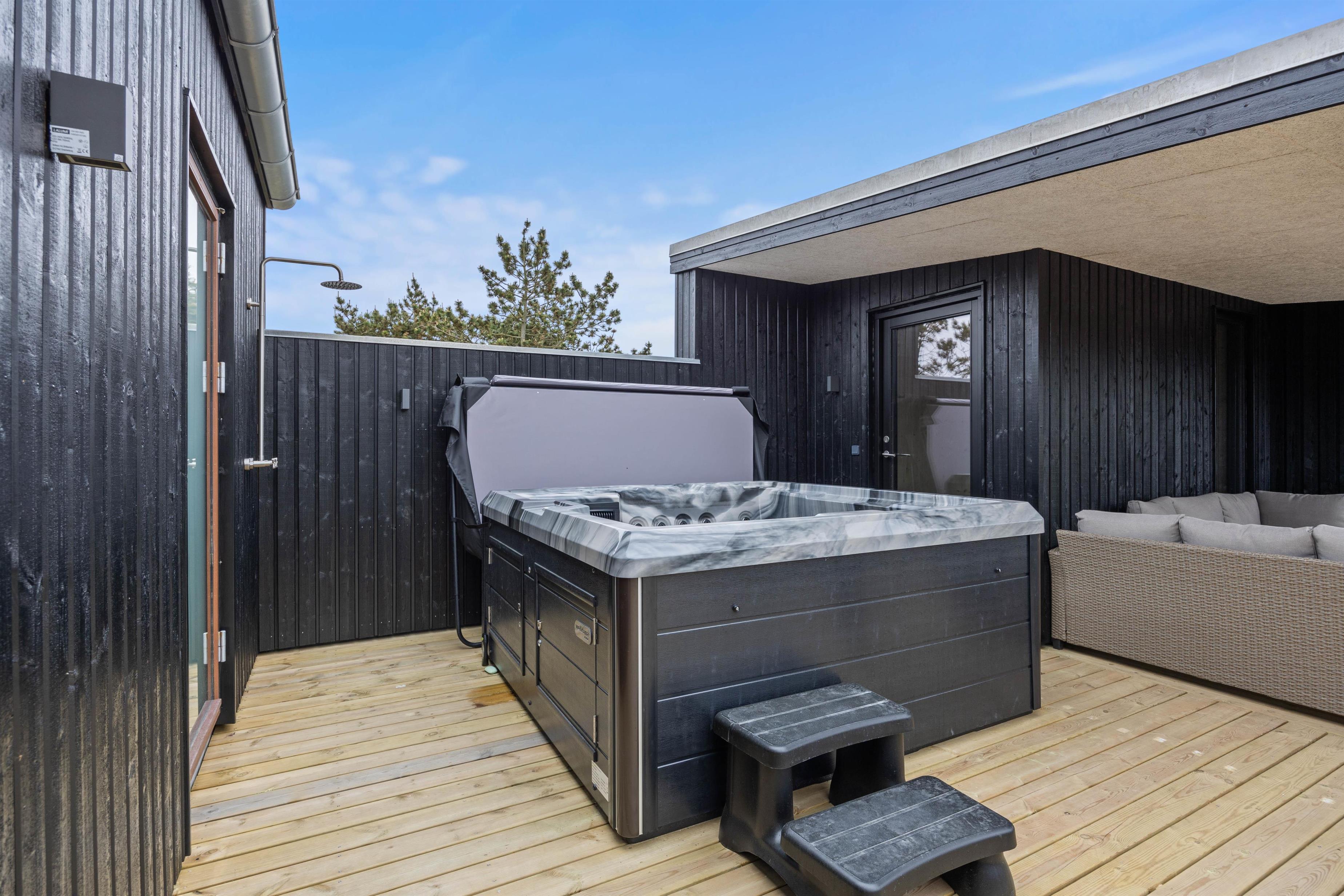 Når solen skinner, kan I nyde den skønne terrasse med havemøbler og grill – perfekt til lange grillaftener. Efter en dejlig dag kan I sætte jer ned i udespaen og nyde den skønne vesterhavsluft eller sætte jer ind i saunaen og få varmen igen efter en kold gåtur til havet. Hvis I trænger til et forfriskende skyl, kan I tage et skyl i udebruseren, som er tilgængelig fra april til november.