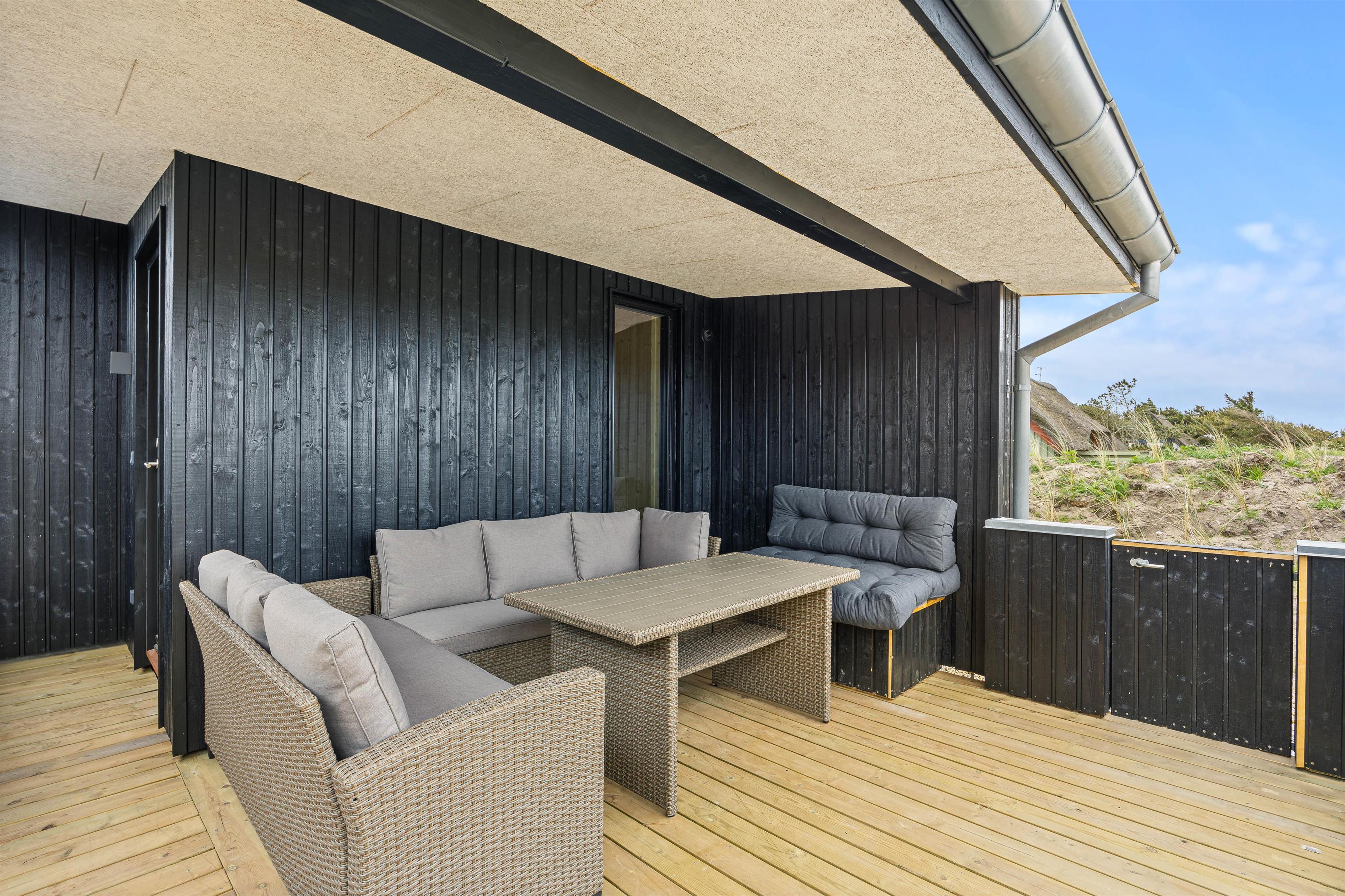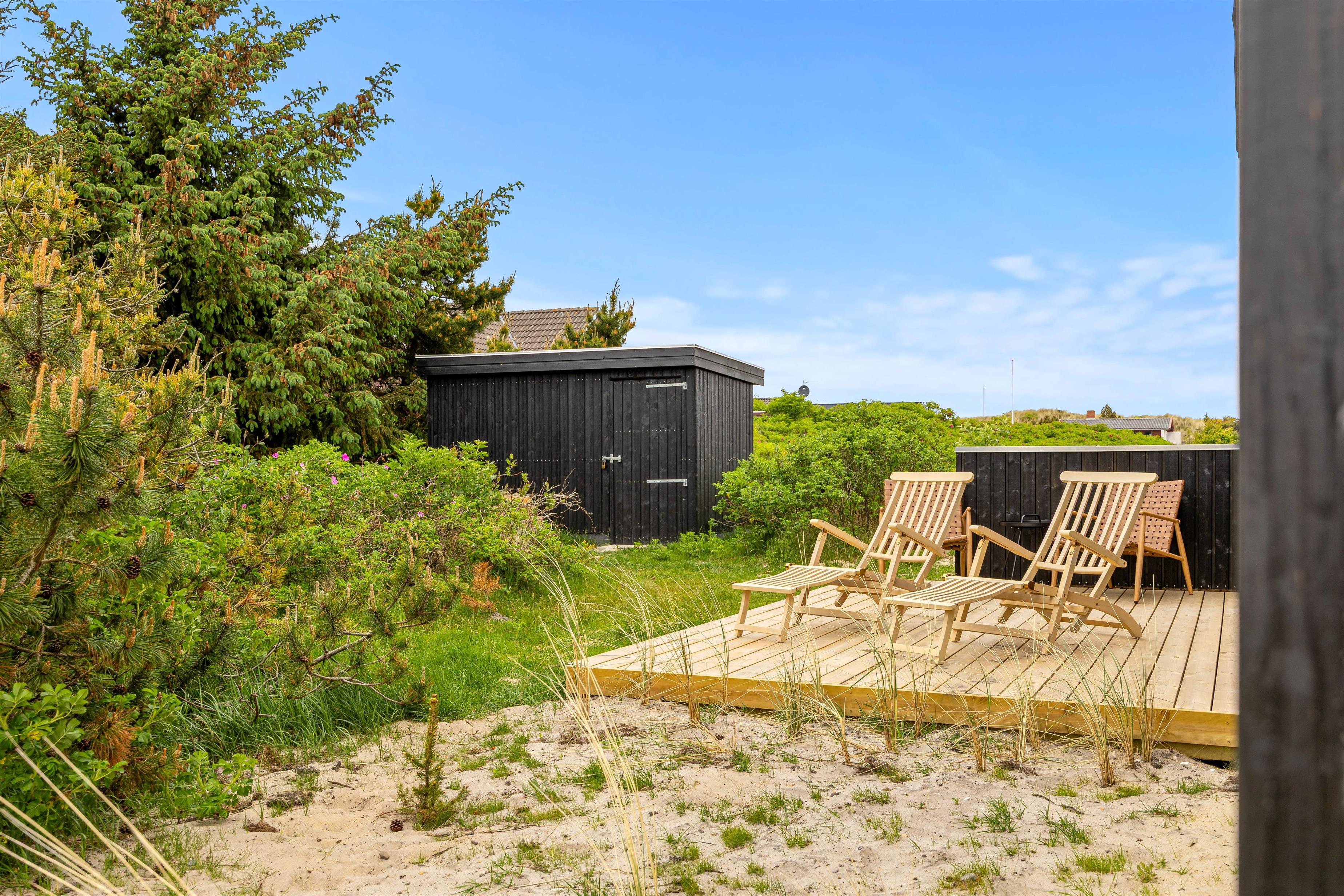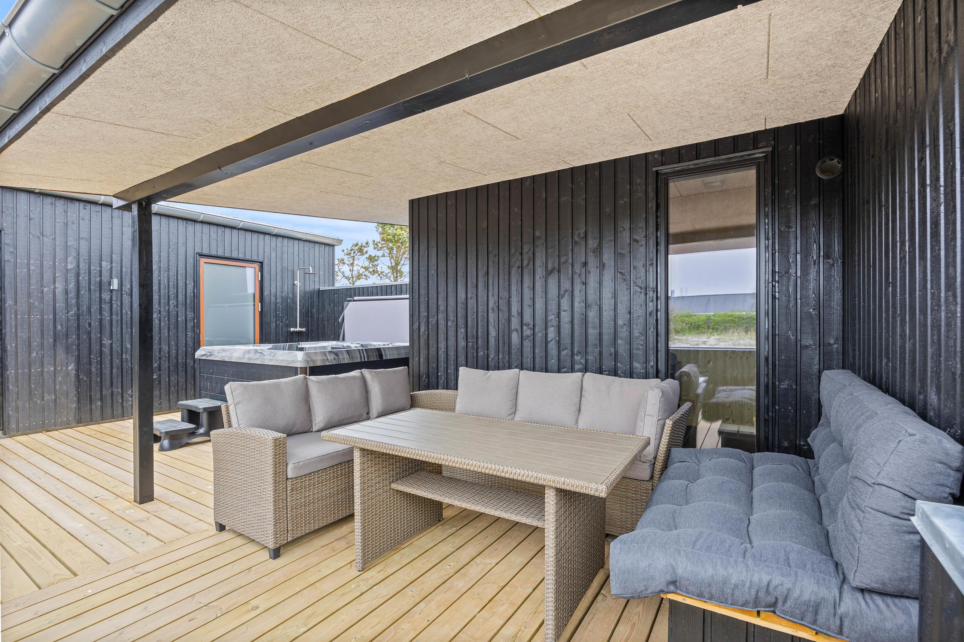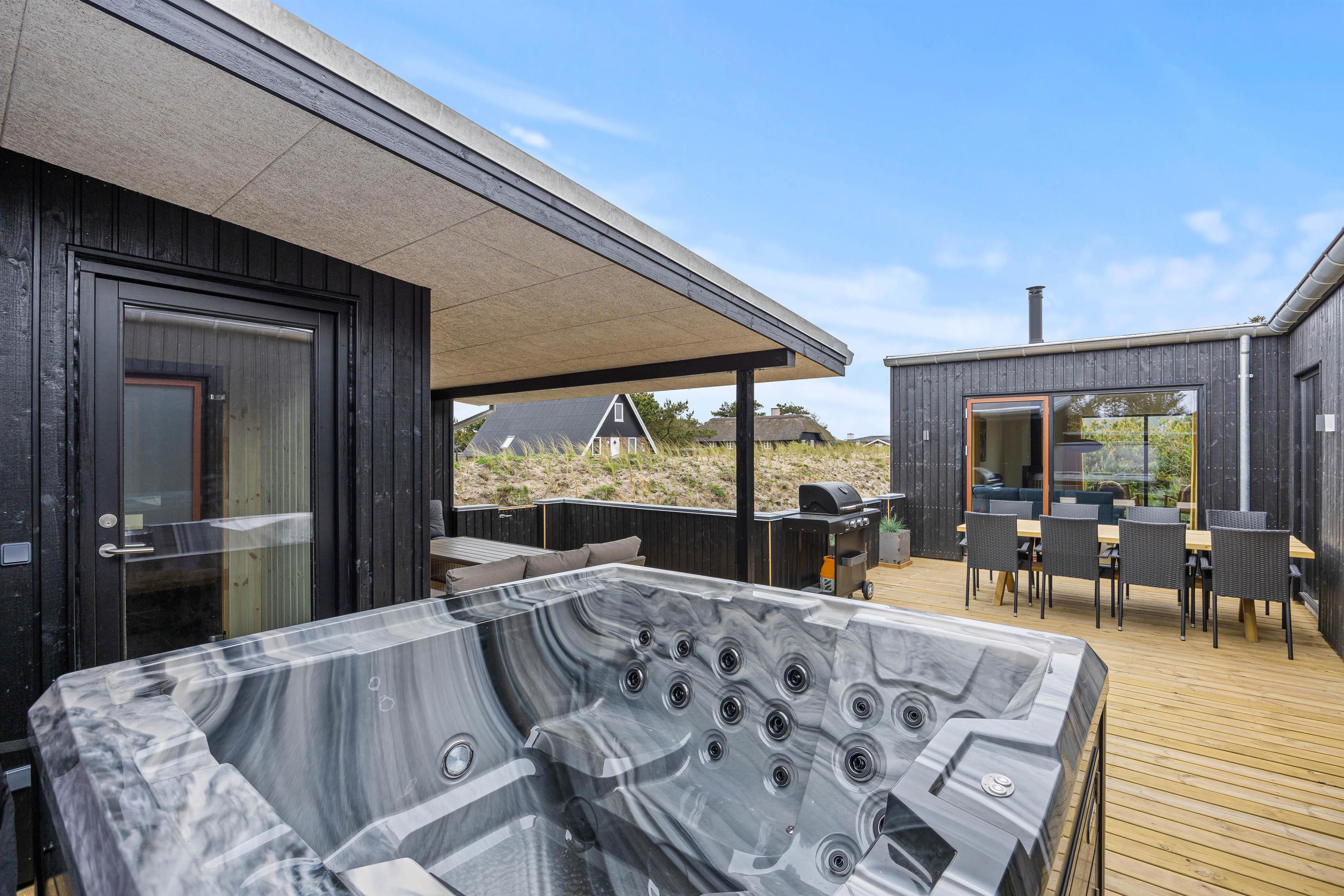 Når solen skinner, kan I nyde den skønne terrasse med havemøbler og grill – perfekt til lange grillaftener. Efter en dejlig dag kan I sætte jer ned i udespaen og nyde den skønne vesterhavsluft eller sætte jer ind i saunaen og få varmen igen efter en kold gåtur til havet. Hvis I trænger til et forfriskende skyl, kan I tage et skyl i udebruseren, som er tilgængelig fra april til november.