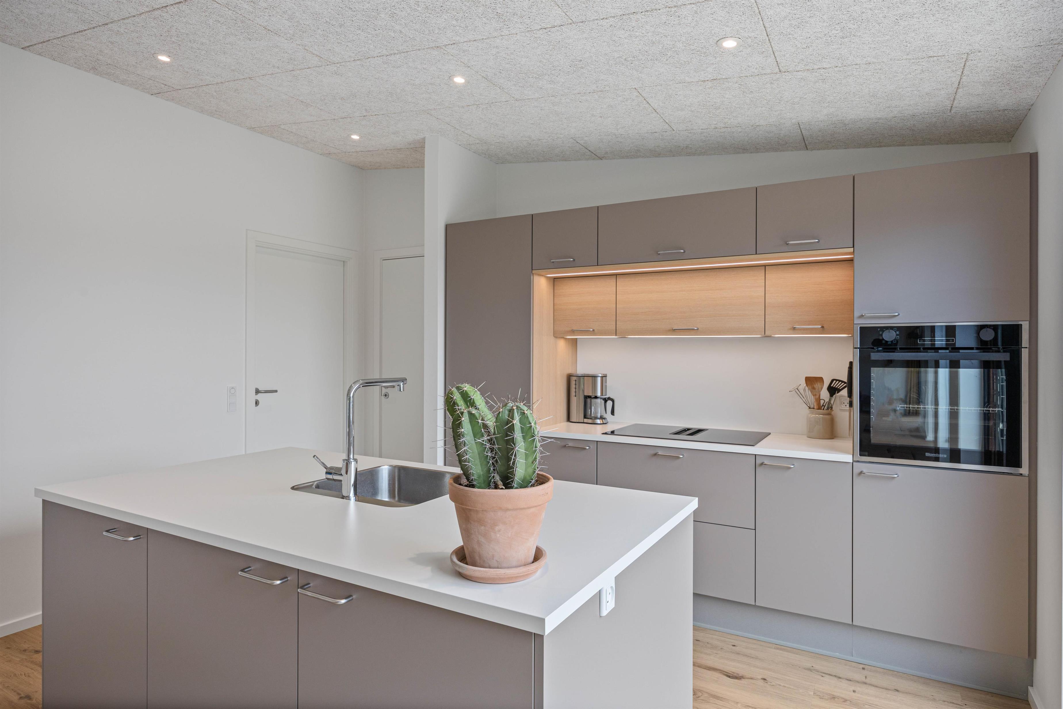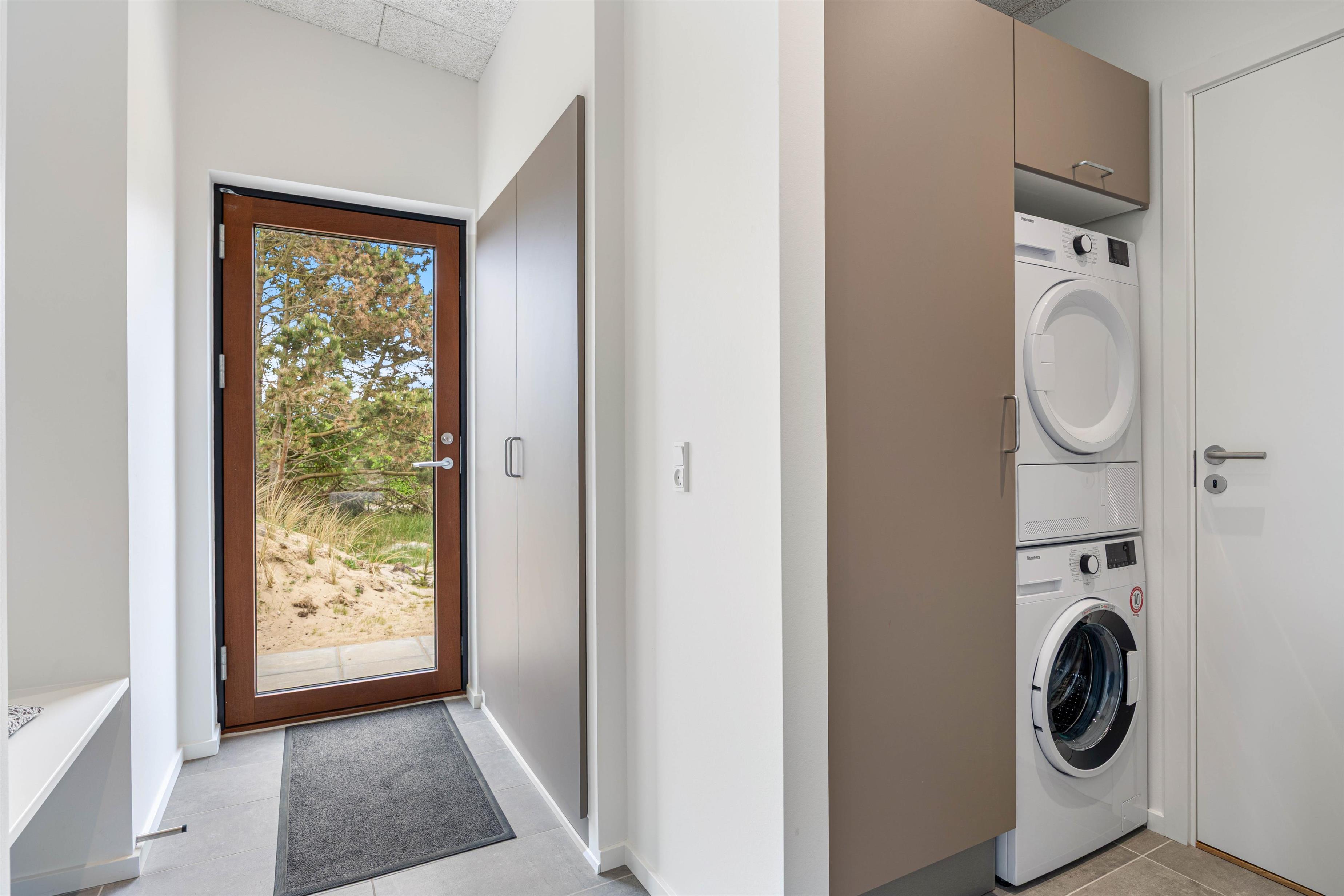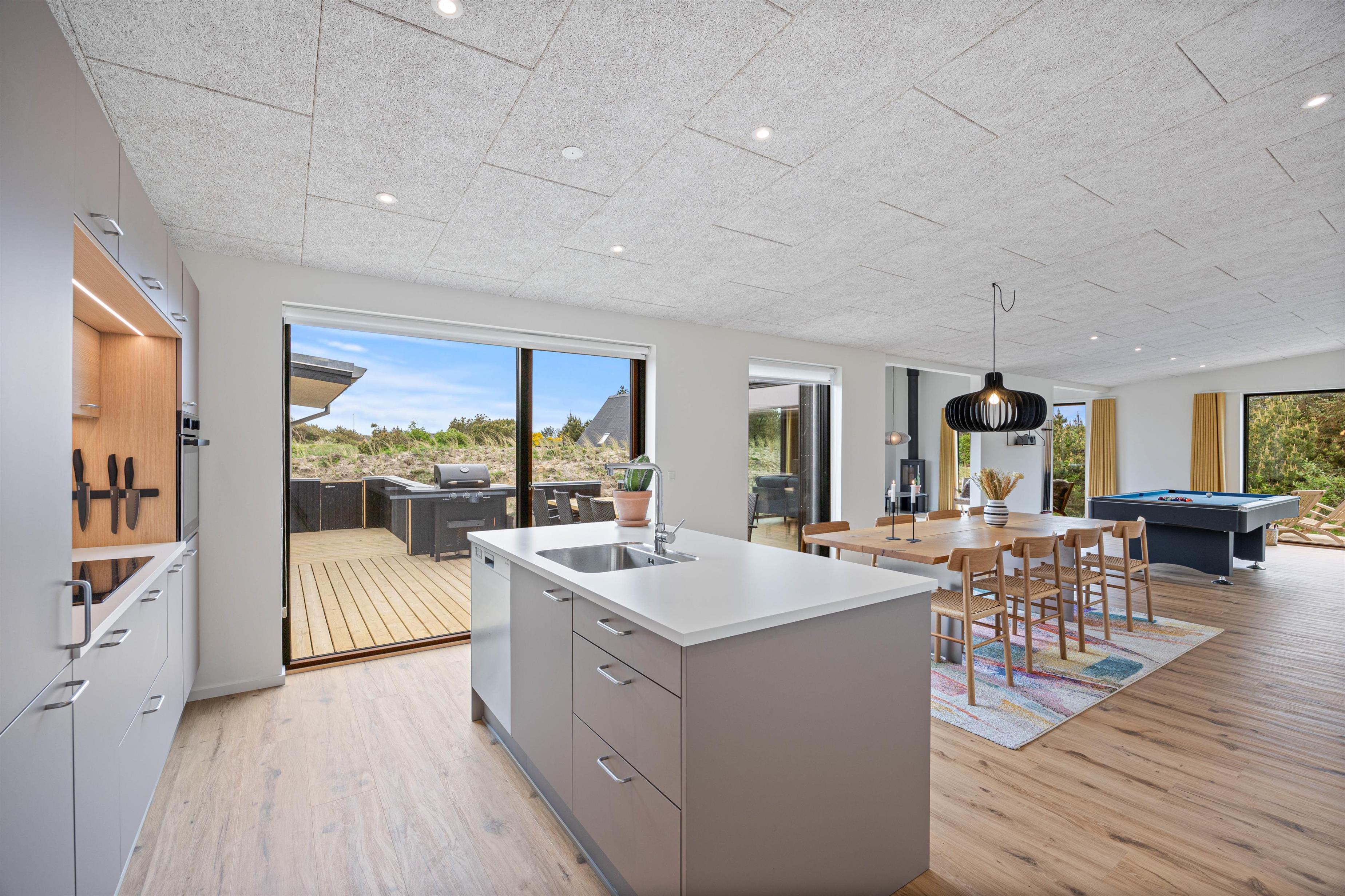 Det åbne køkken-alrum er sommerhusets samlingspunkt, hvor I alle kan være med til at lave aftensmaden. Bagefter klarer opvaskemaskinen opvasken, så I ikke skal bruge tid på de praktiske gøremål. Udover opvaskemaskinen finder I også en vaskemaskine og tørretumbler i sommerhuset.