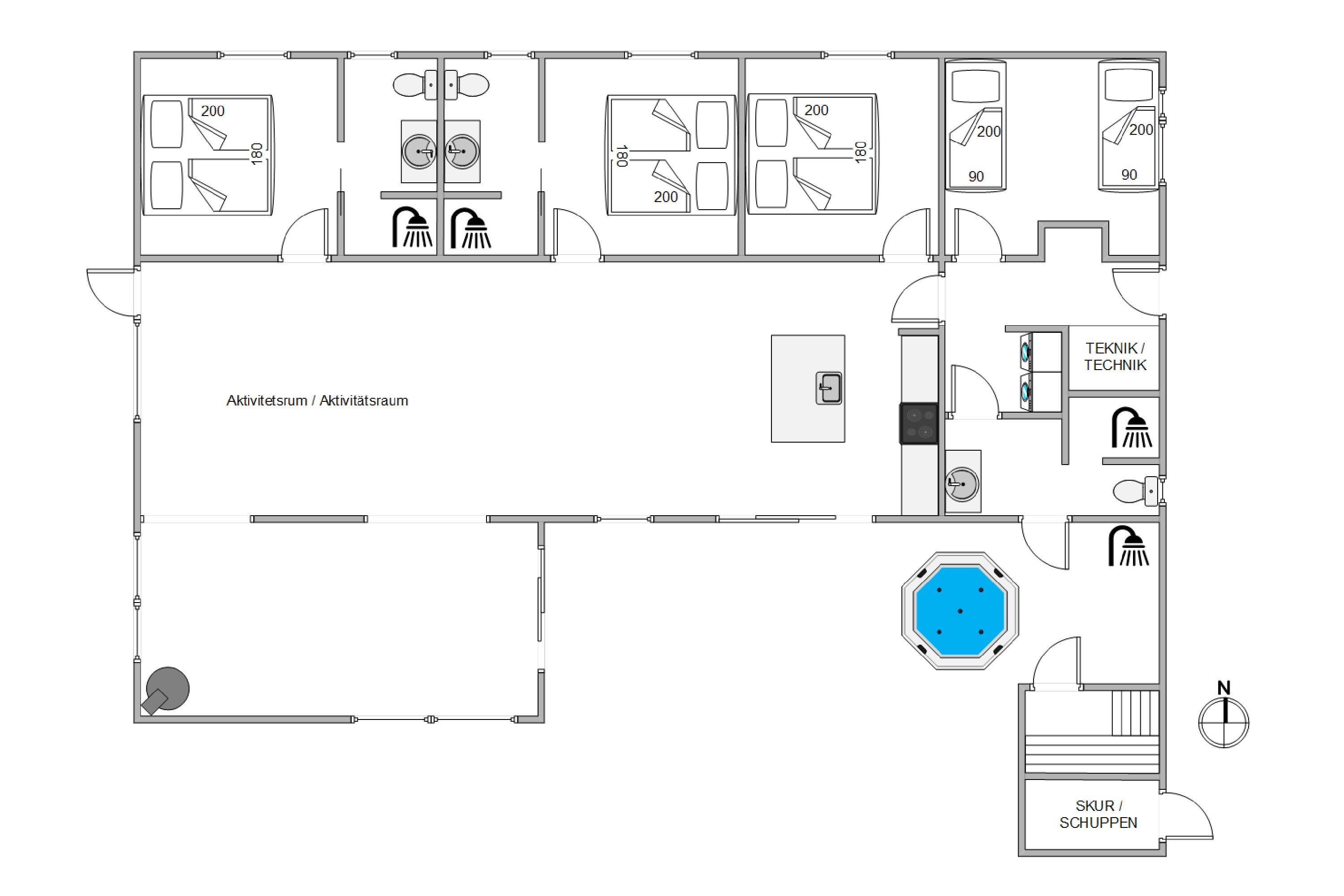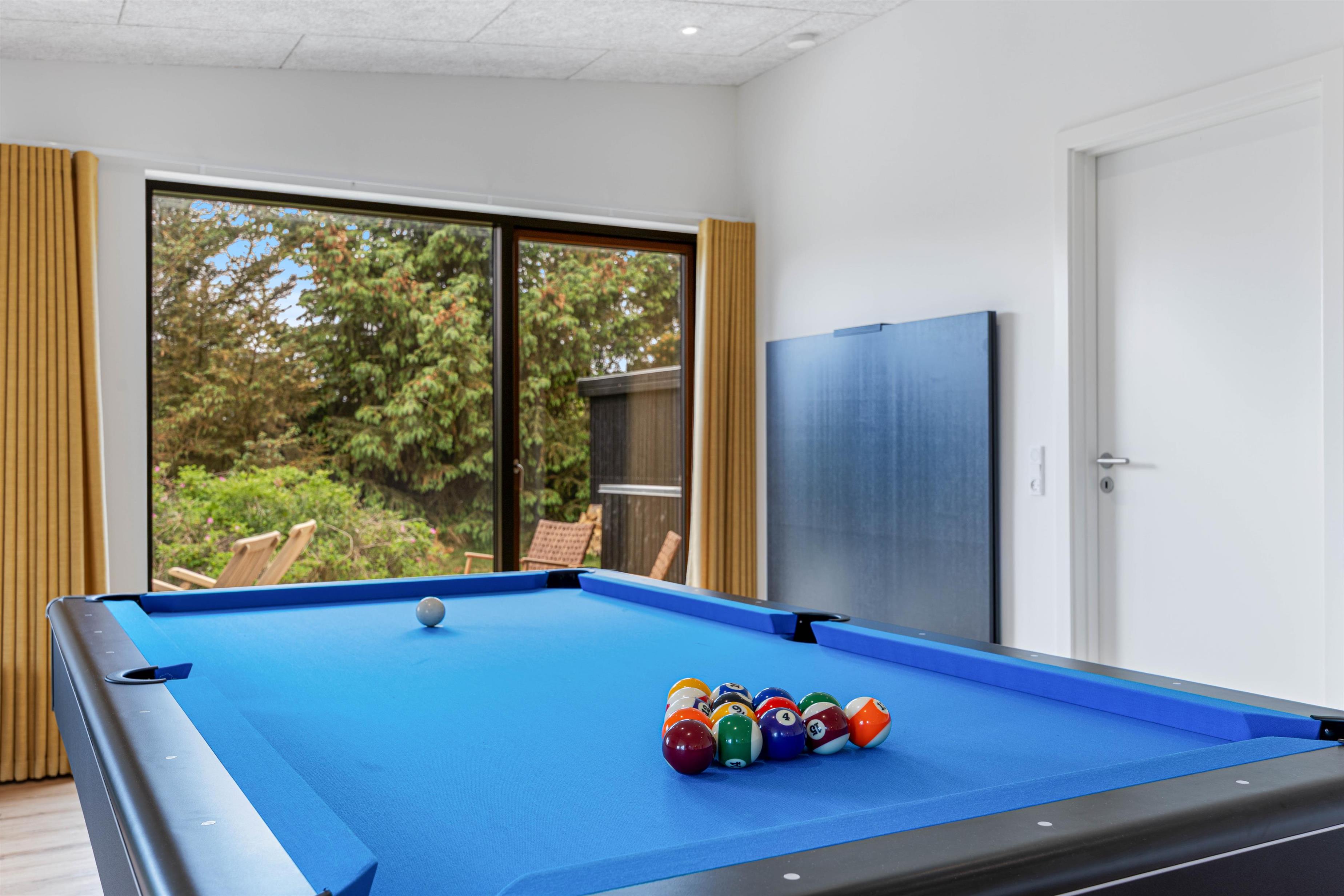 I sommerhuset findes også et aktivitetsrum, hvor både billard og bordtennisbord sørger for timevis af underholdning. Her er det let at koble af og samtidig have det sjovt.