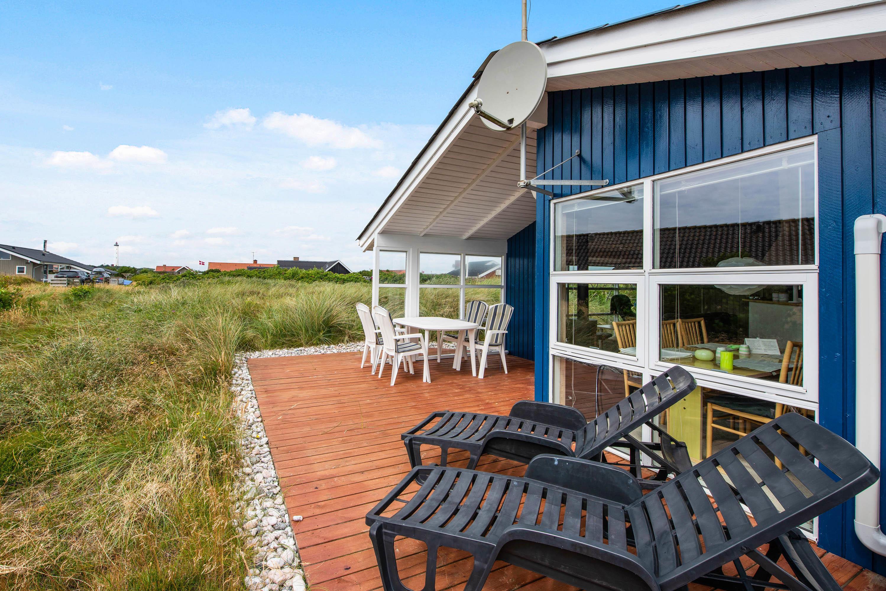 Dejligt feriehus med et smukt kig over et fredet naturområde og til det gamle flotte fyrtårn i Nr. Lyngvig. Sommerhuset er lyst og venligt indrettet, og det har en god, delvist overdækket terrasse, hvor der er plads til både børn og hunde.