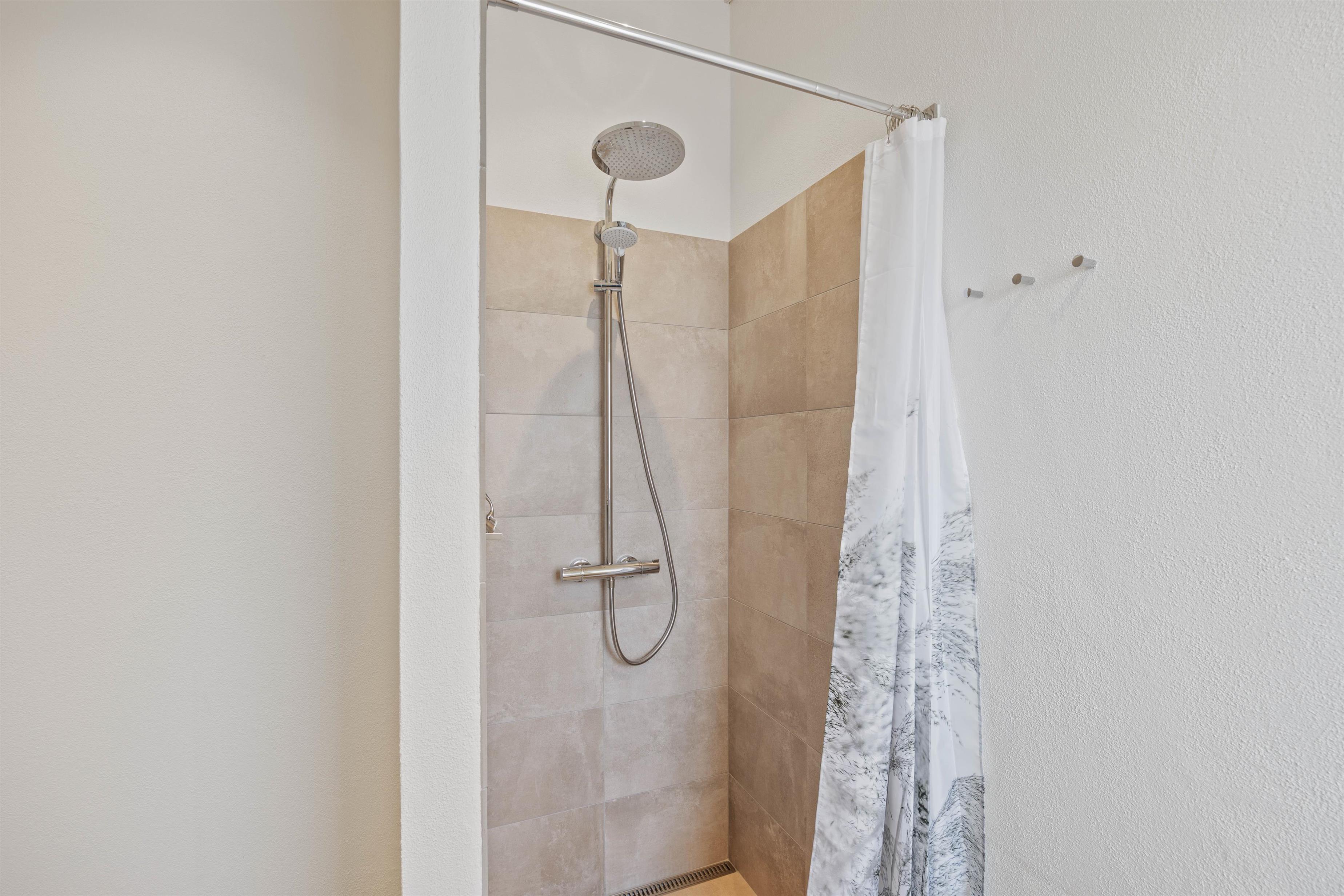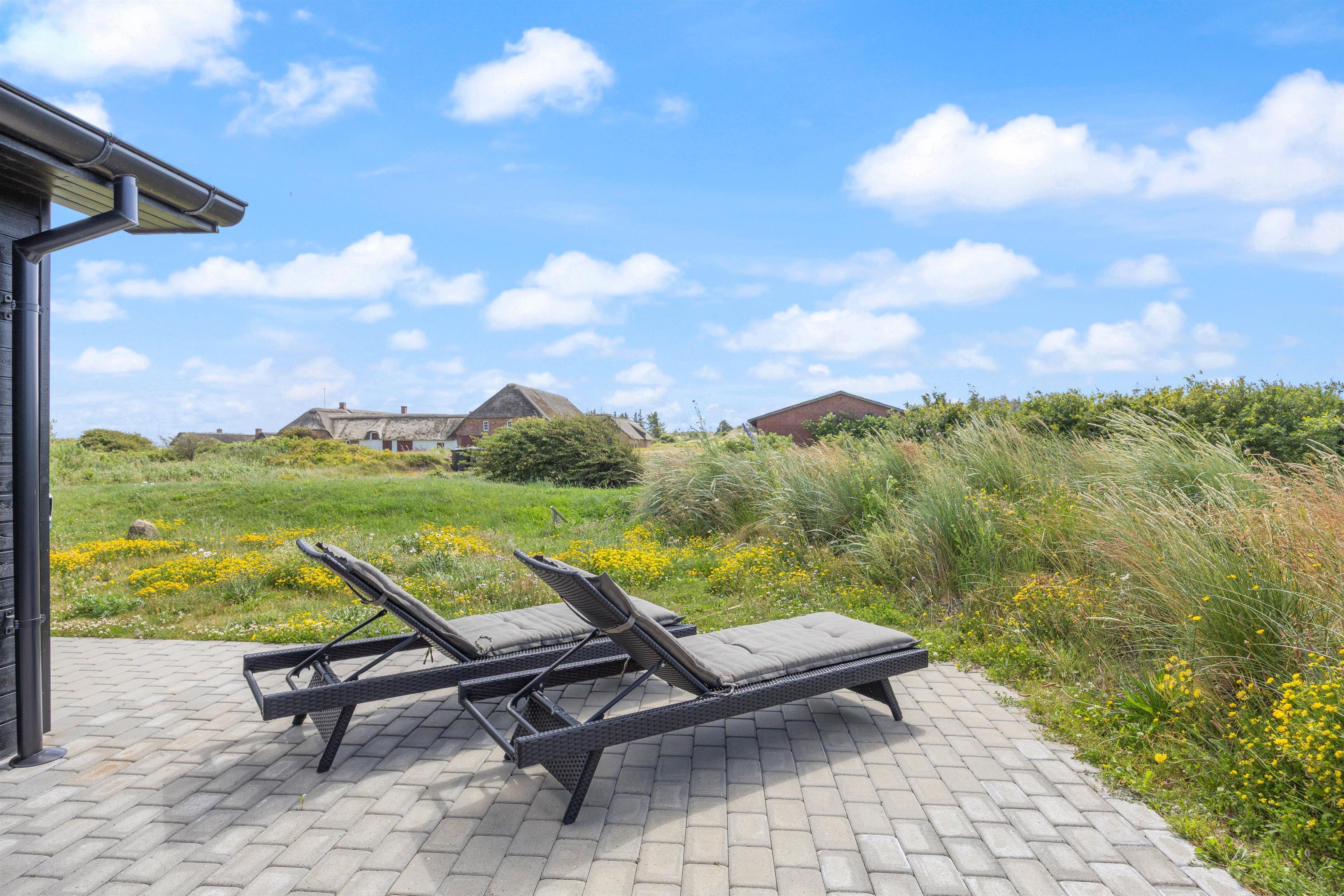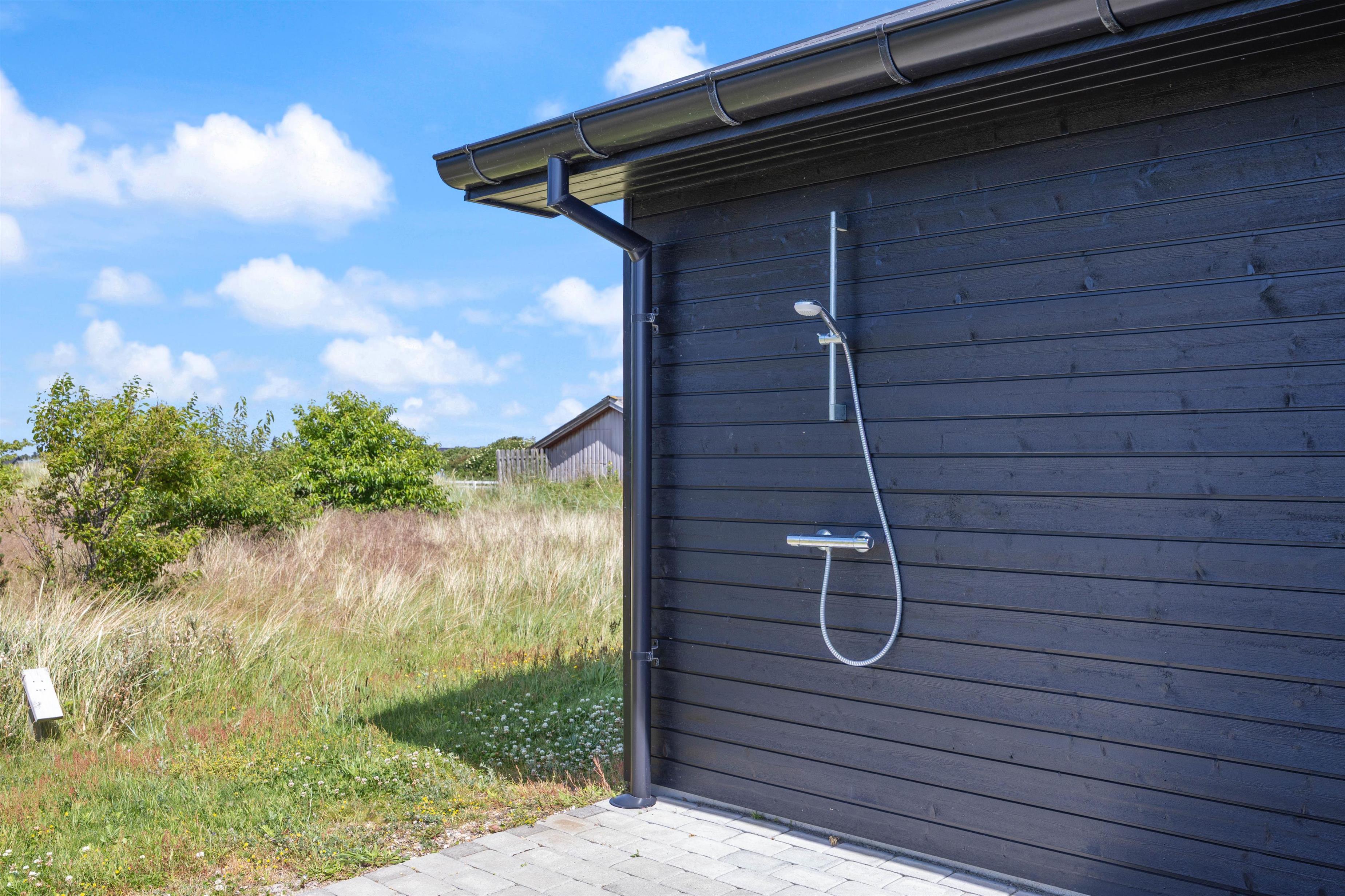 Fra sommerhuset er der blot 1 kilometer til Vesterhavet gennem gåstierne i klitterne. Efter et friskt dyp i de brusende bølger kan I skylle jer af for eventuelt salt og vand i udebruseren, som er tilgænglig fra april til november og herefter få varmen ved at opvarme sommerhuset med den energibesparende luft til luft varmepumpe.