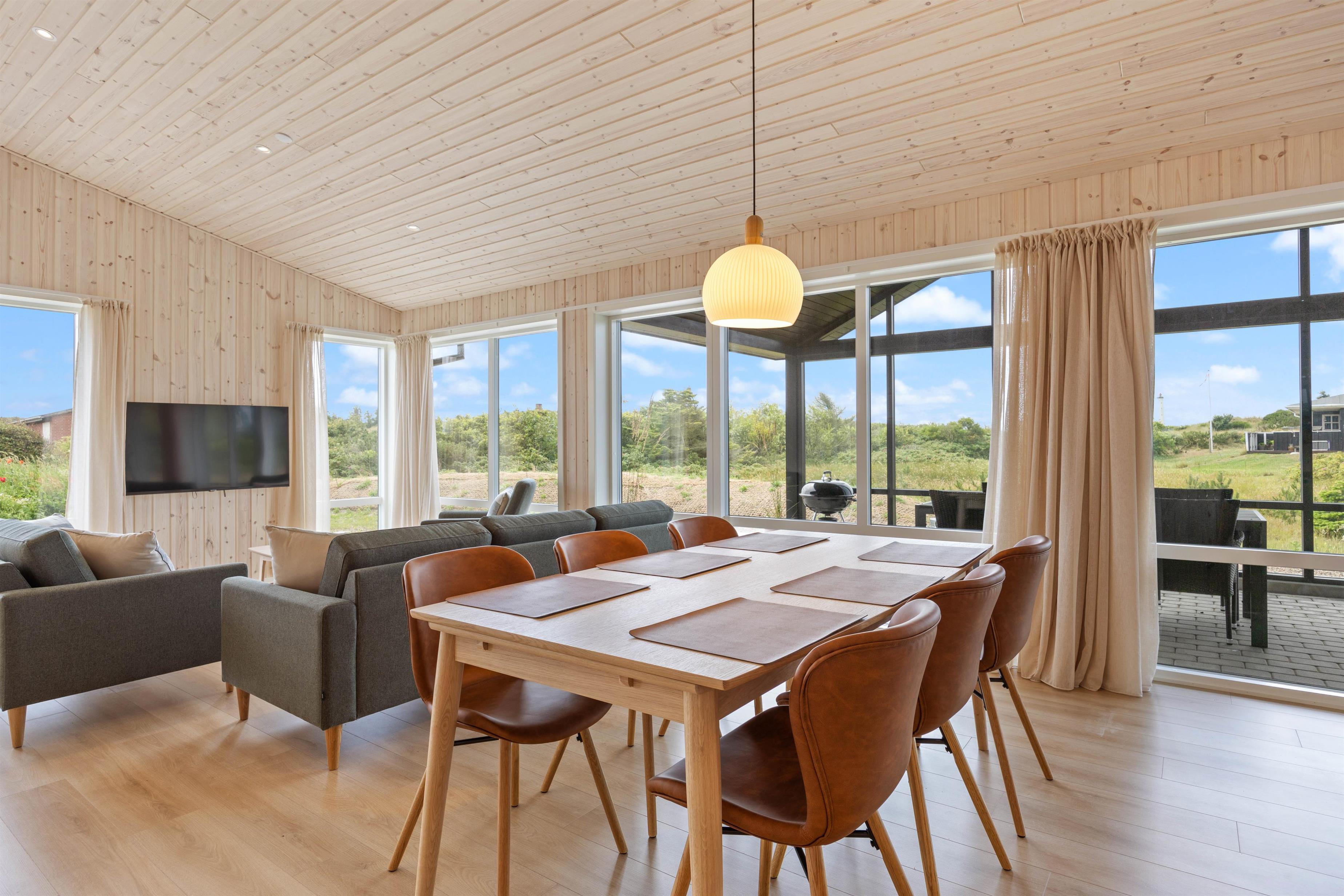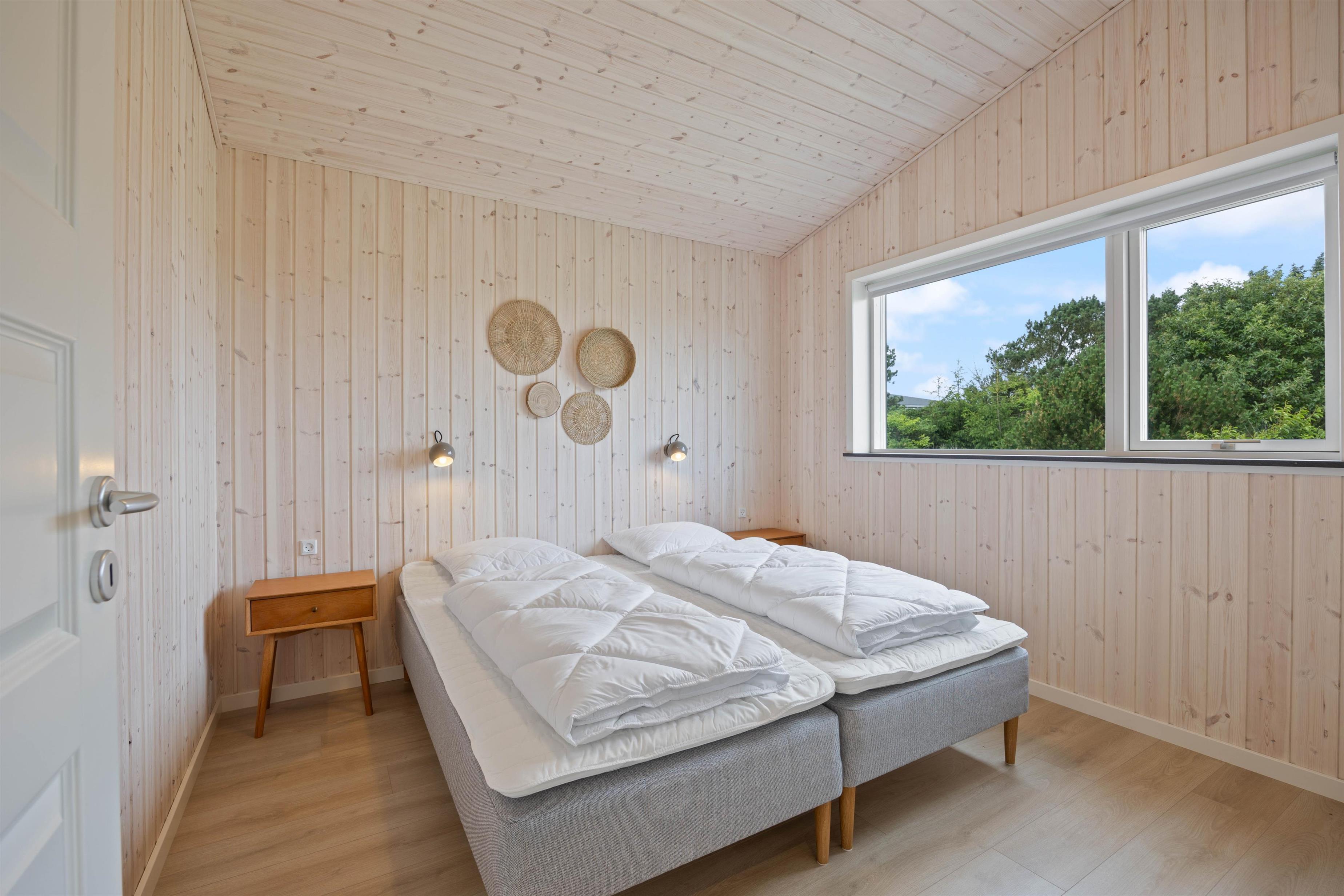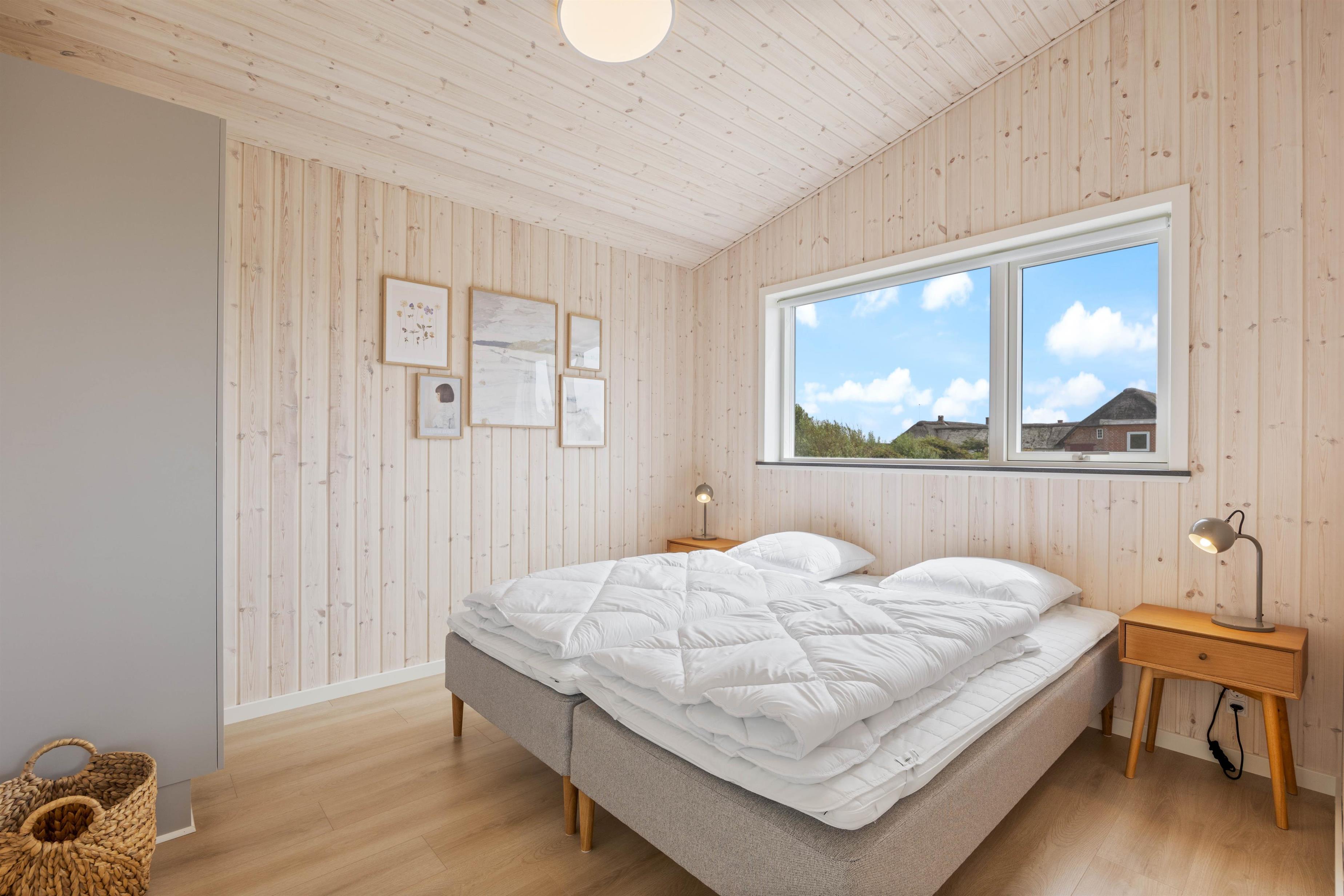 Hold ferie i dette skønne og moderne sommerhus på Holmsland Klitvej 117A i Nr. Lyngvig, som er færdigbygget i 2023. Sommerhuset kan rumme i alt 6 personer fordelt i 3 soverum og har samtidig 2 badeværelser. Sommerhuset har også en åben udestue, hvor I kan tilbringe mange timer i læ med en dejlig bog og en god kop kaffe. På de varme sommerdage kan I også køle ned under sommerhusets udebruser.
