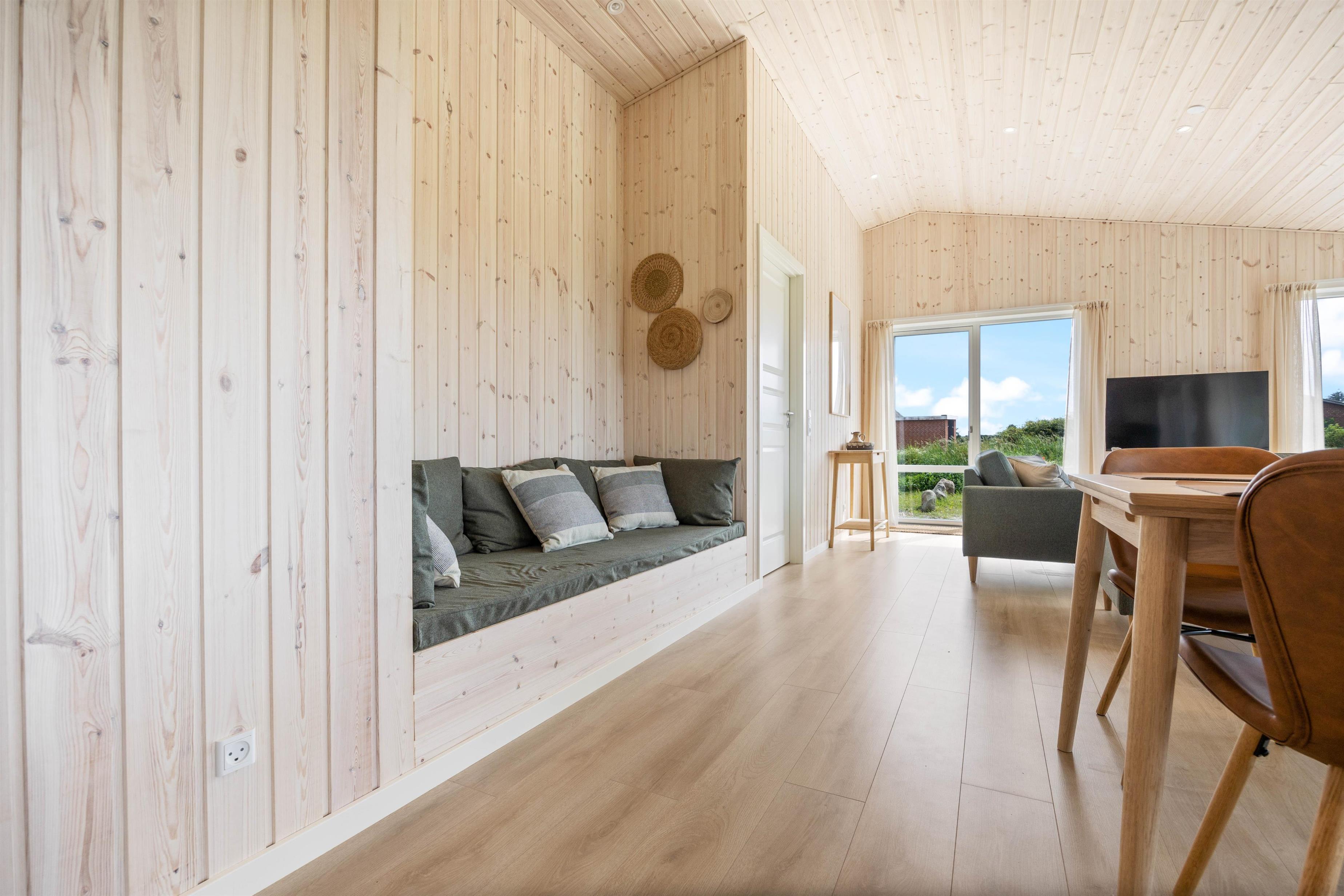 Det 108 kvadratmeter moderne sommerhus fremstår lyst og velindrettet med behagelige møbler. Sommerhuset har 3 gode soverum, som alle er indrettet med 2x90x200 senge. Derudover er der 2 badeværelser, som begge er med bruseniche og gulvvarme. På det ene badeværelse finder I også både vaskemaskine og tørretumbler, så I altid kan have rent og tørt tøj.